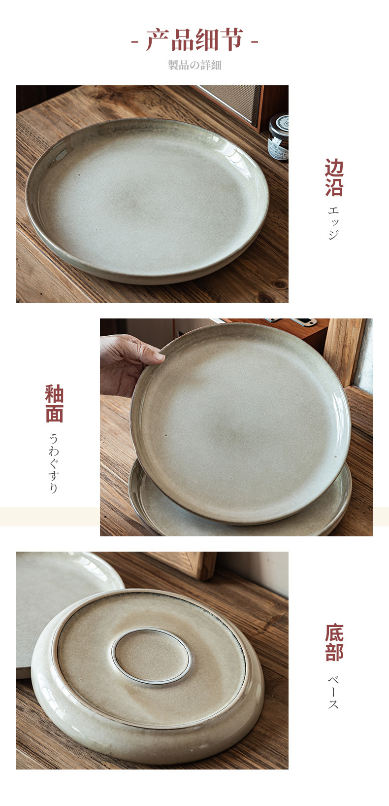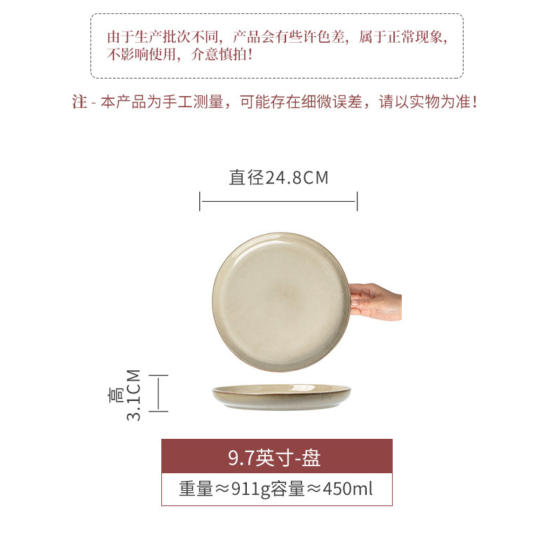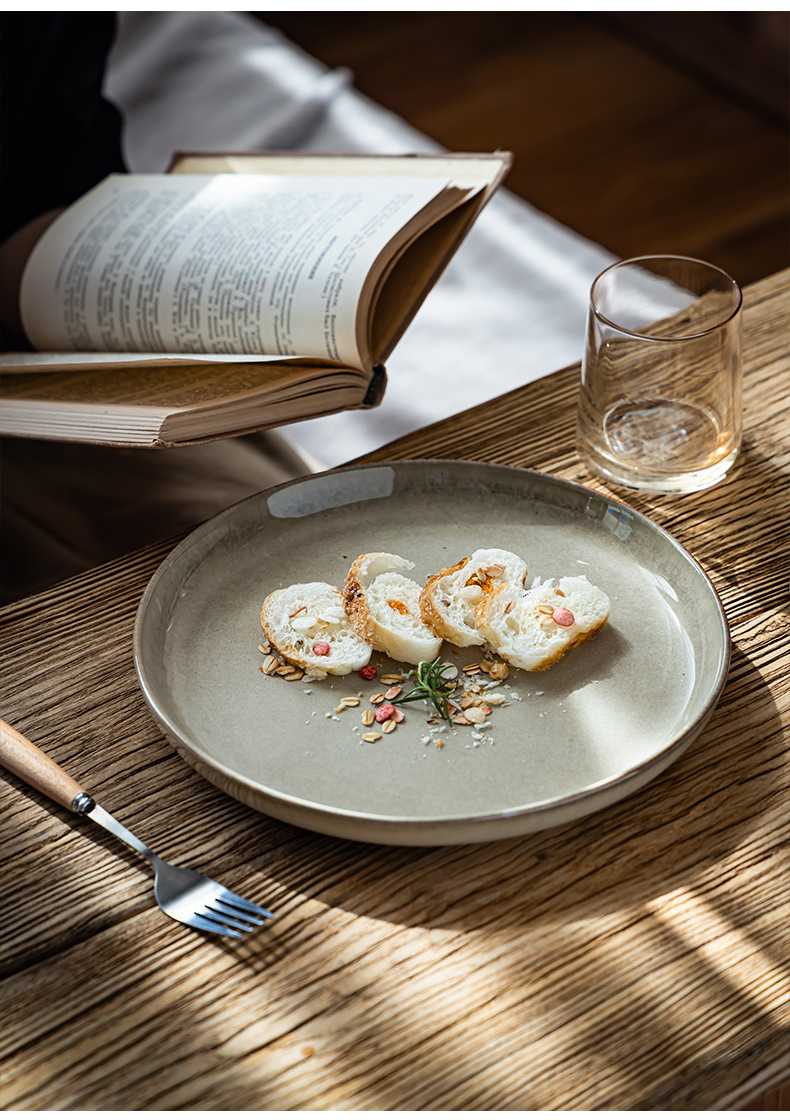 Plato de cerámica retrógrado de alta calidad restaurante carne pasta plato de platos caseros de color sólido plato de platos diarios simple plato de arena