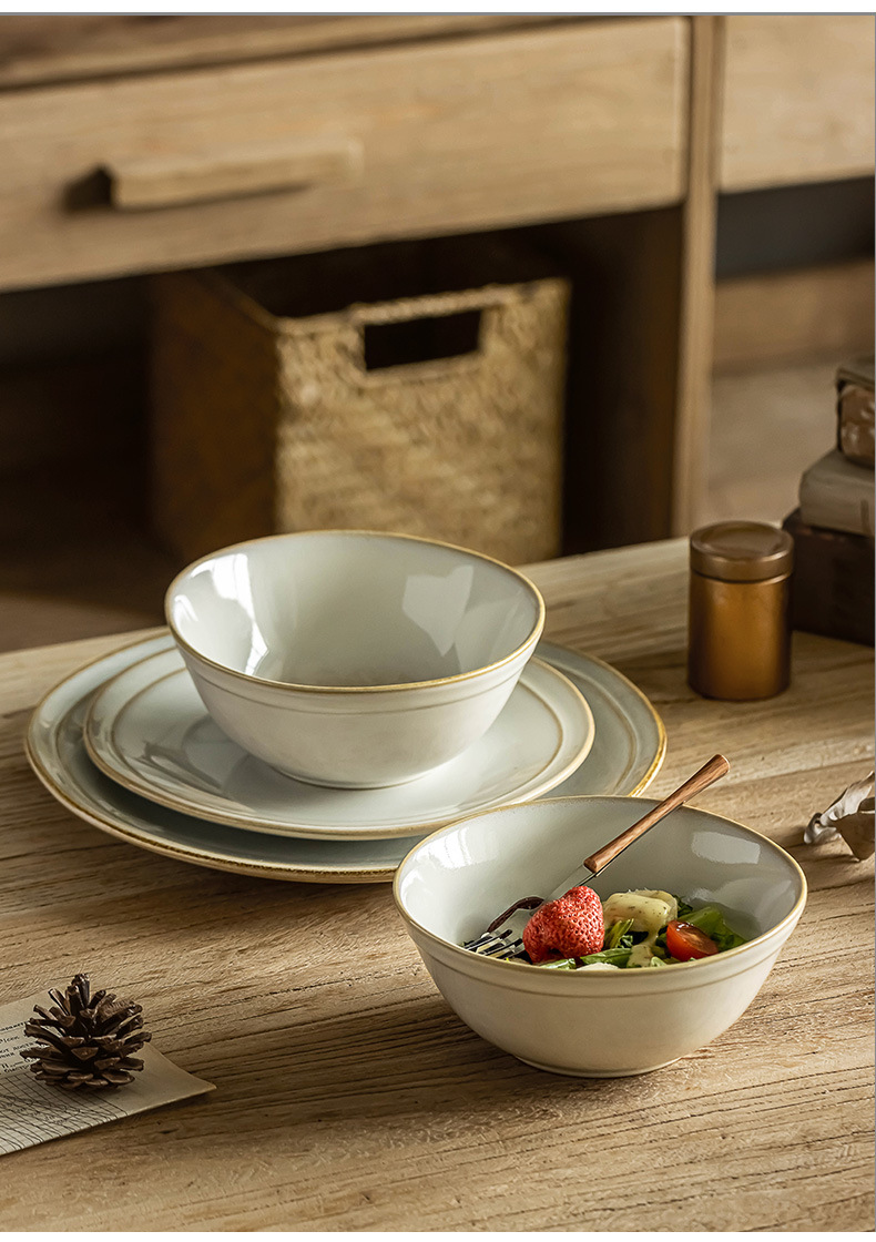 Vajilla de cerámica de la vendimia de estilo europeo Beiyu Sheng serie Tazón plato traje hogar ensalada plato pasta plato de aspecto alto