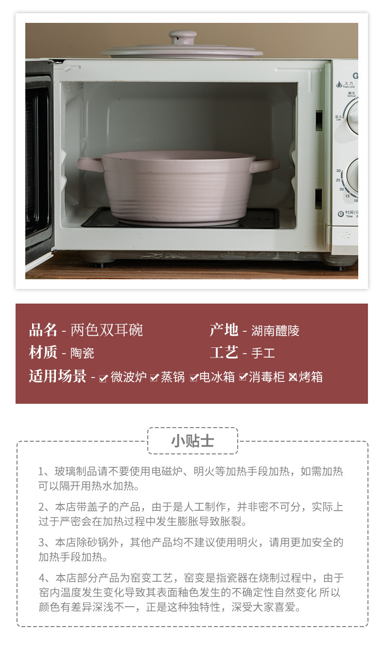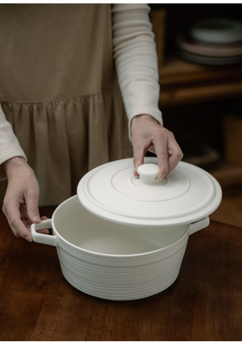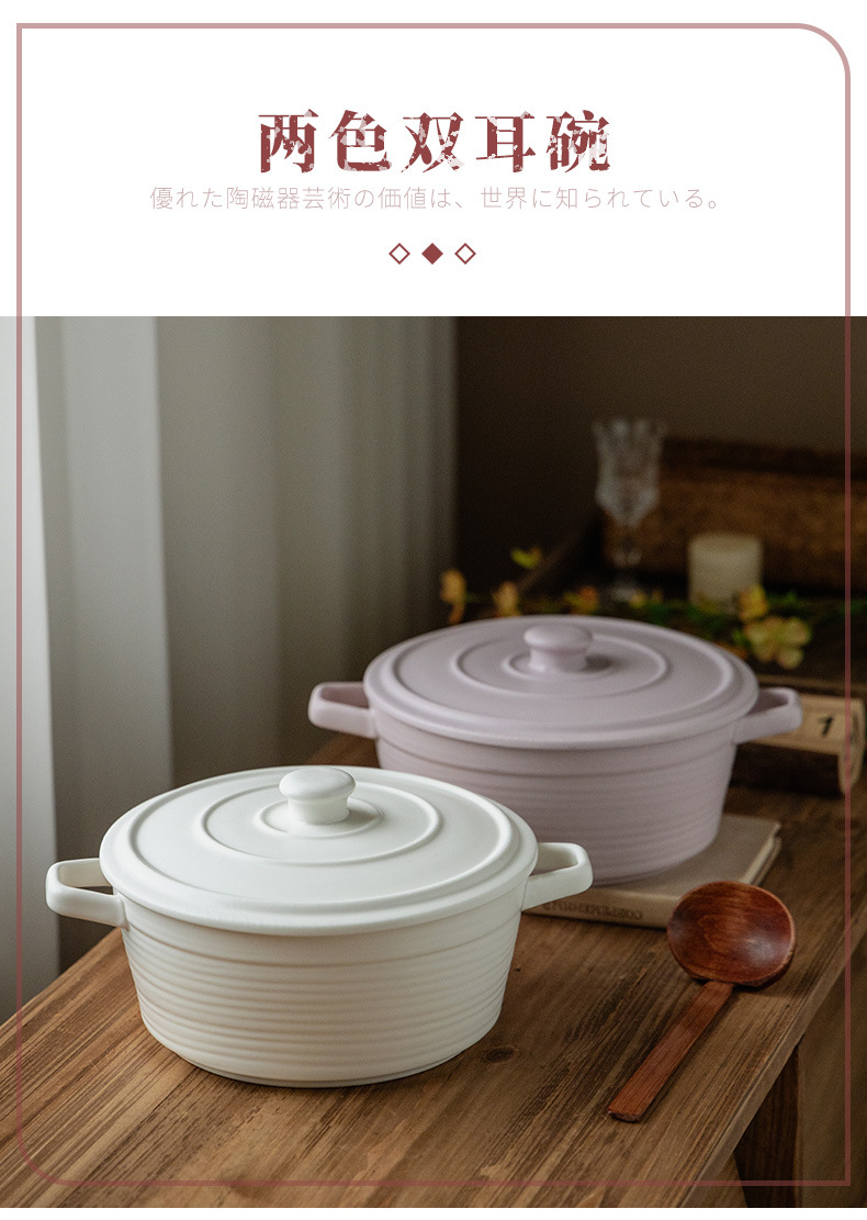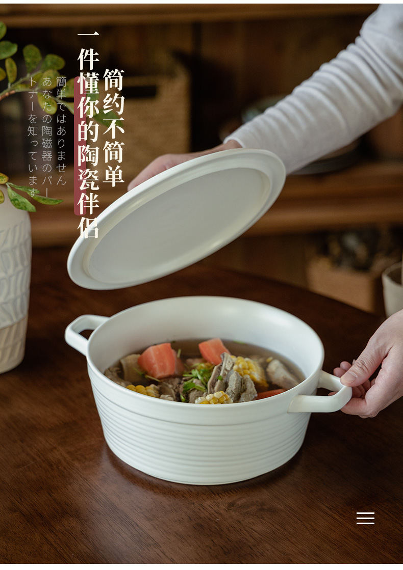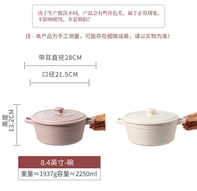 Cuenco de doble oreja grande súper práctico, tazón de sopa grande grueso de cerámica, tazón de verduras, tazón grande, tazón de fruta, tazón de olla picante