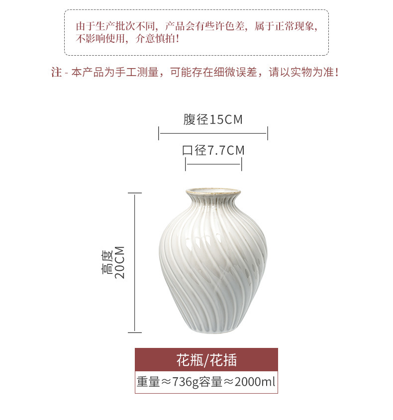 Jarrón de cerámica simple francés B & B Decoración del hogar Arreglos de flores Flores secas Arreglos de flores