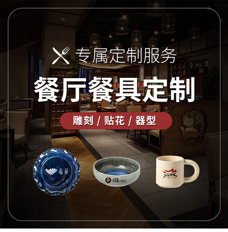 Vajilla de cerámica, impresión, logotipo, plato doméstico, restaurante, plato de tazón, plato de arroz, plato de bistina, plato exclusivo