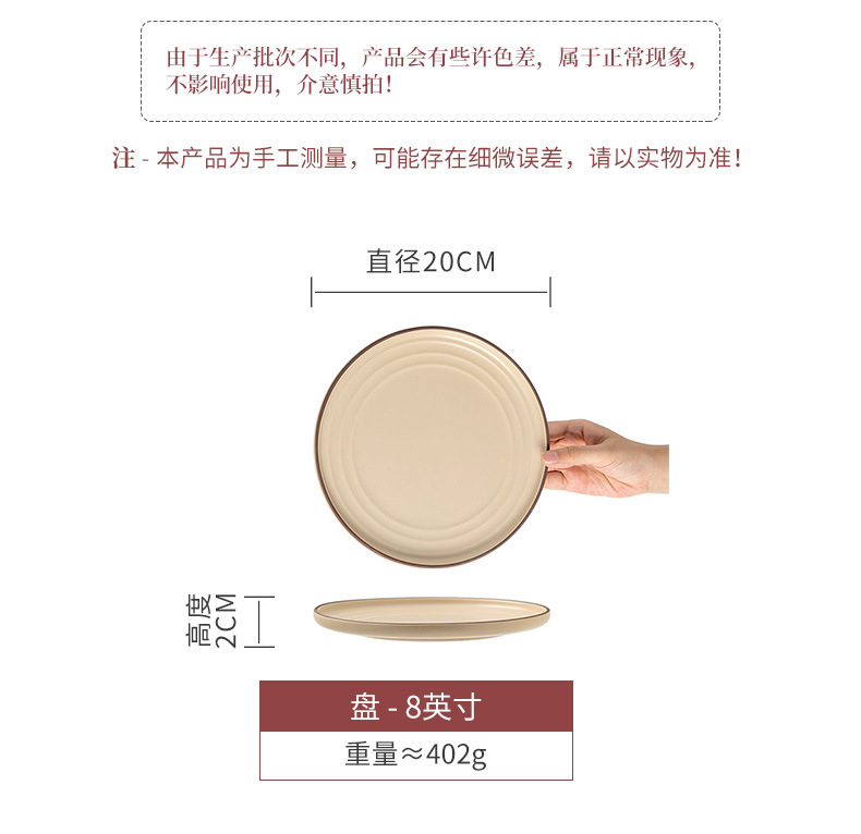 Plato de cerámica de 8 pulgadas, plato de filete de comida occidental, plato de pasta, plato de platos caseros, plato de ensalada de desayuno