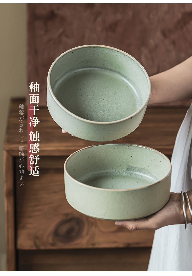 Plato de cerámica de estilo japonés retro, plato de tubo recto, plato de verduras caseras, plato de sopa, plato de vajilla de fondo plano, plato de postres, plato de frutas