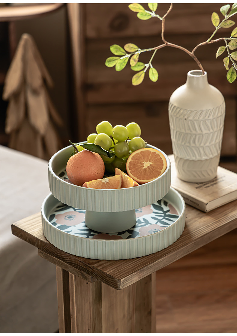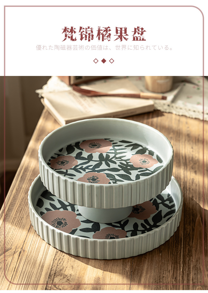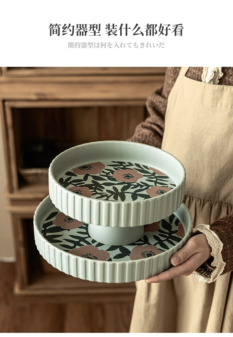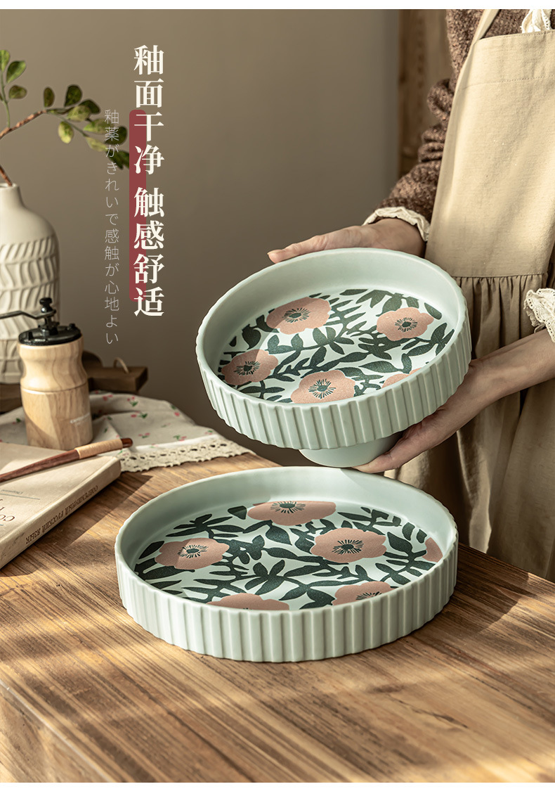 Flores de alto valor, plato de frutas de cerámica, plato casero, plato de frutas de Año Nuevo, plato de bocadillos, plato creativo de pies altos, platos de cubiertos