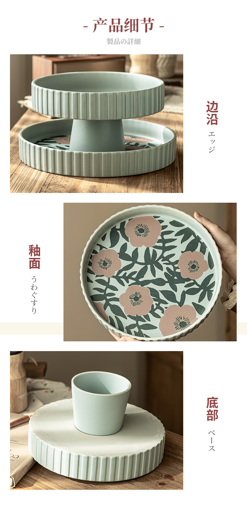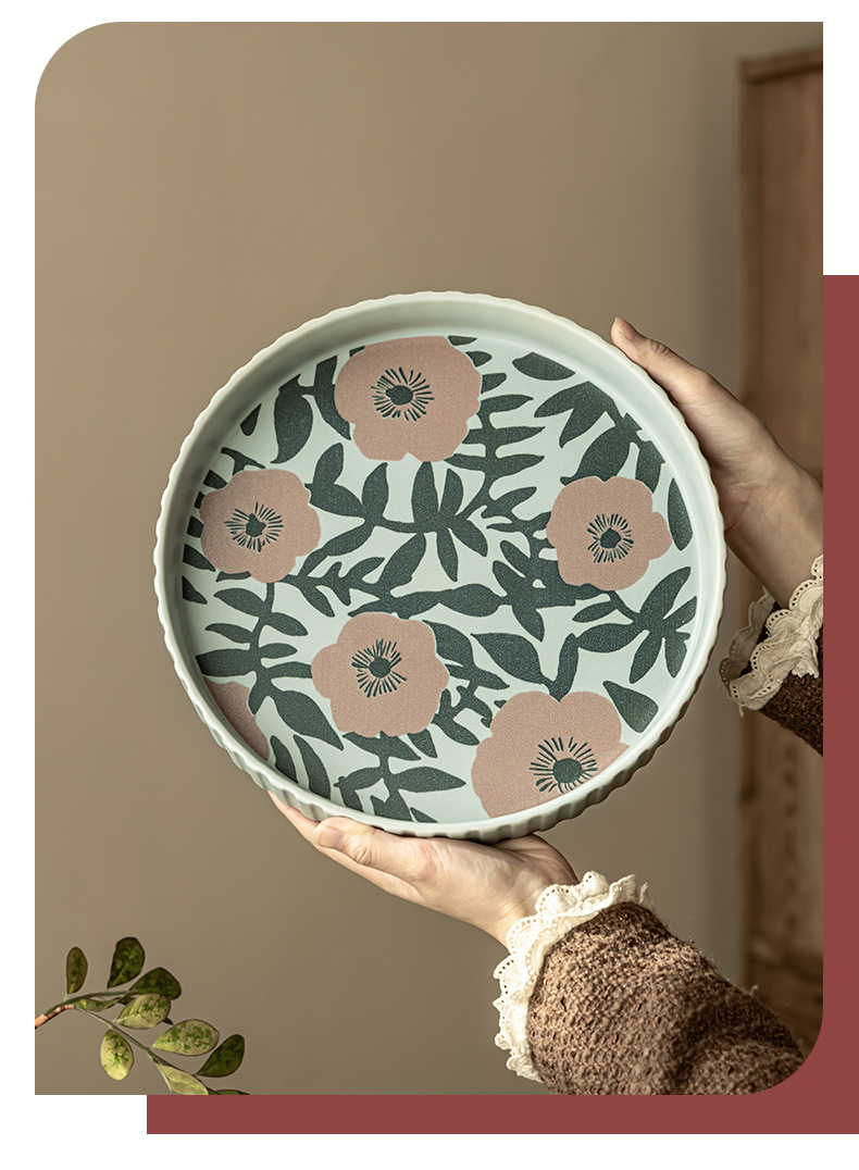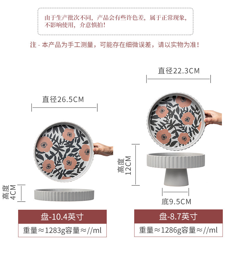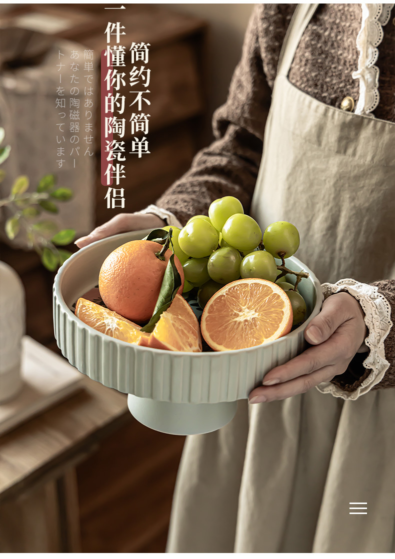 Flores de alto valor, plato de frutas de cerámica, plato casero, plato de frutas de Año Nuevo, plato de bocadillos, plato creativo de pies altos, platos de cubiertos