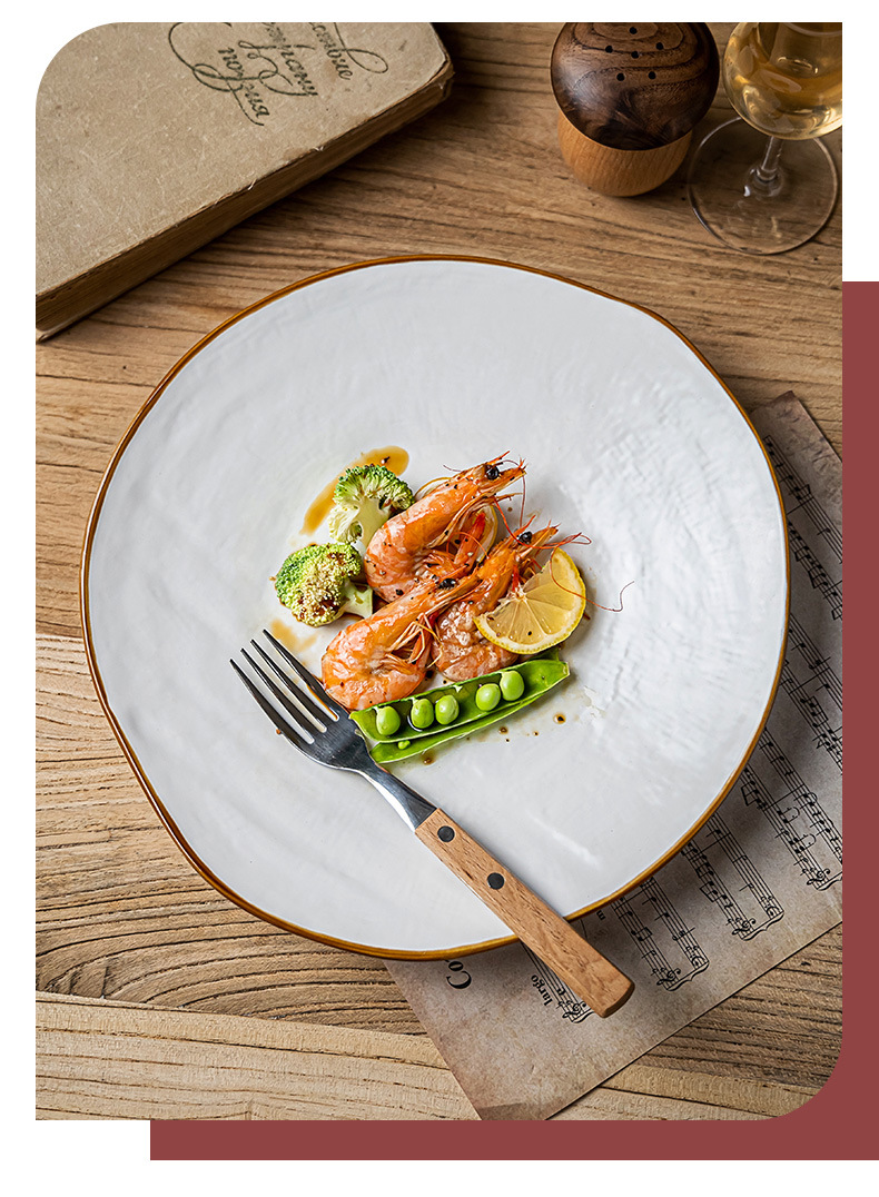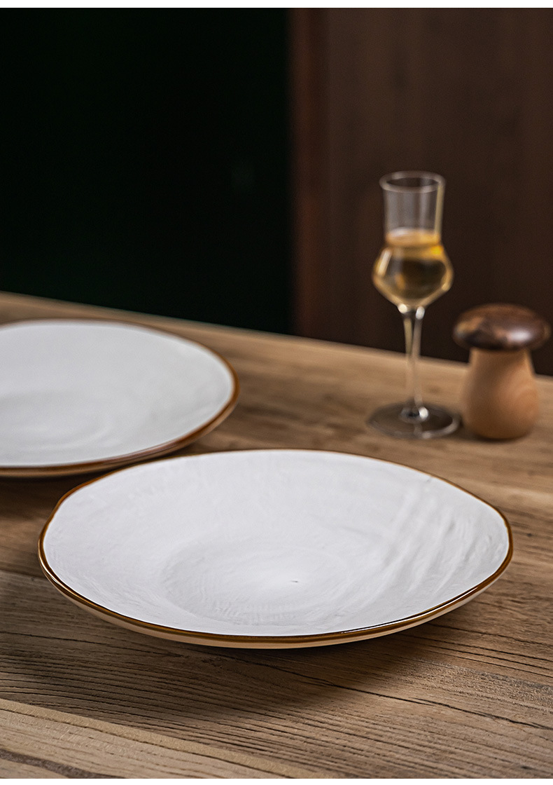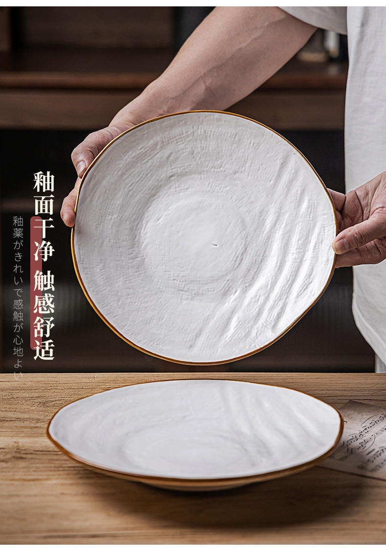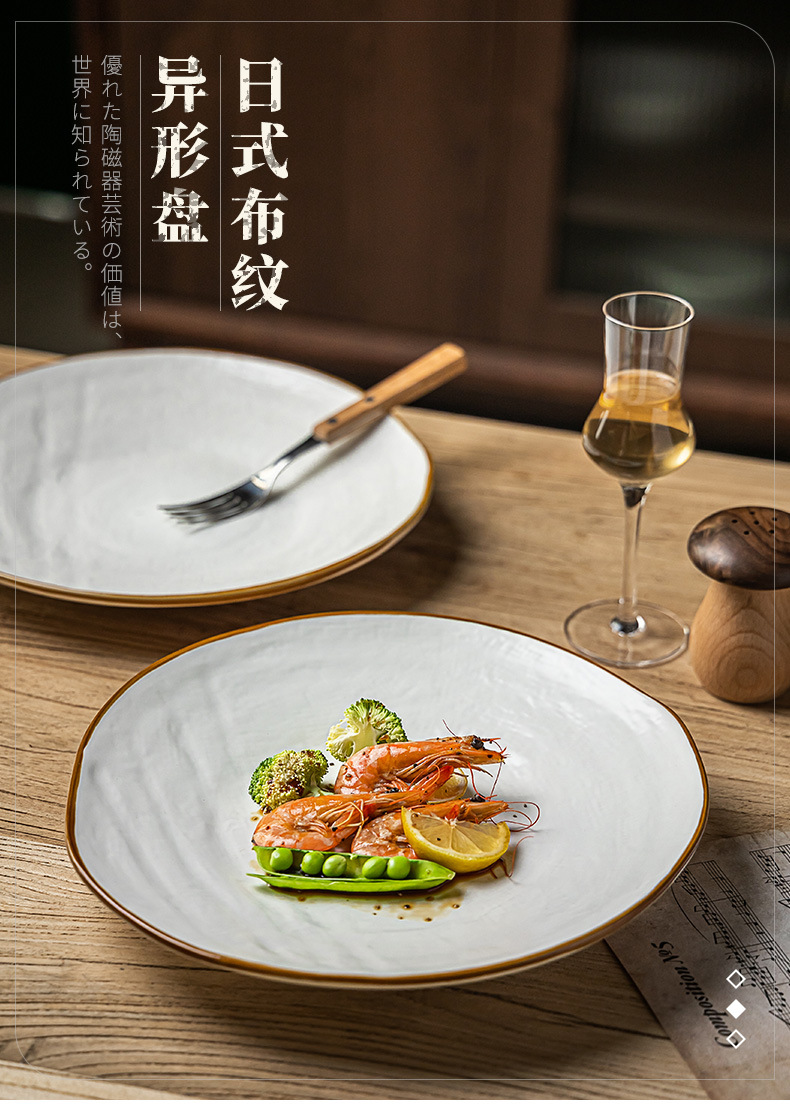 Textura de la tela Placa de alto grado de cerámica de estilo nórdico plato grande plato de carne de pasta occidental ensalada placa ligeramente defecto