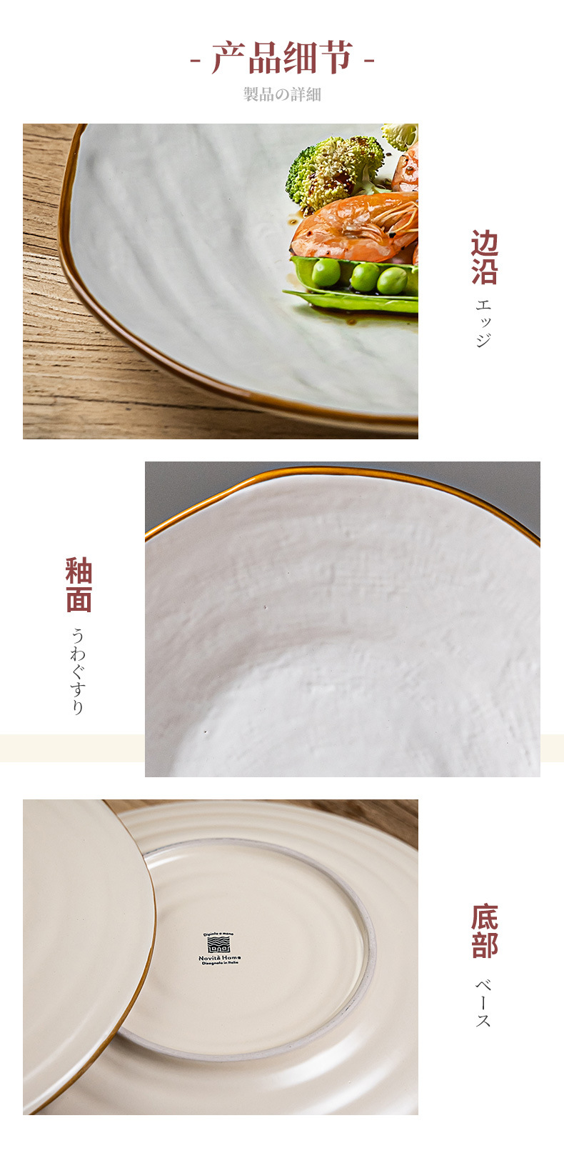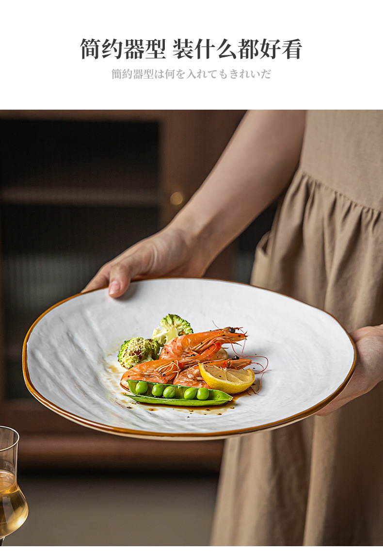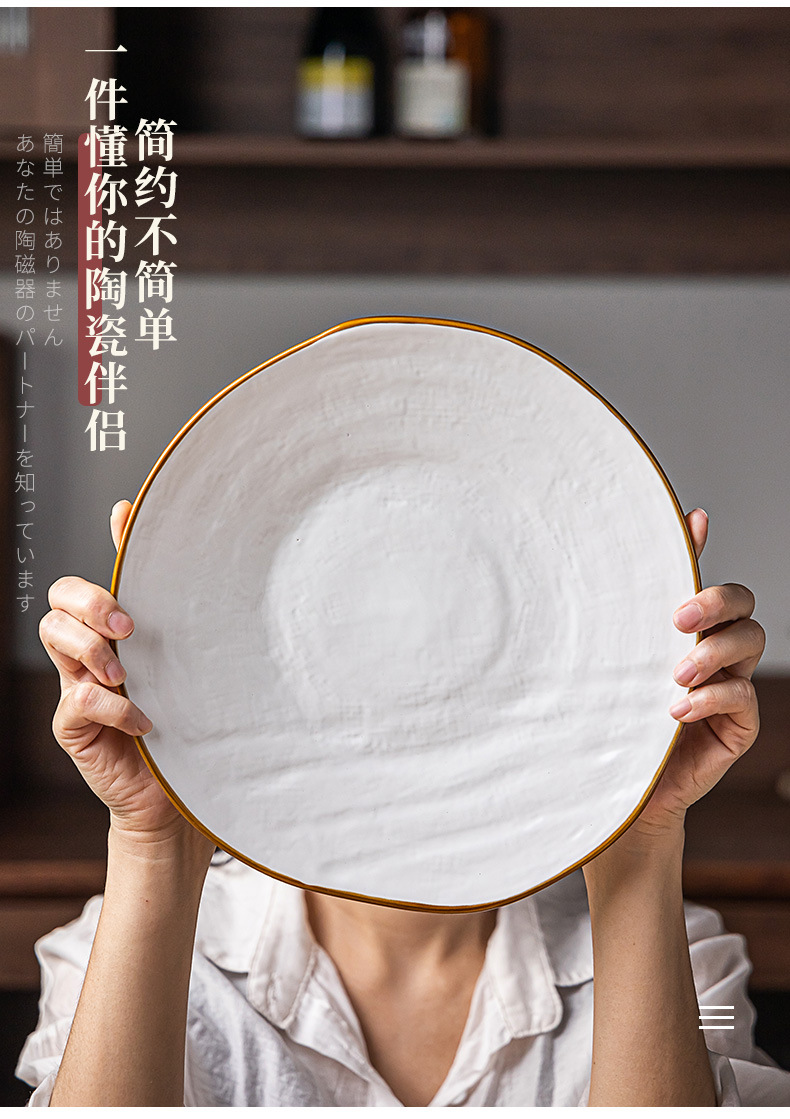 Textura de la tela Placa de alto grado de cerámica de estilo nórdico plato grande plato de carne de pasta occidental ensalada placa ligeramente defecto