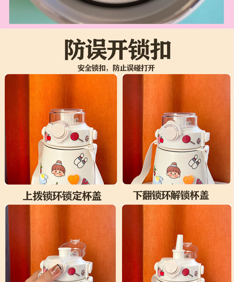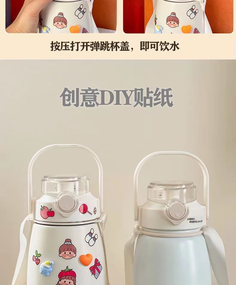 Taza de vacío de acero inoxidable de gran capacidad de paja de dibujos animados de mujer taza de vientre grande de Internet celebridad de los niños taza de agua de alta apariencia hervidor portátil