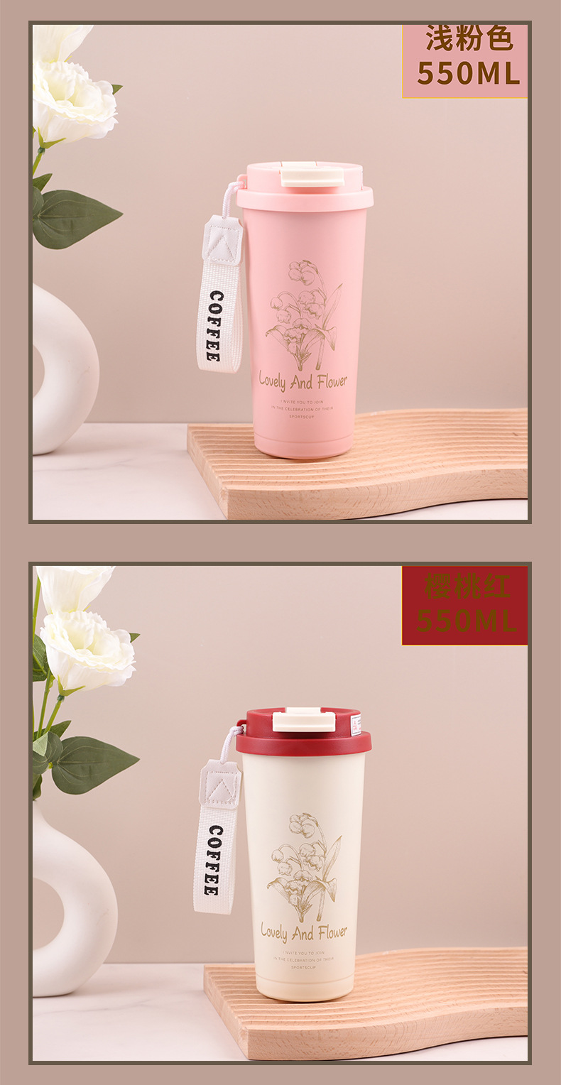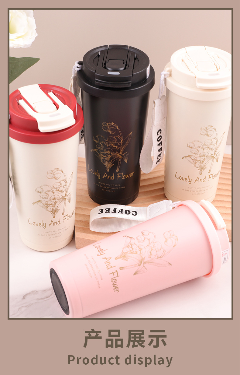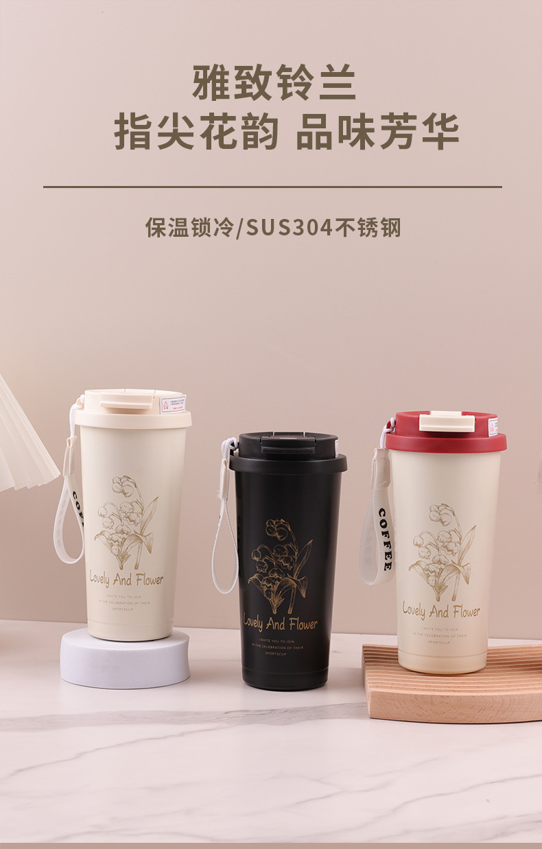 Red orquídea de campana 304 taza de café de acero inoxidable taza de paja de mano taza de aislamiento de agua portátil de oficina al aire libre taza de aislamiento de agua