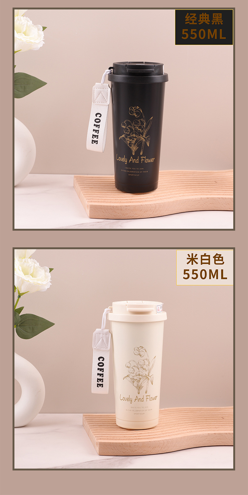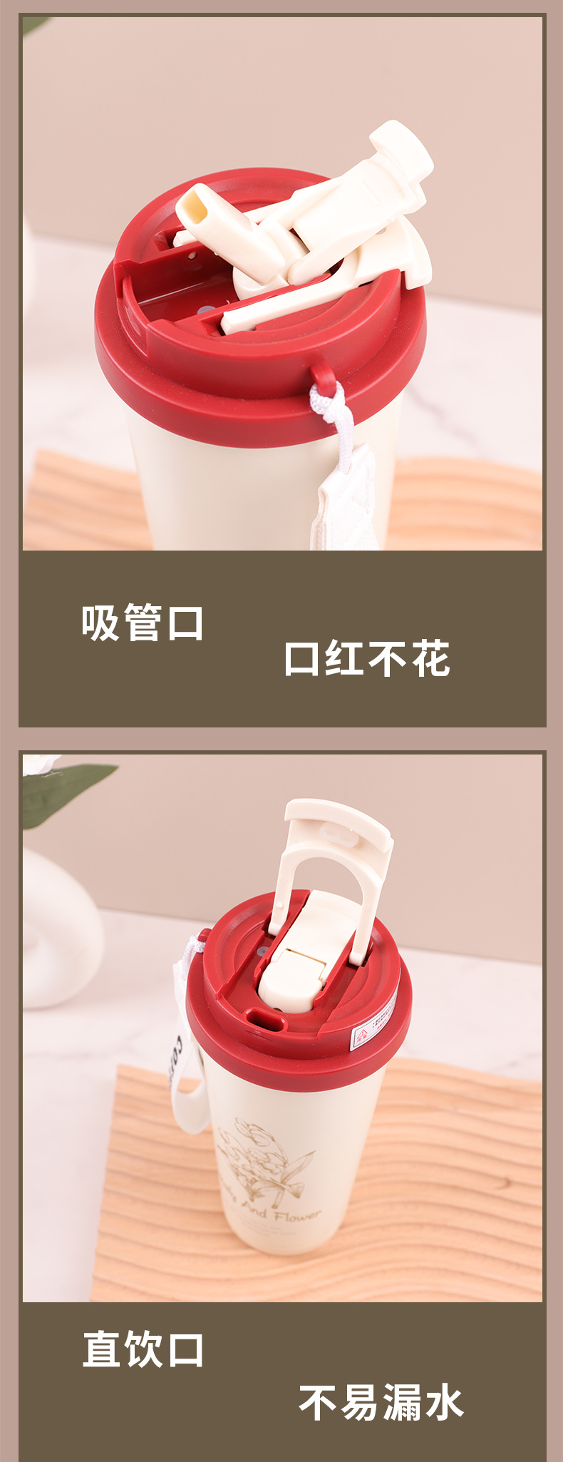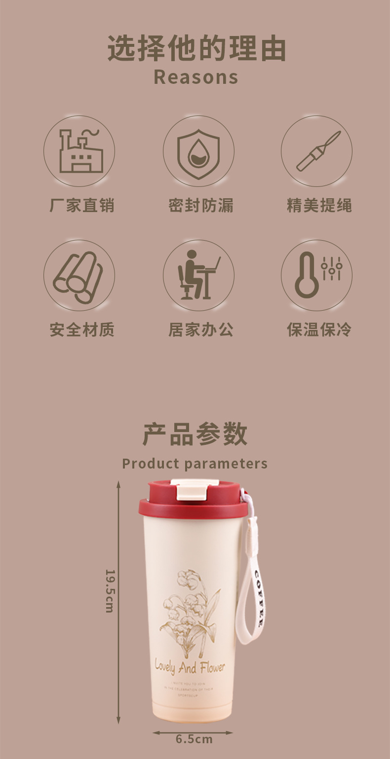 Red orquídea de campana 304 taza de café de acero inoxidable taza de paja de mano taza de aislamiento de agua portátil de oficina al aire libre taza de aislamiento de agua