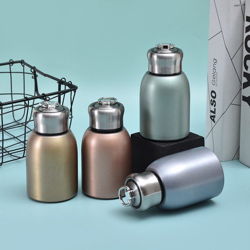 Venta caliente transfronteriza Linda mini gordito Ding taza de vacío 304 Acero inoxidable taza de vientre pequeño taza de estudiantes masculinos y femeninos con anillo de elevación