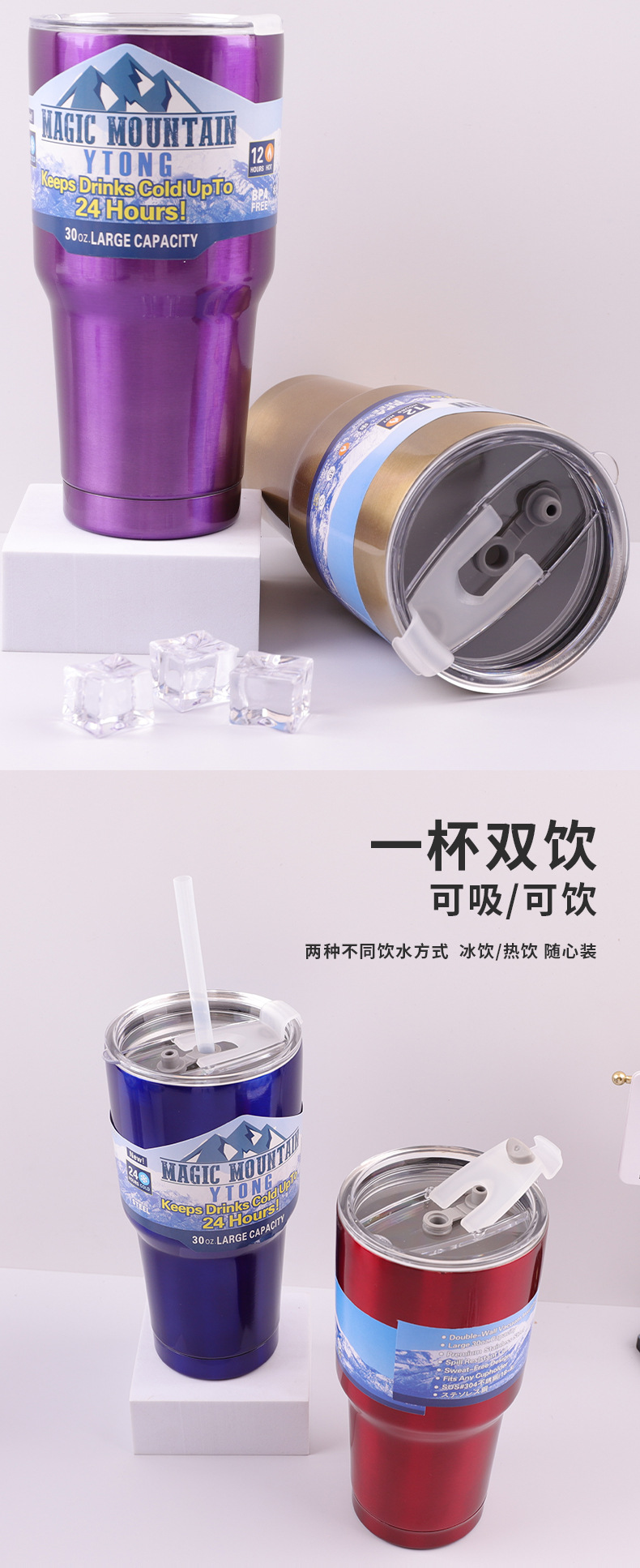 Comercio exterior transfronterizo helado taza de acero inoxidable taza de vacío 30oz taza de coche de gran capacidad taza de cerveza taza de regalo