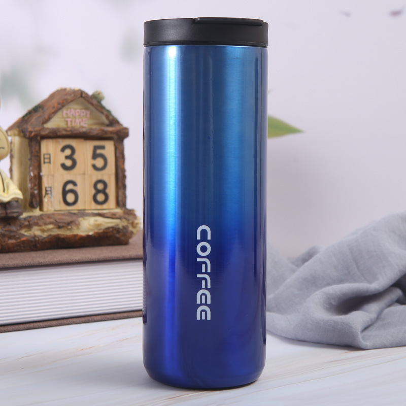 Venta caliente transfronteriza de acero inoxidable de color degradado taza de vacío transfronteriza Oficina portátil de moda taza de café de doble capa de vacío