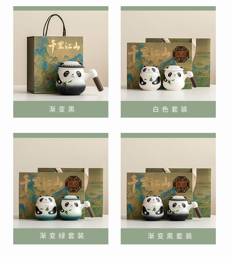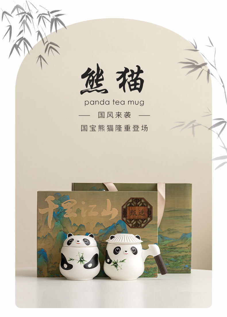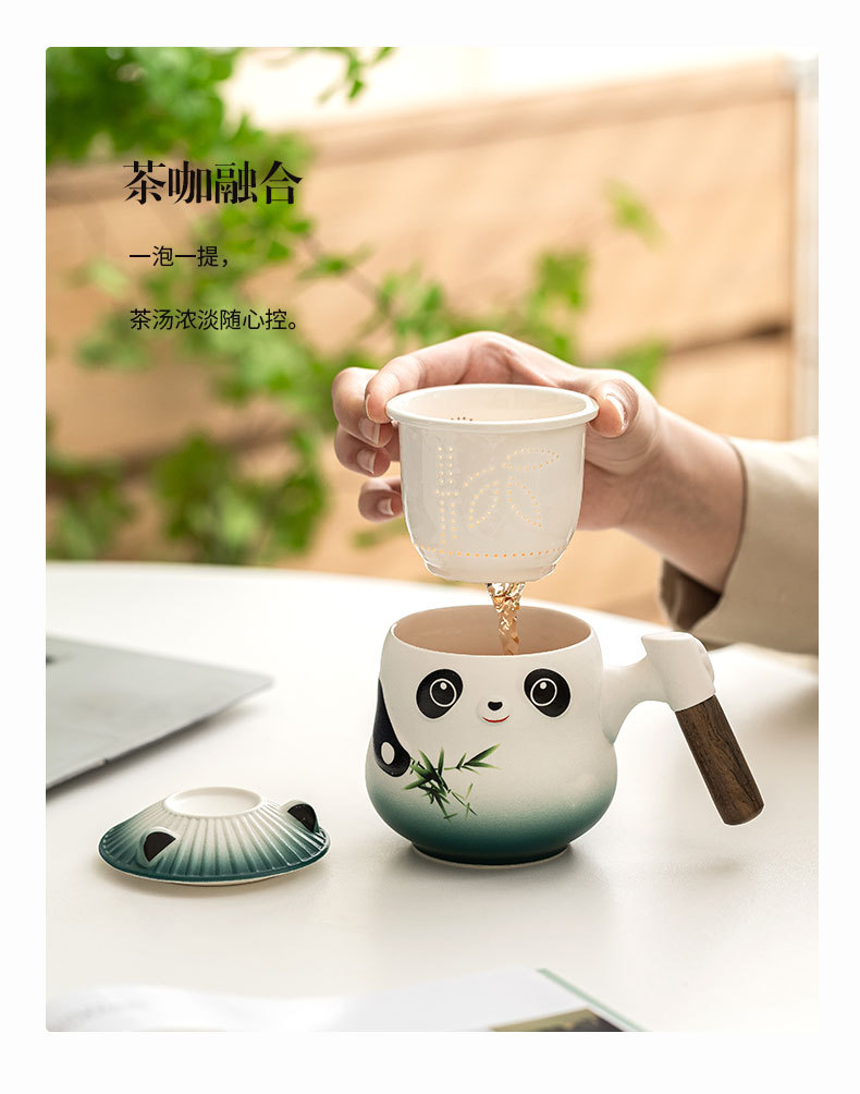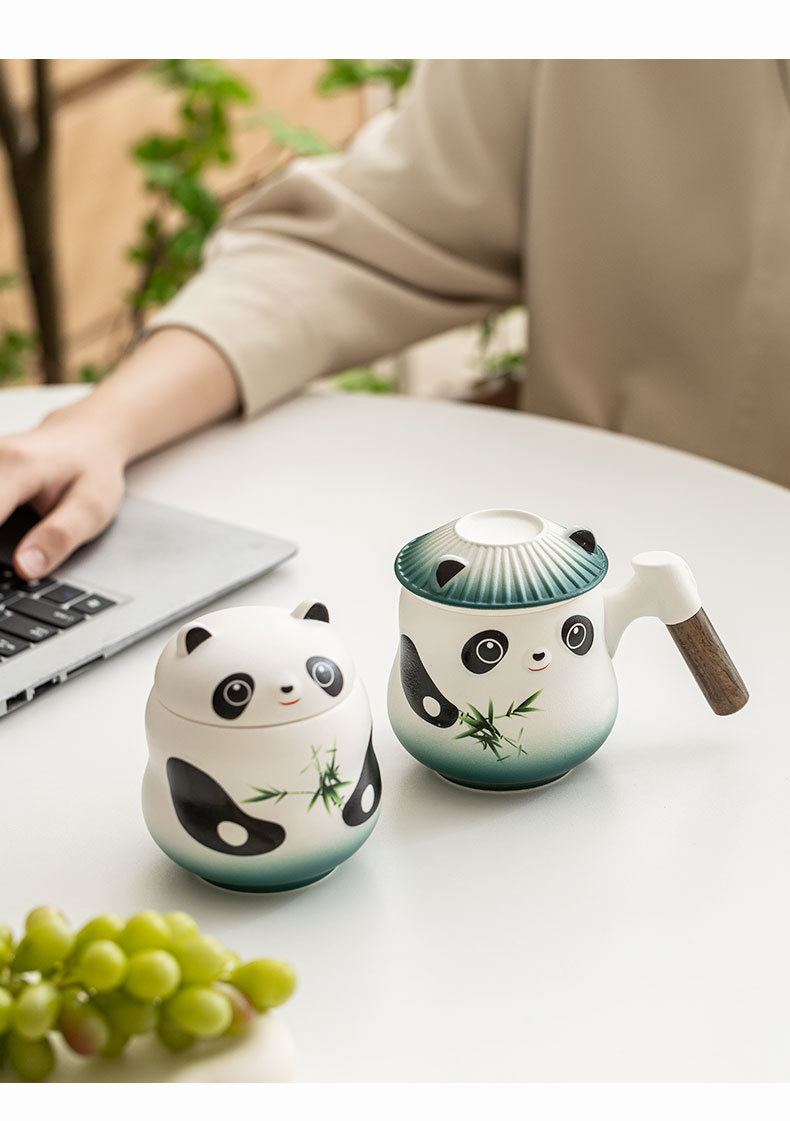 Taza de panda cultural y creativa de la marea nacional Taza de cerámica Taza de té Taza de café Taza de filtro Nombre tallado Taza de apellido LOGO al por mayor