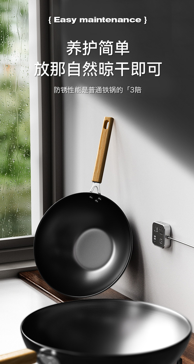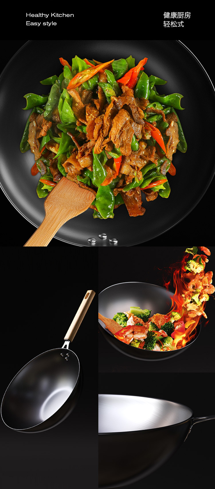 34 Wok de fondo plano + oreja + borrador de esponja