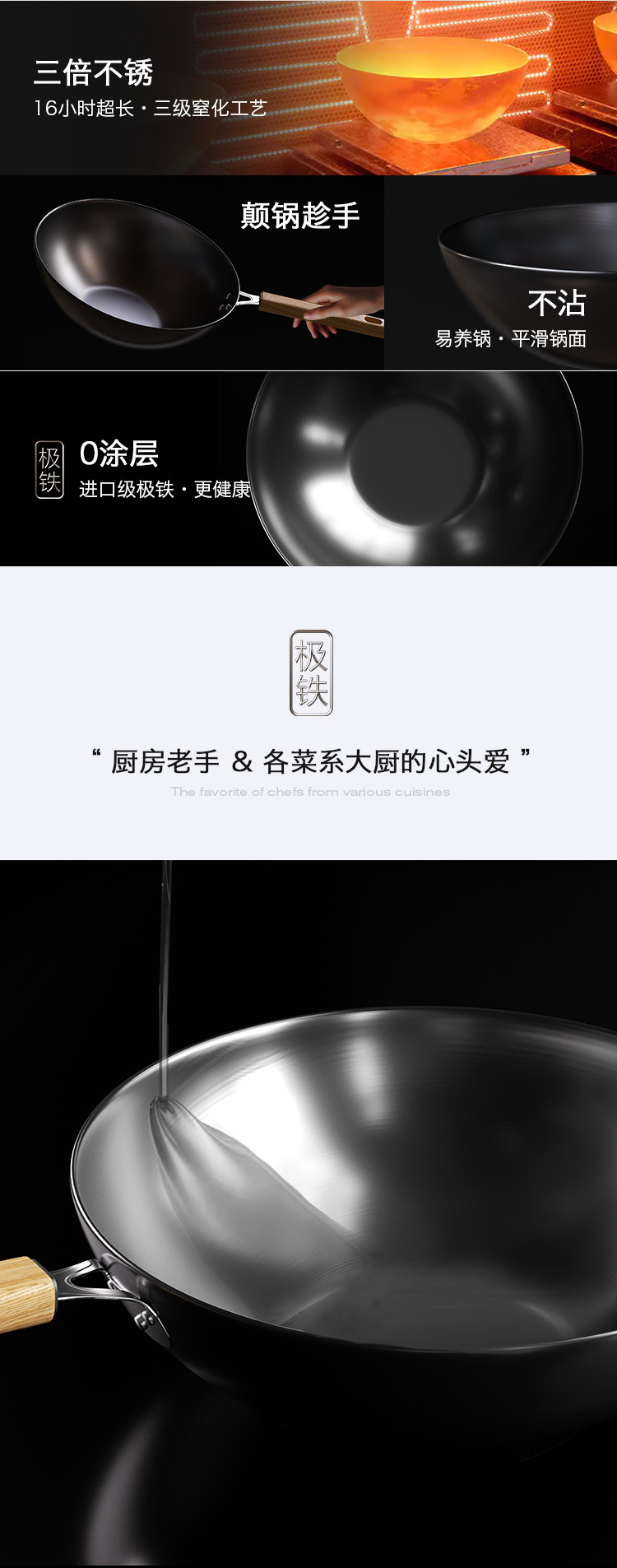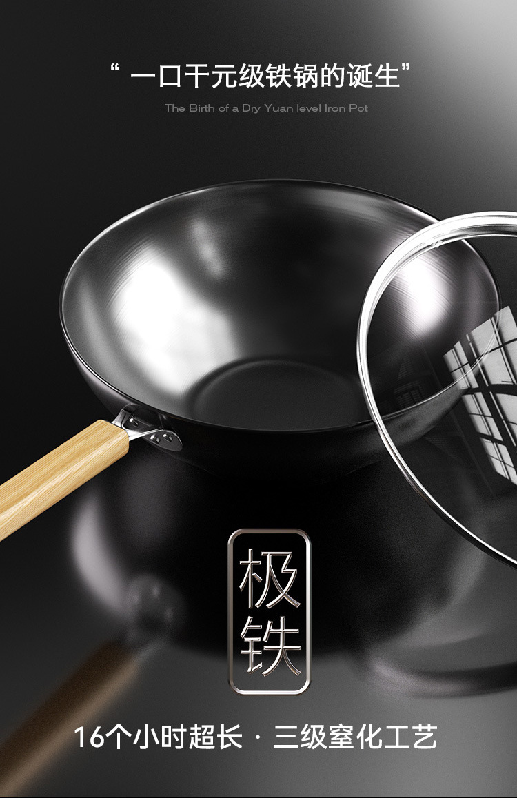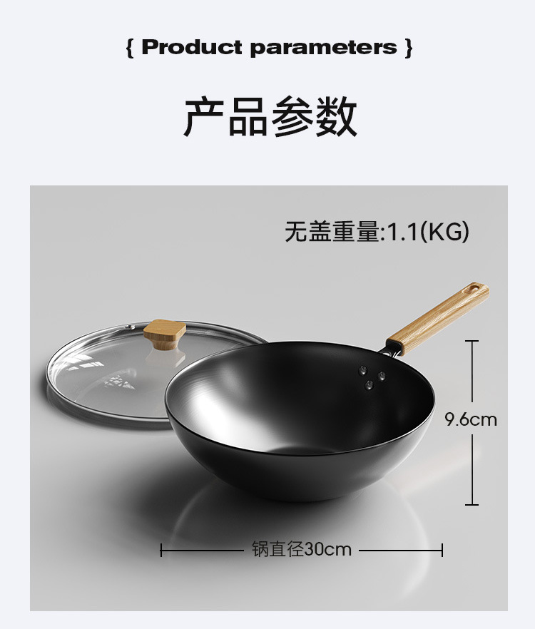 34 Wok de fondo plano + tapa templada + oreja + borrador de esponja