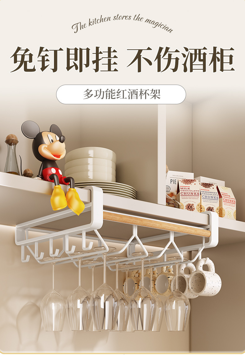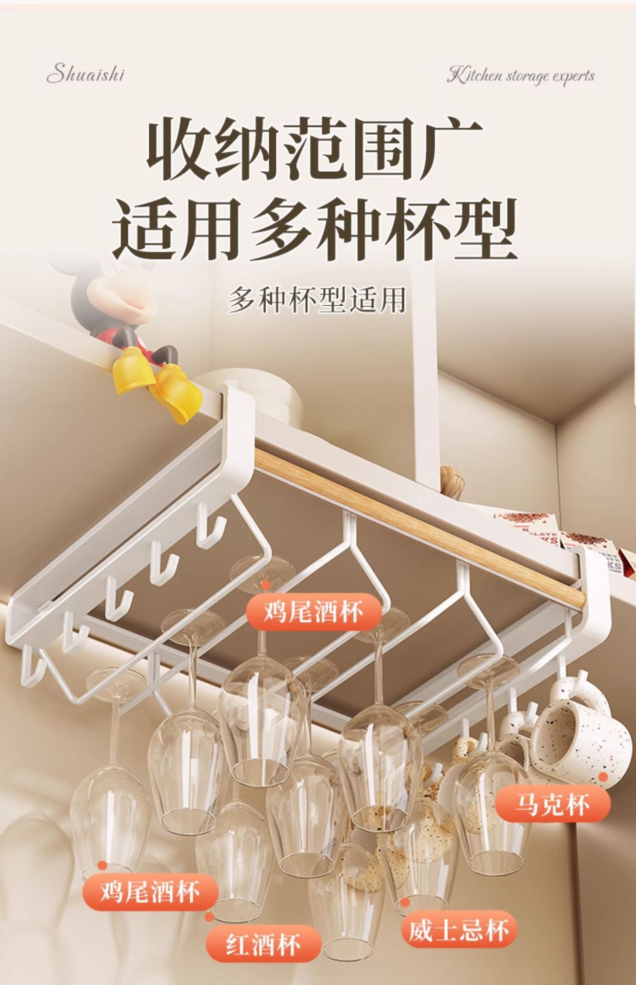 Estante de Copa de vino tinto colgado debajo del mango de madera