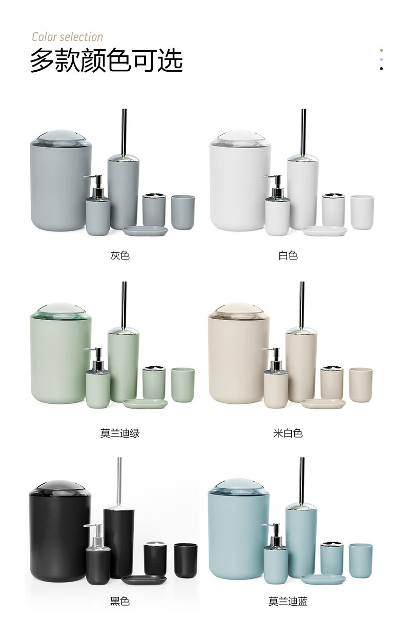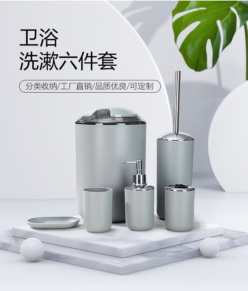 | Marca | Productos de baño de plástico de color sólido conjunto de seis piezas cepillo de enjuague bucal soporte de dientes caja de jabón almacenamiento de baño conjunto de lavado |