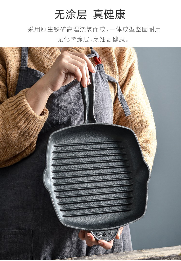 Grueso filete de hierro fundido sartén a rayas filete no recubierto antiadherente hogar frito filete sartén especial fondo plano sartén