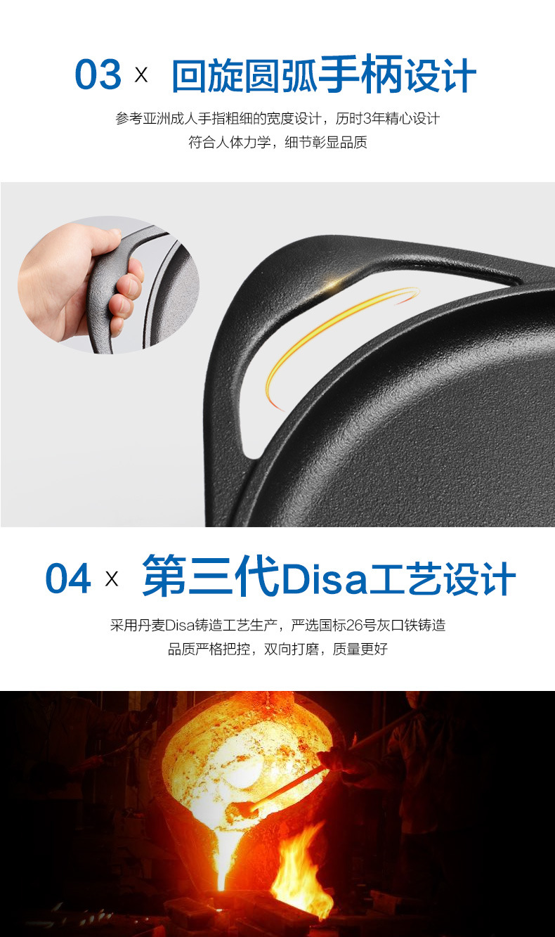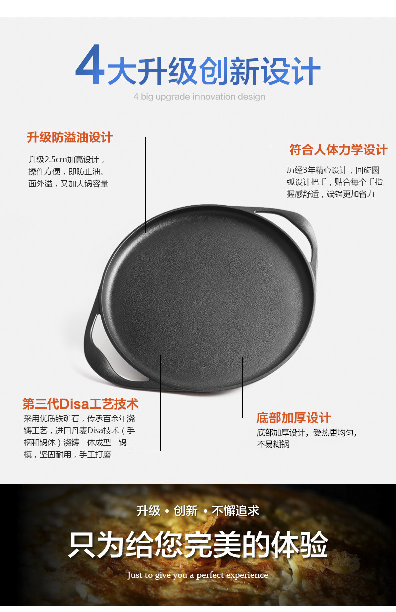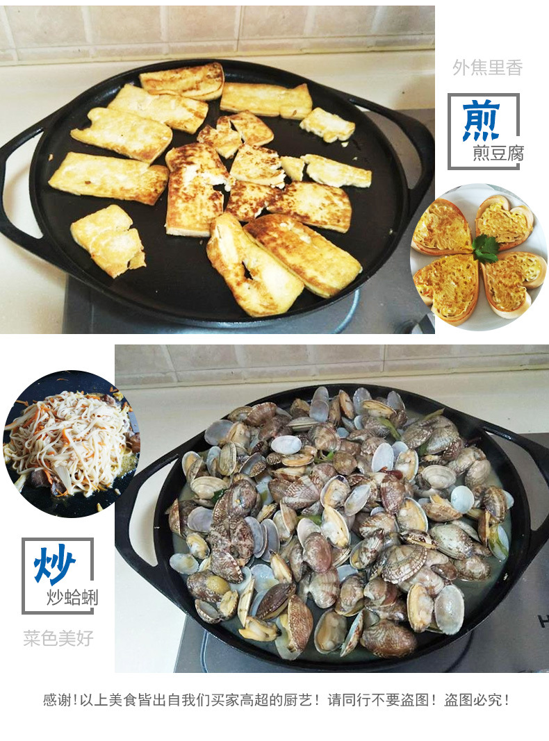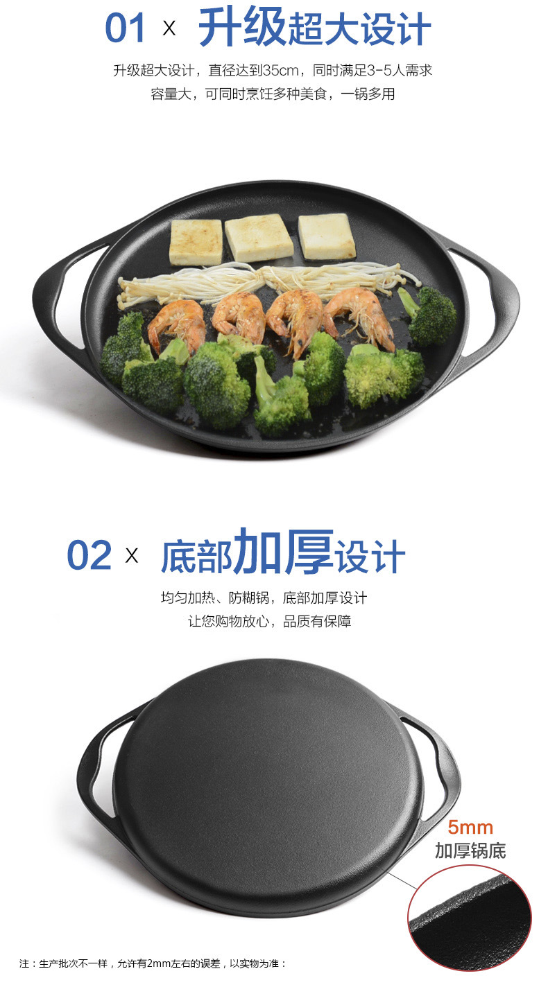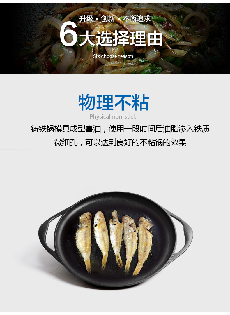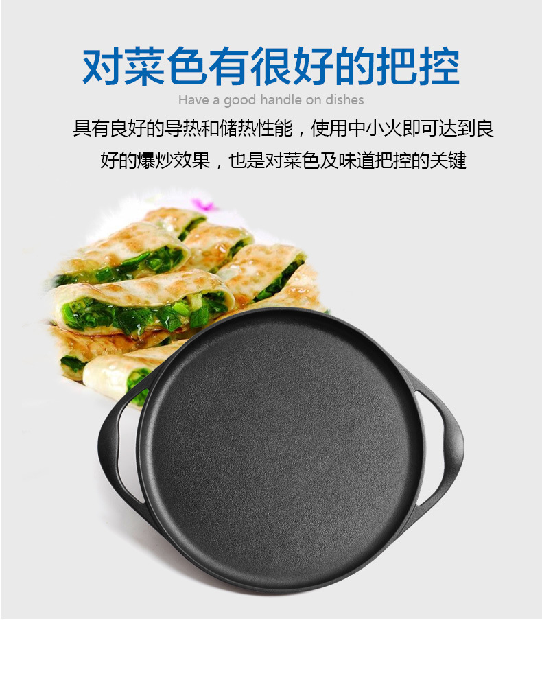 Engrosado de doble oreja de hierro fundido sartén antiadherente hogar comercial palillos de gas panqueque sartén