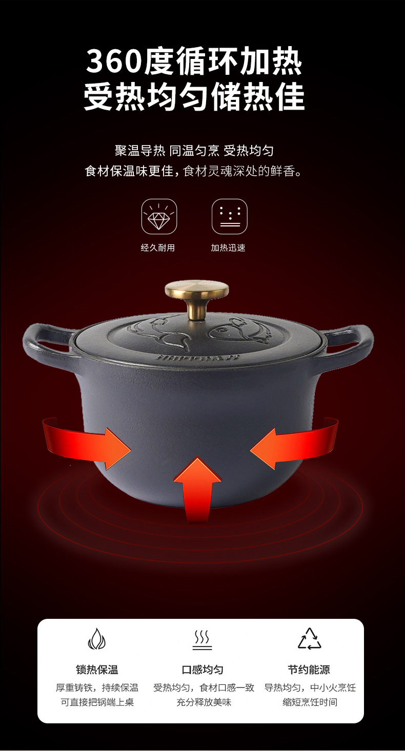 Pequeña felicidad hierro fundido cocina de arroz de carpa Koi cocina de arroz multifuncional casera cocina de arroz sin recubrimiento antiadherente cocina