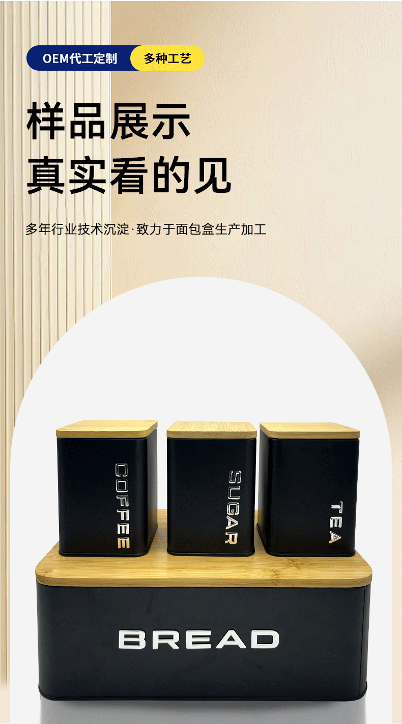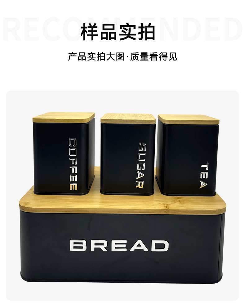 Caja de almacenamiento de pan nórdico personalizada Juego de 4 piezas Caja de pan Tapa de bambú Contenedor de almacenamiento de cocina doméstica Tarro de frijoles de café
