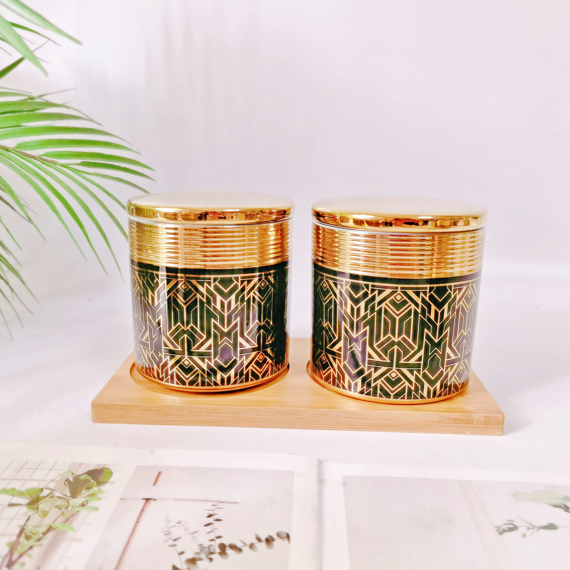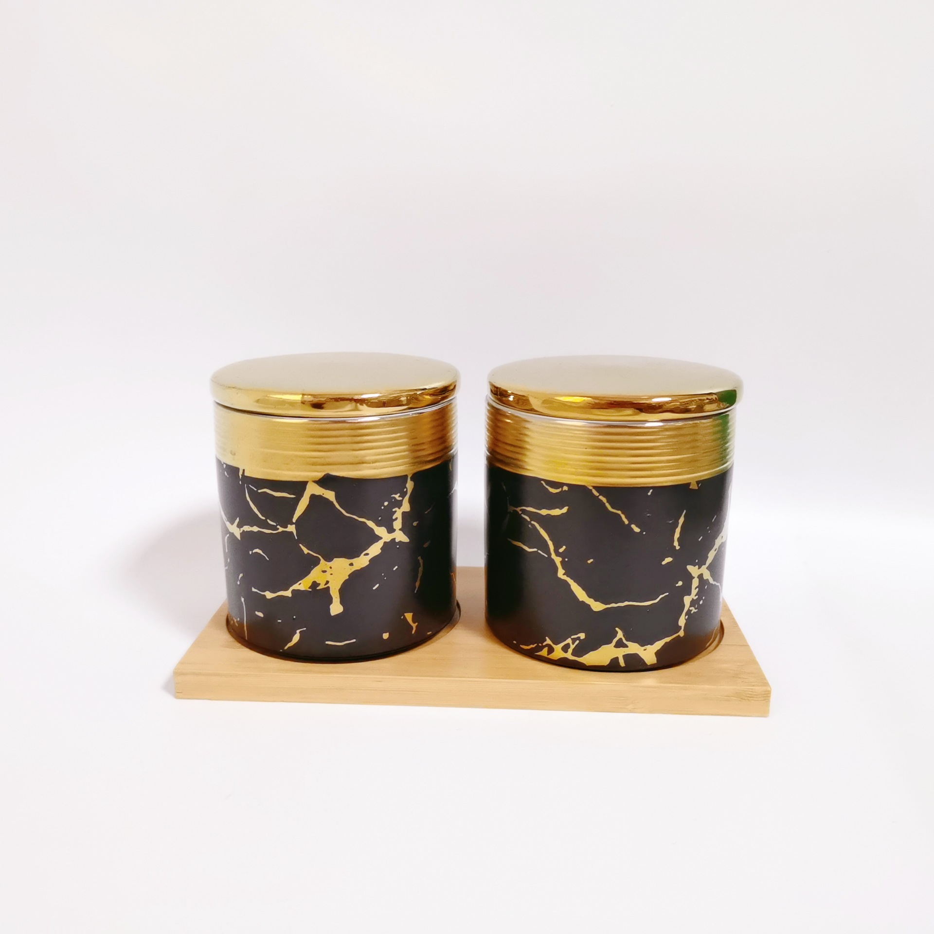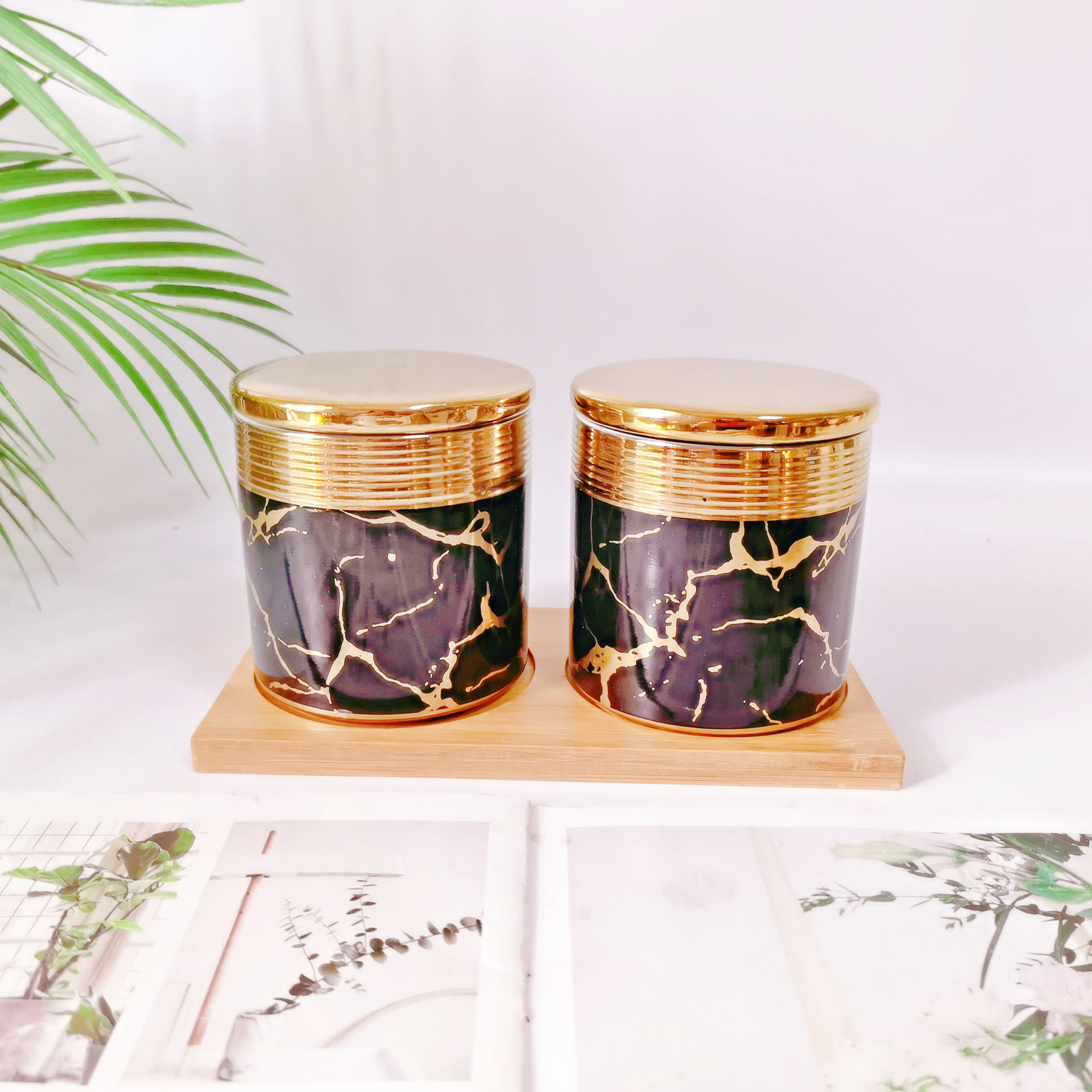 Jarra sellada de galvanoplastia de estilo europeo jarra de condimento de cocina de cerámica con jarra de almacenamiento de grano de madera jarra de café jarra de almacenamiento de sal y azúcar