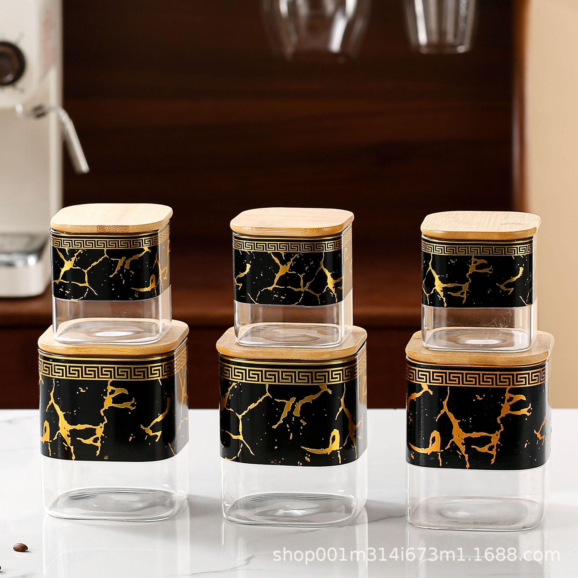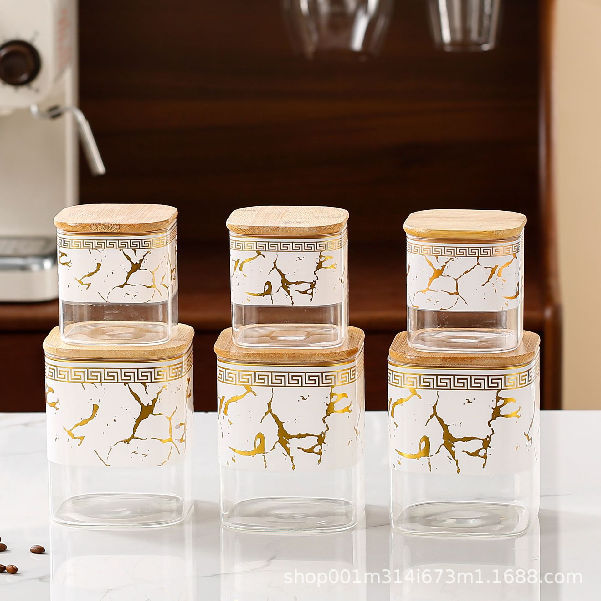 Tanque de sellado cuadrado de vidrio tanque de almacenamiento de exportación transfronterizo cubierta de madera tanque de almacenamiento de té de cocina condimento lata de café