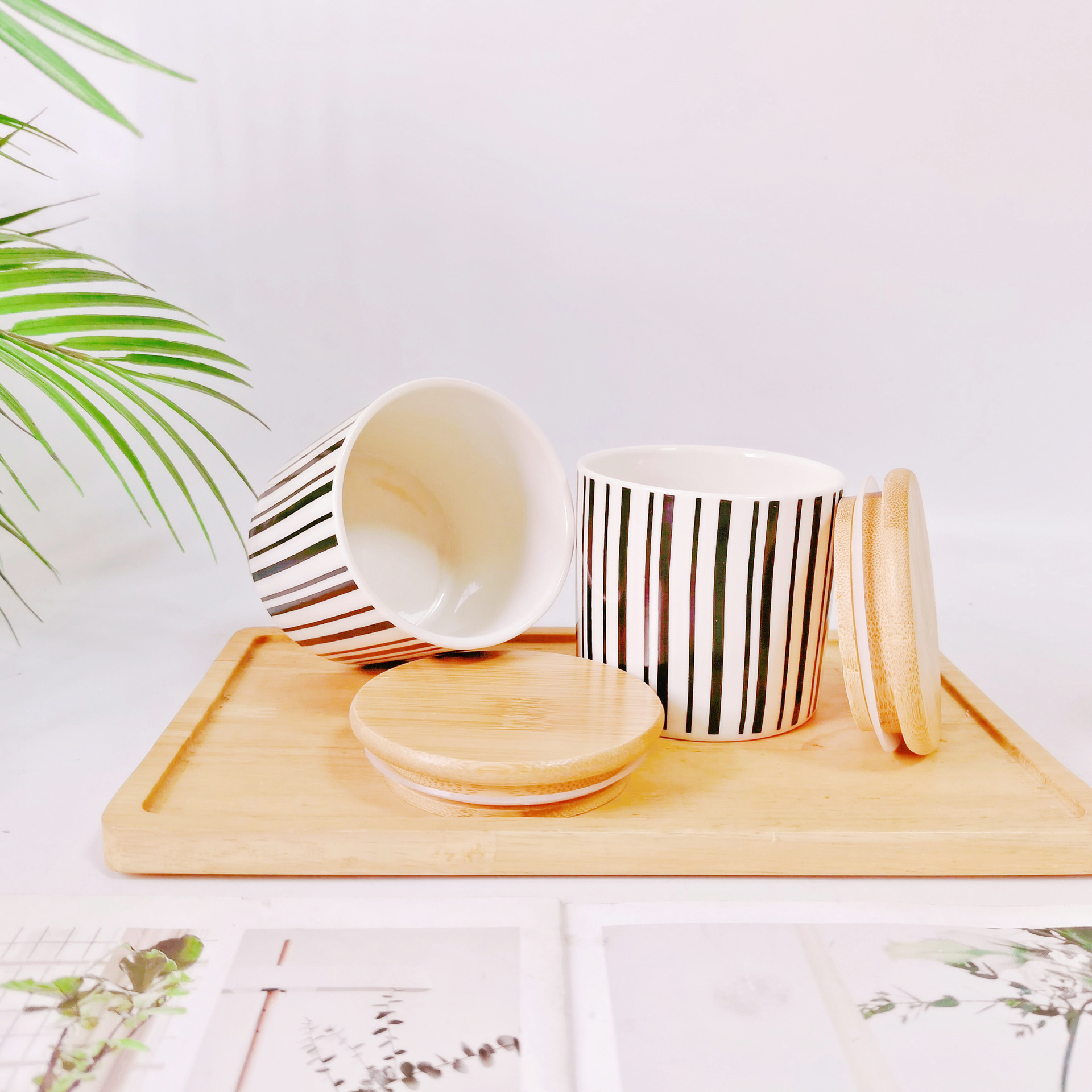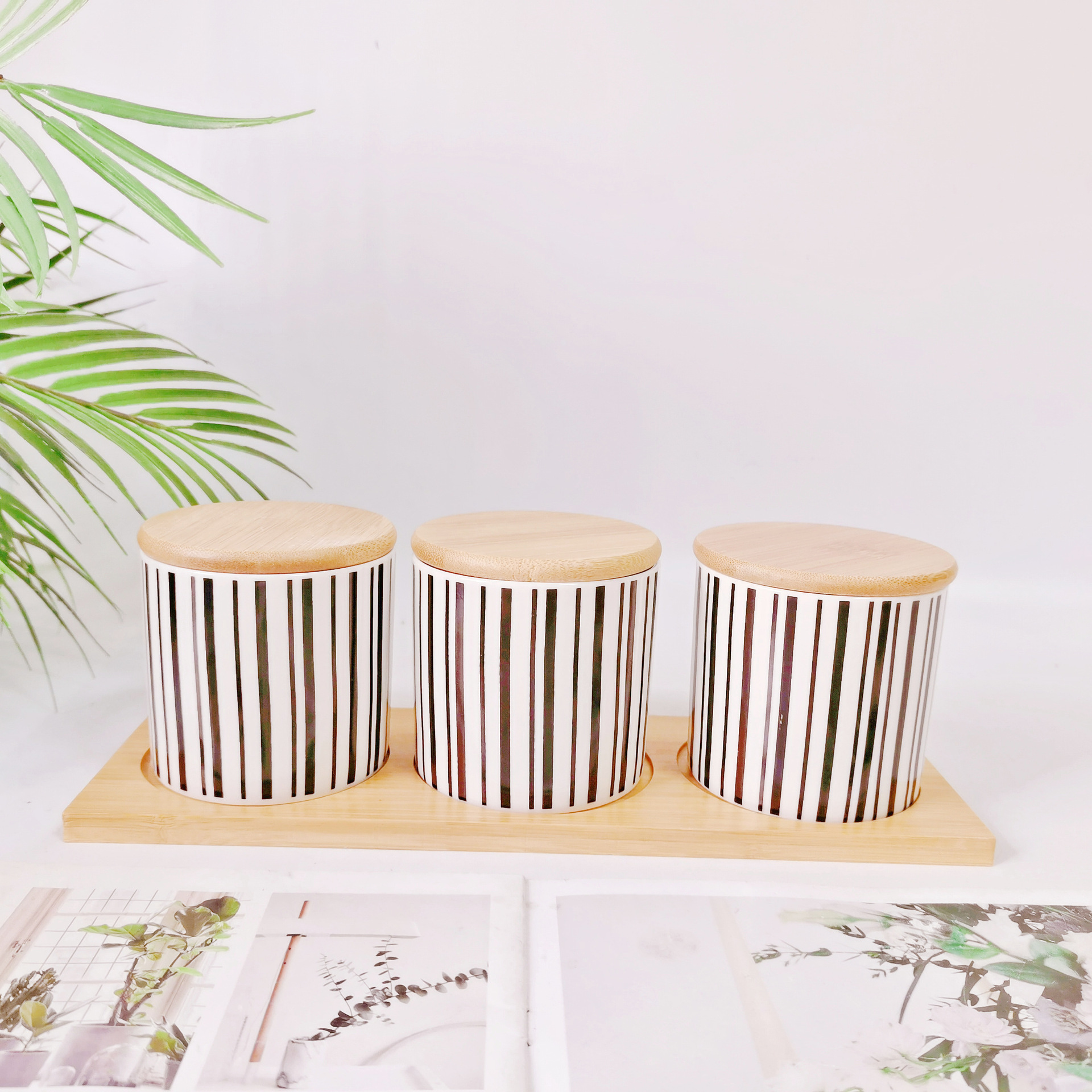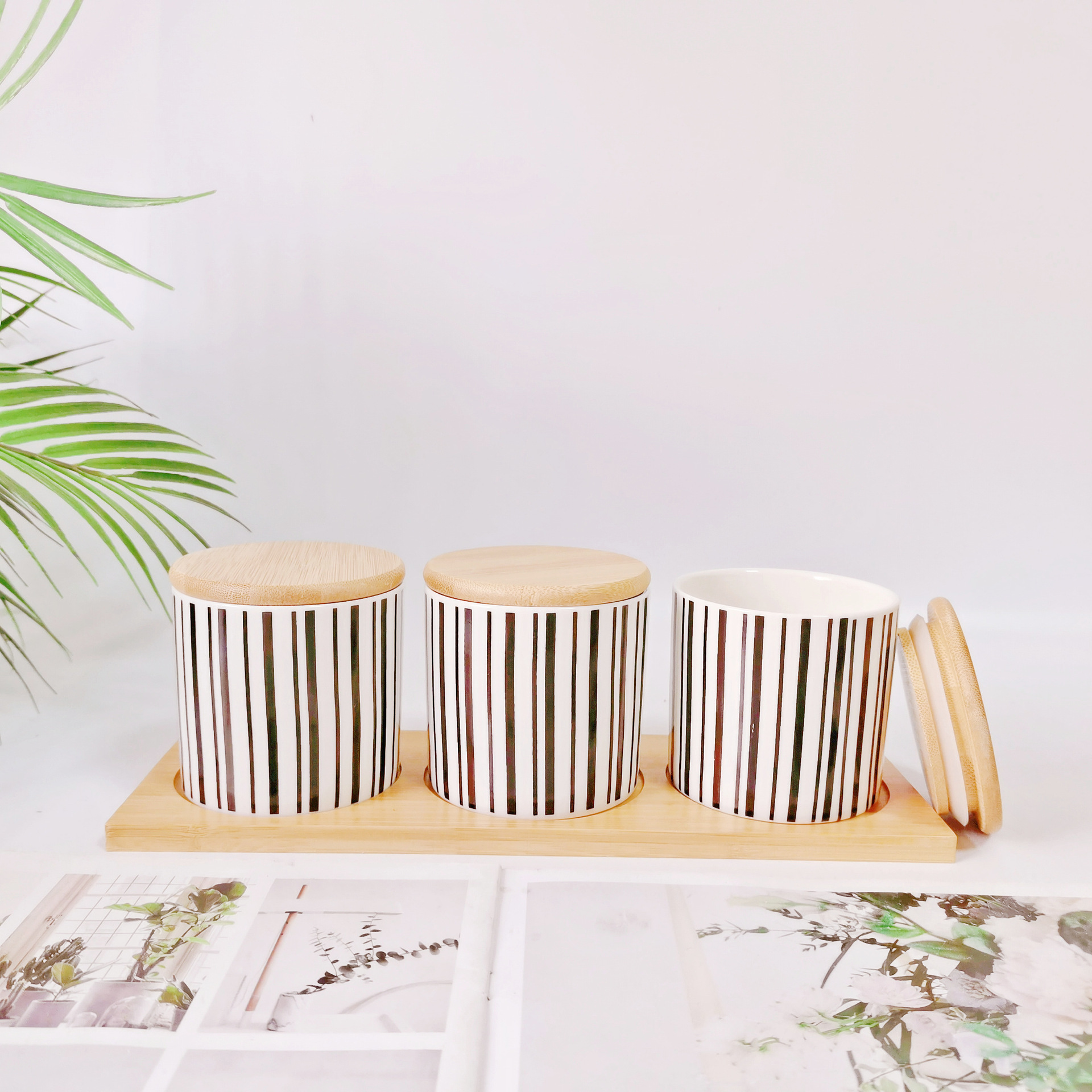 Simple Oriente Medio Exportación de cerámica sellada Jar cocina condimento Jar con bandeja de madera de 2 piezas de almacenamiento condimento Jar