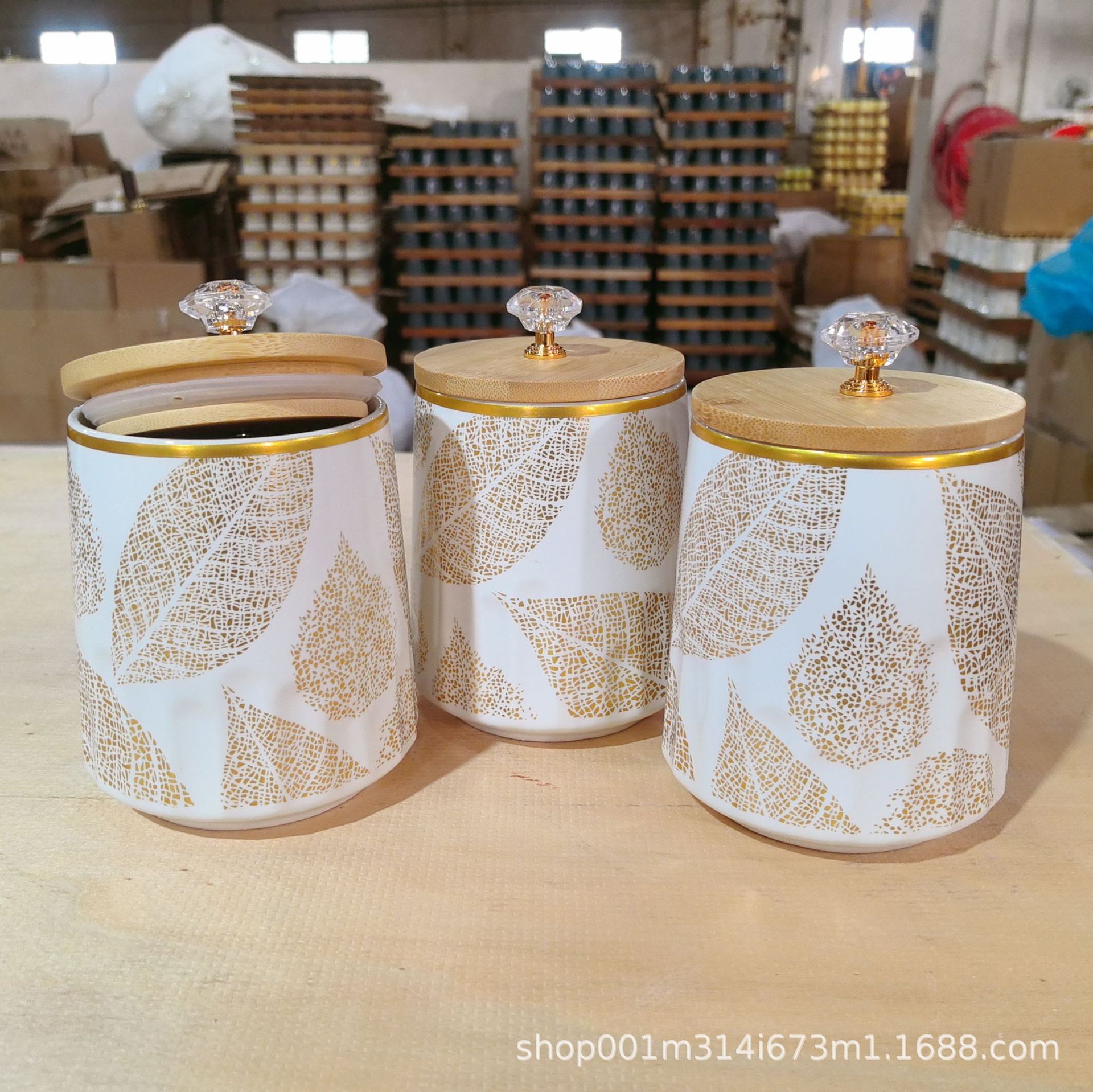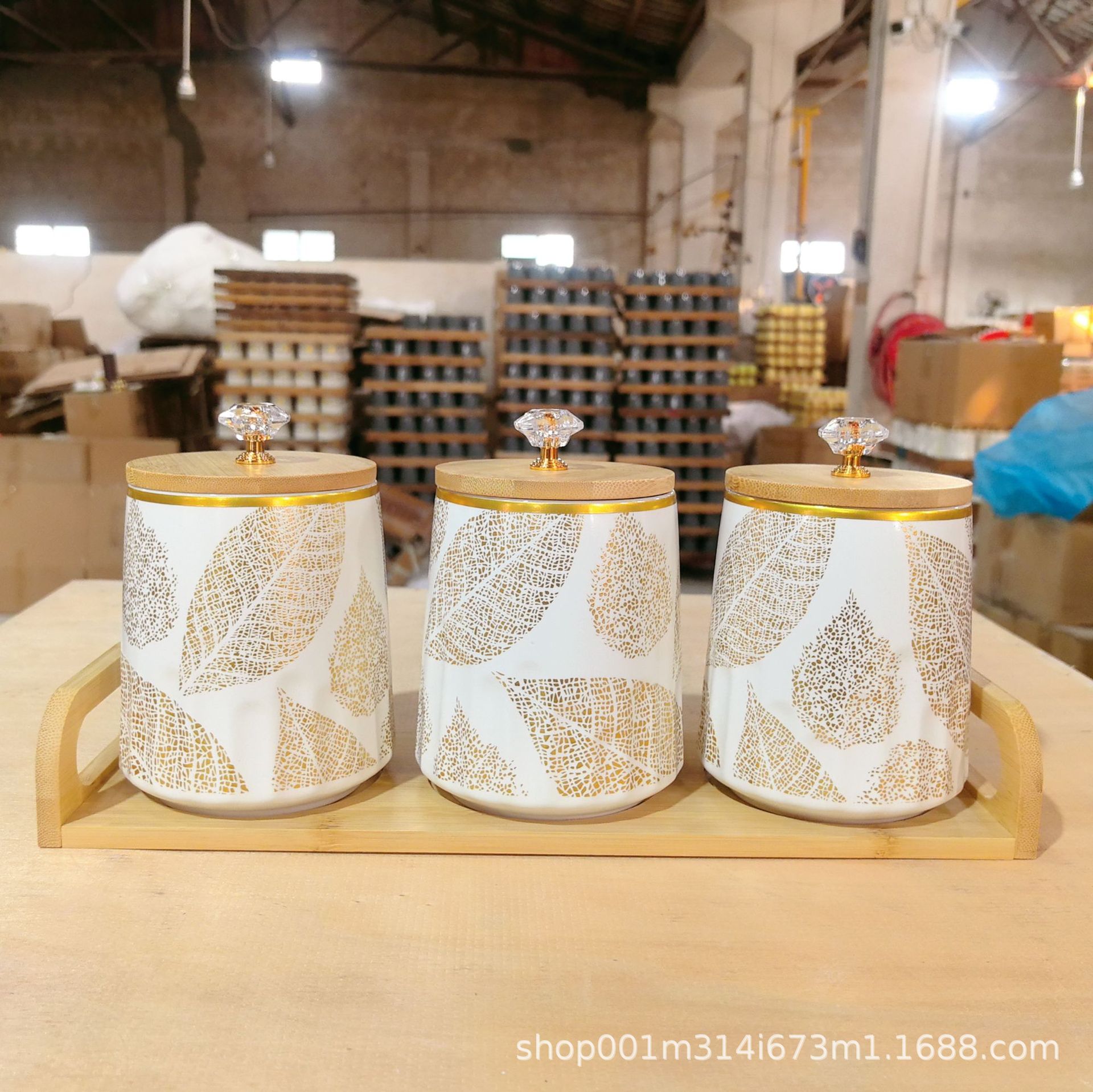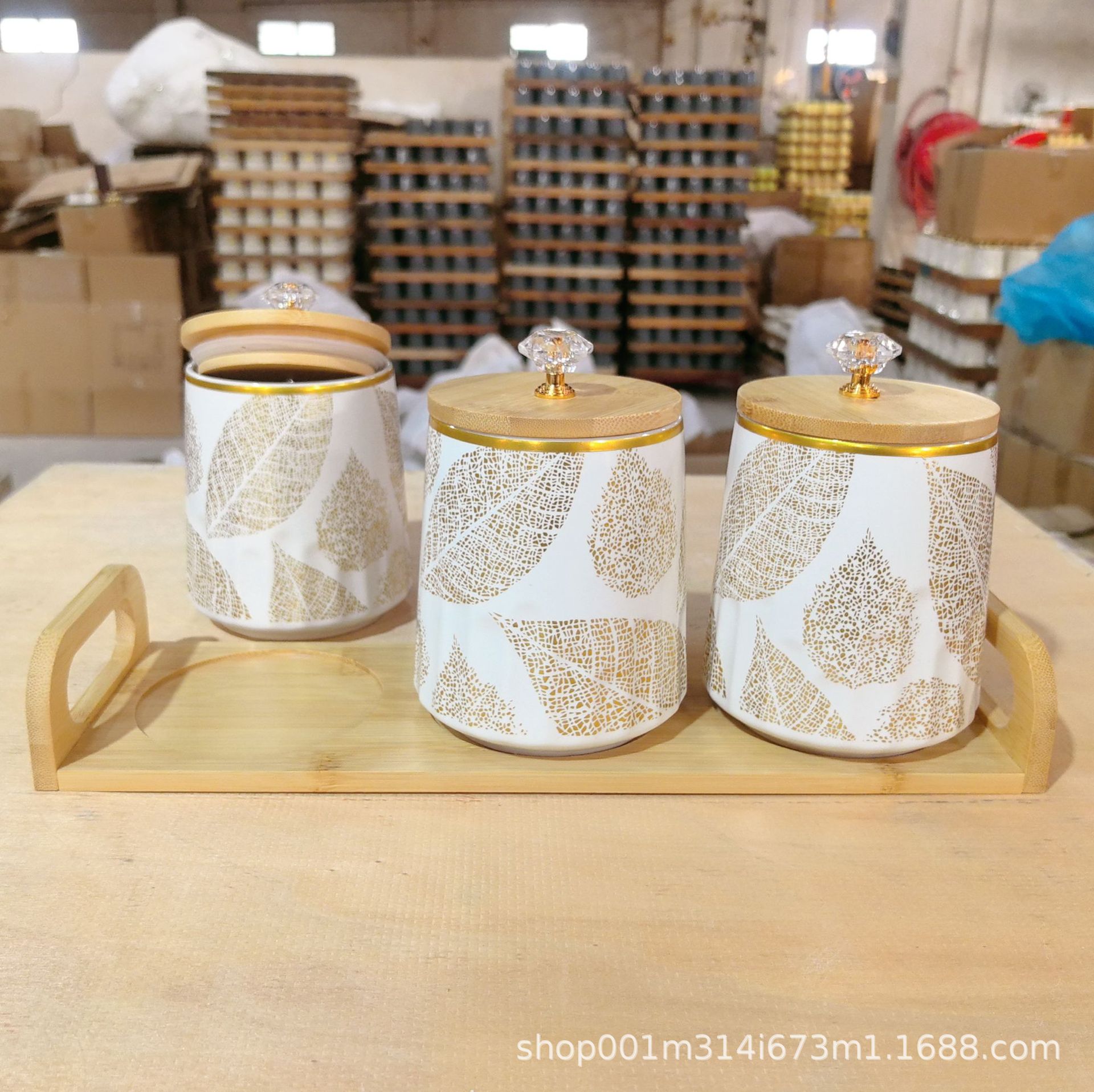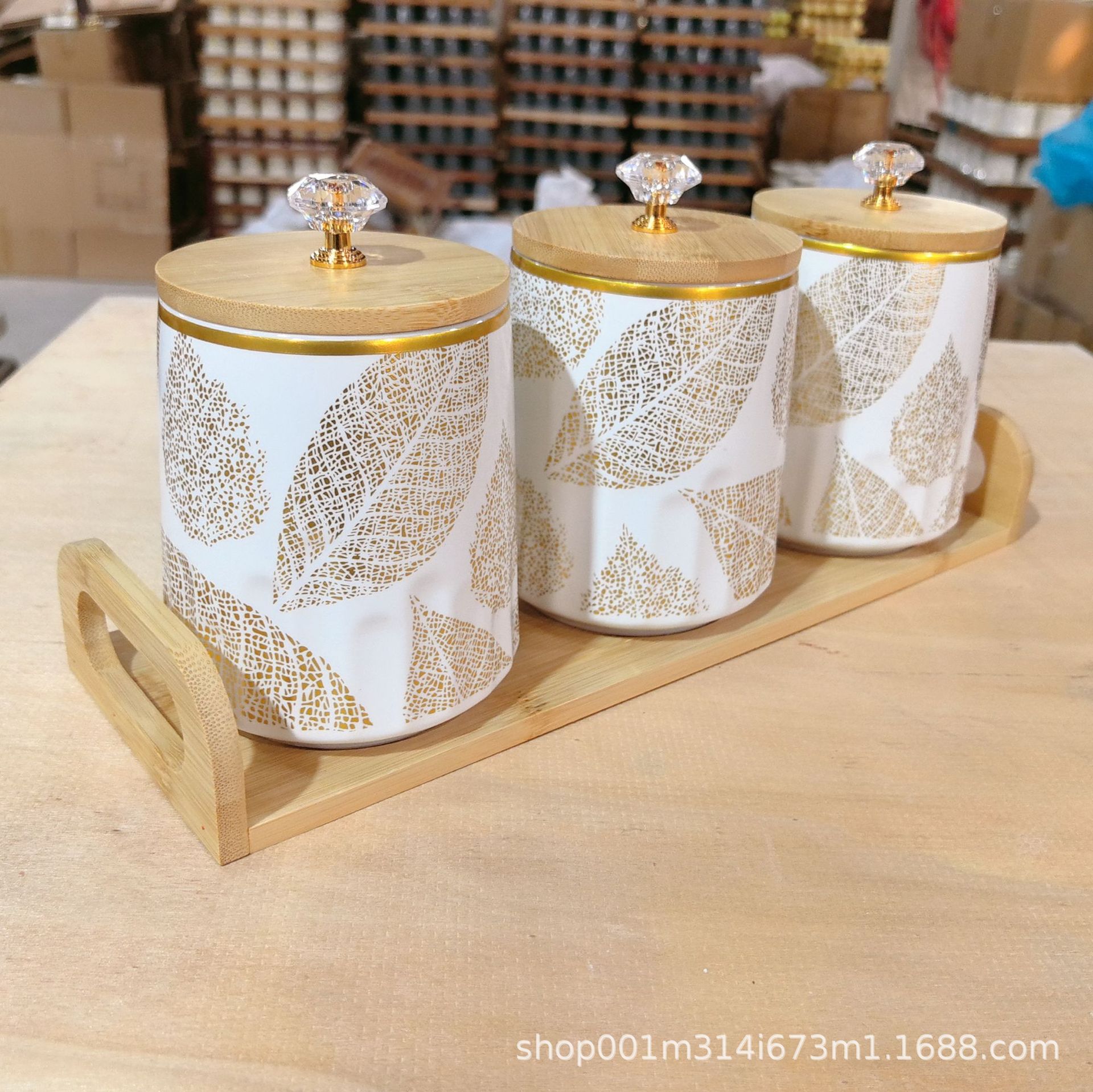 Cocina doméstica de cerámica tanque de almacenamiento de gran capacidad tanque de almacenamiento de granos de café té de dulces set de tres piezas