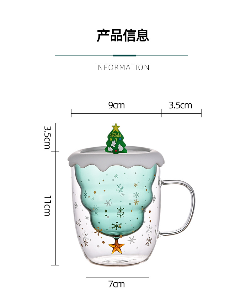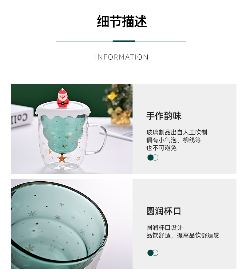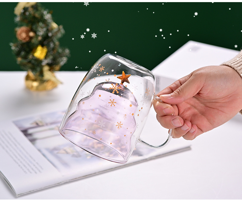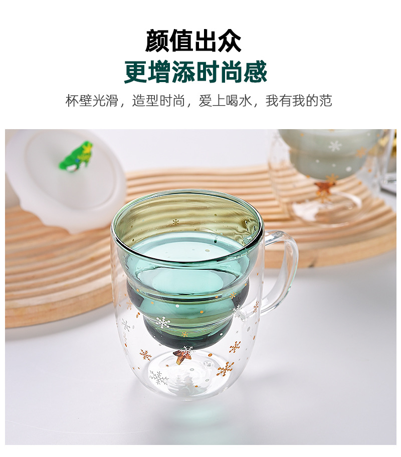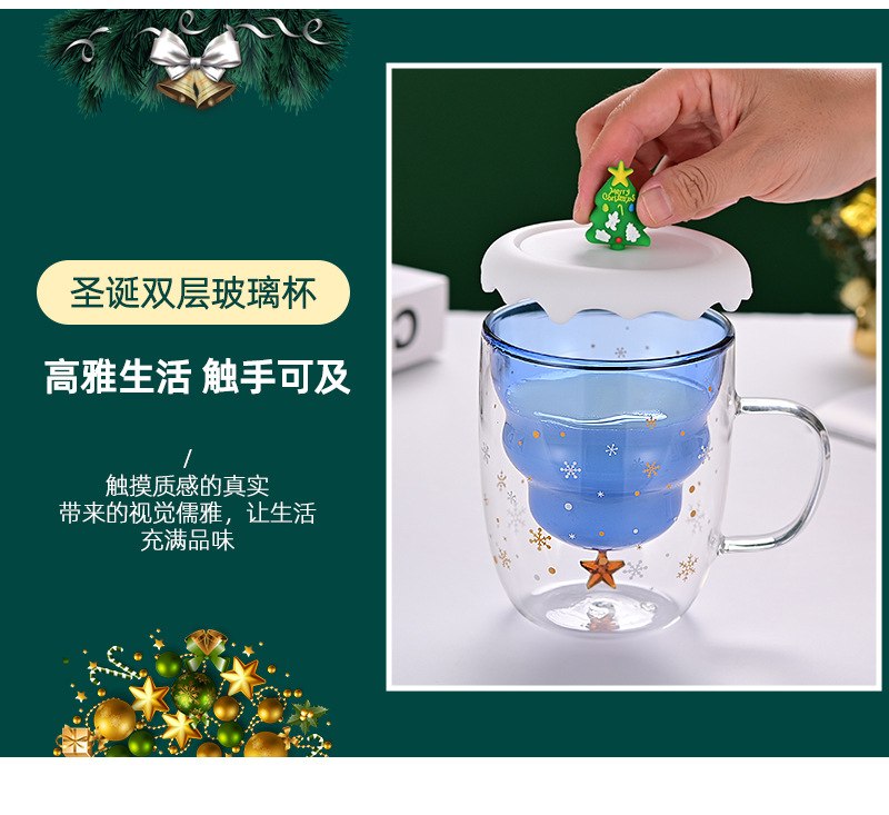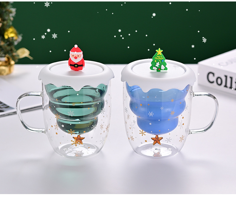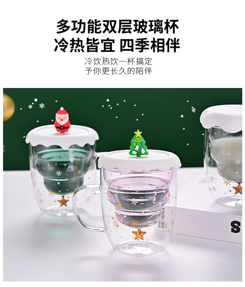 Nueva fábrica de vidrio de Navidad al por mayor de vidrio aislante de doble capa con tapa de vidrio de café rojo neto de alta apariencia