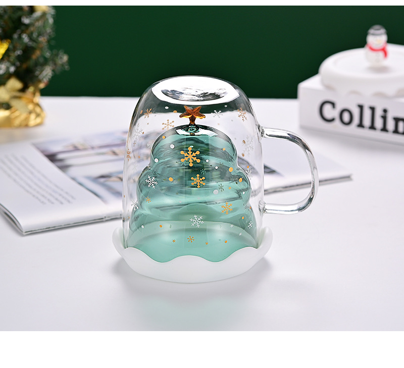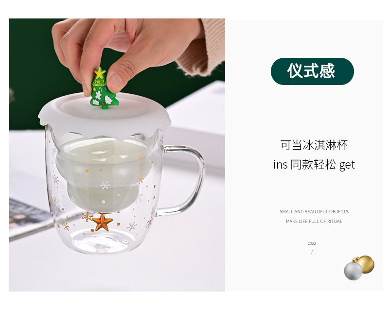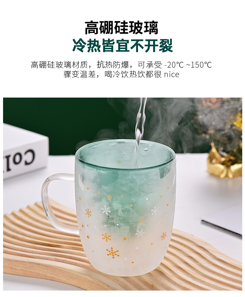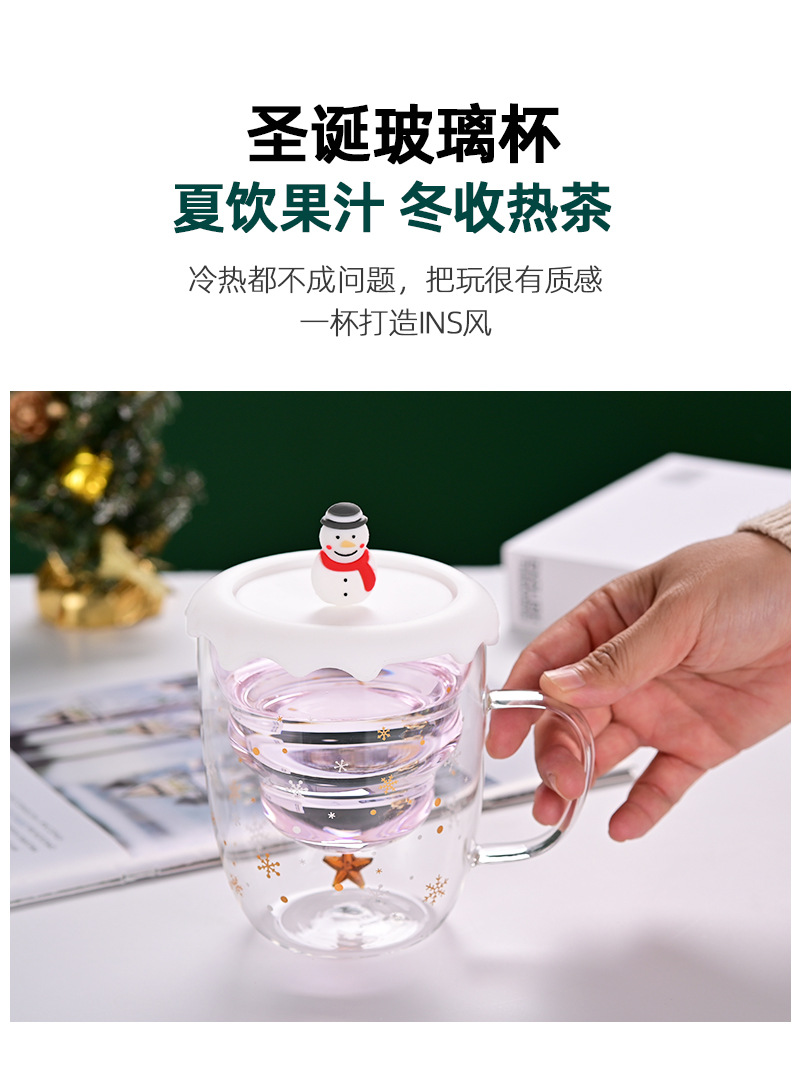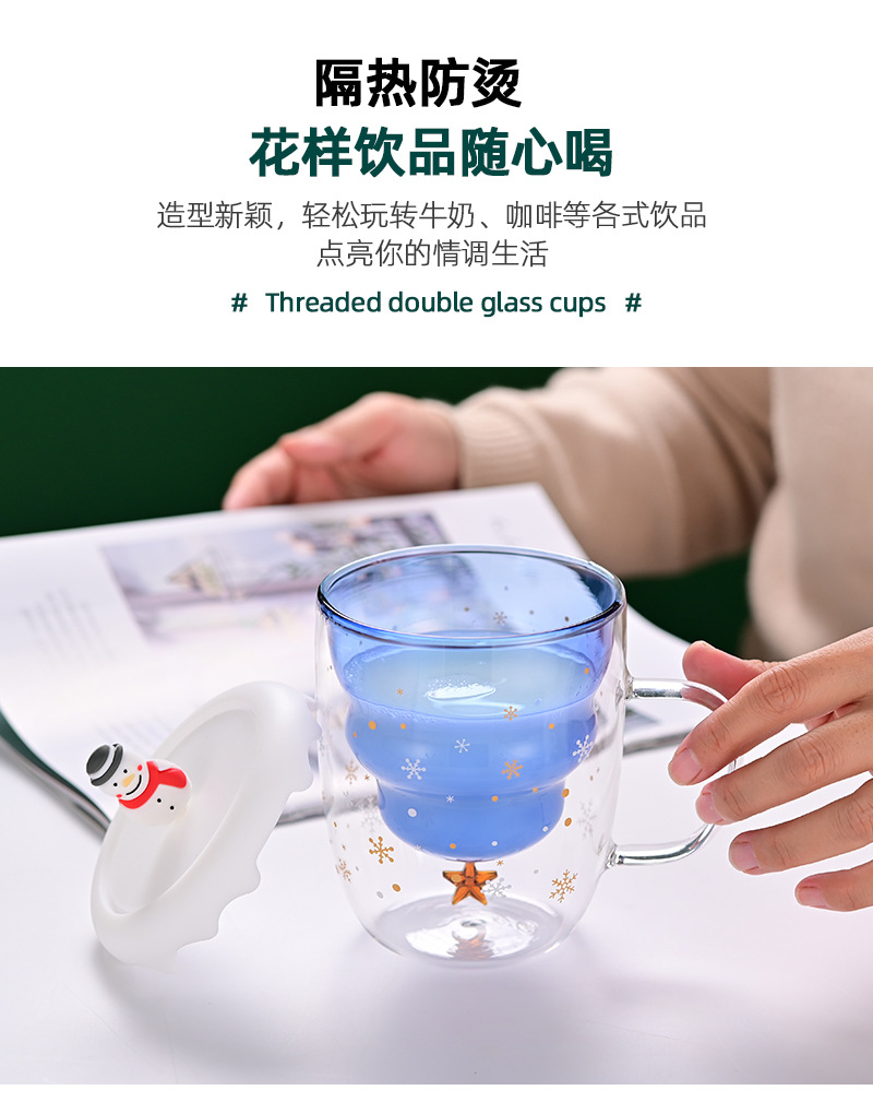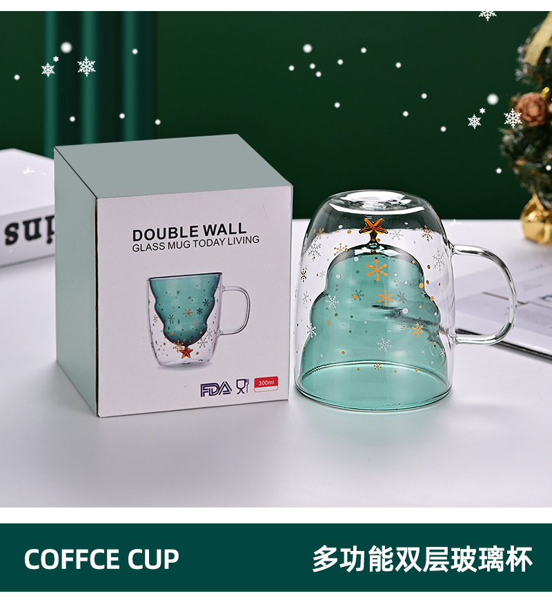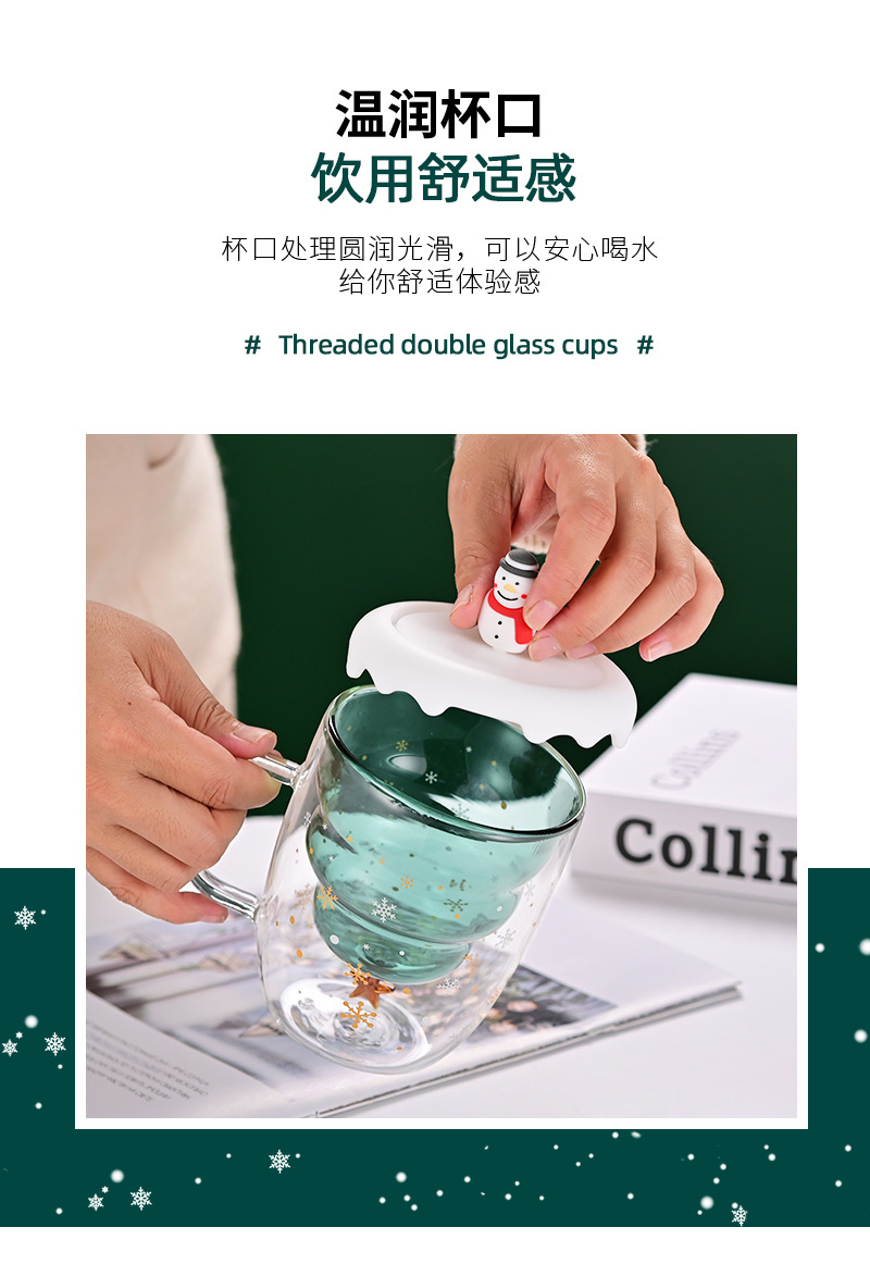 Nueva fábrica de vidrio de Navidad al por mayor de vidrio aislante de doble capa con tapa de vidrio de café rojo neto de alta apariencia