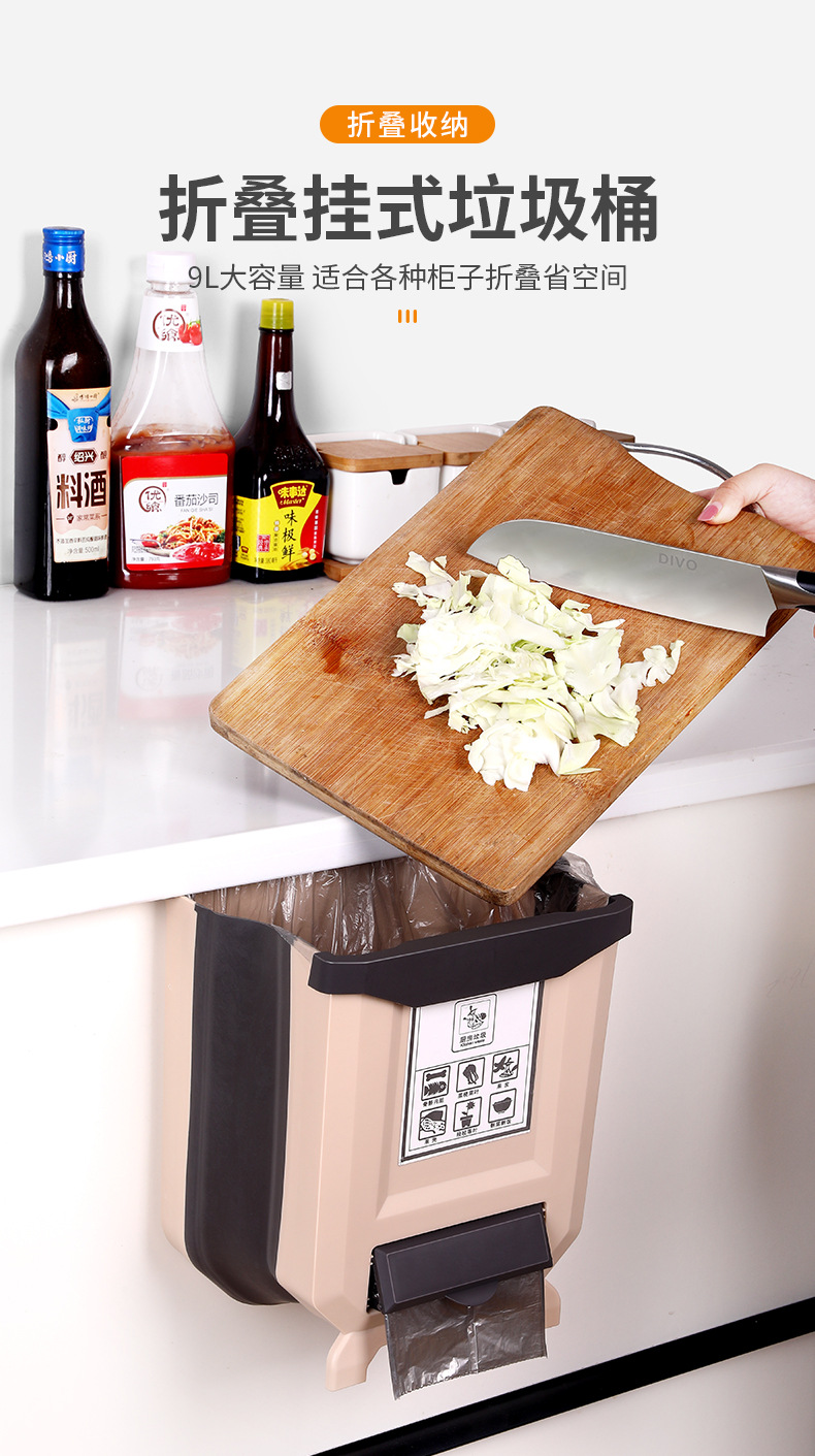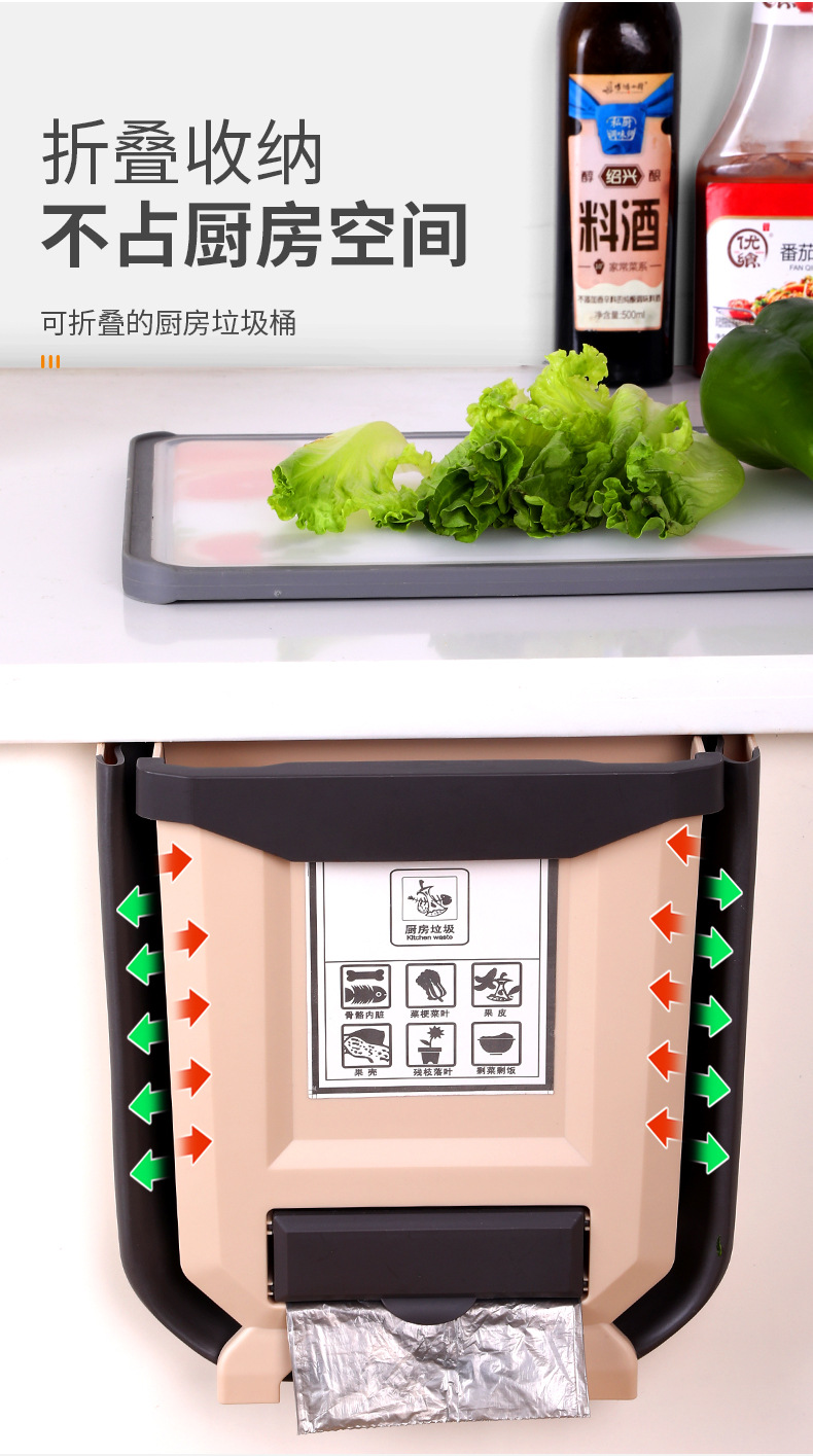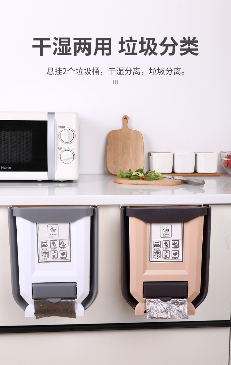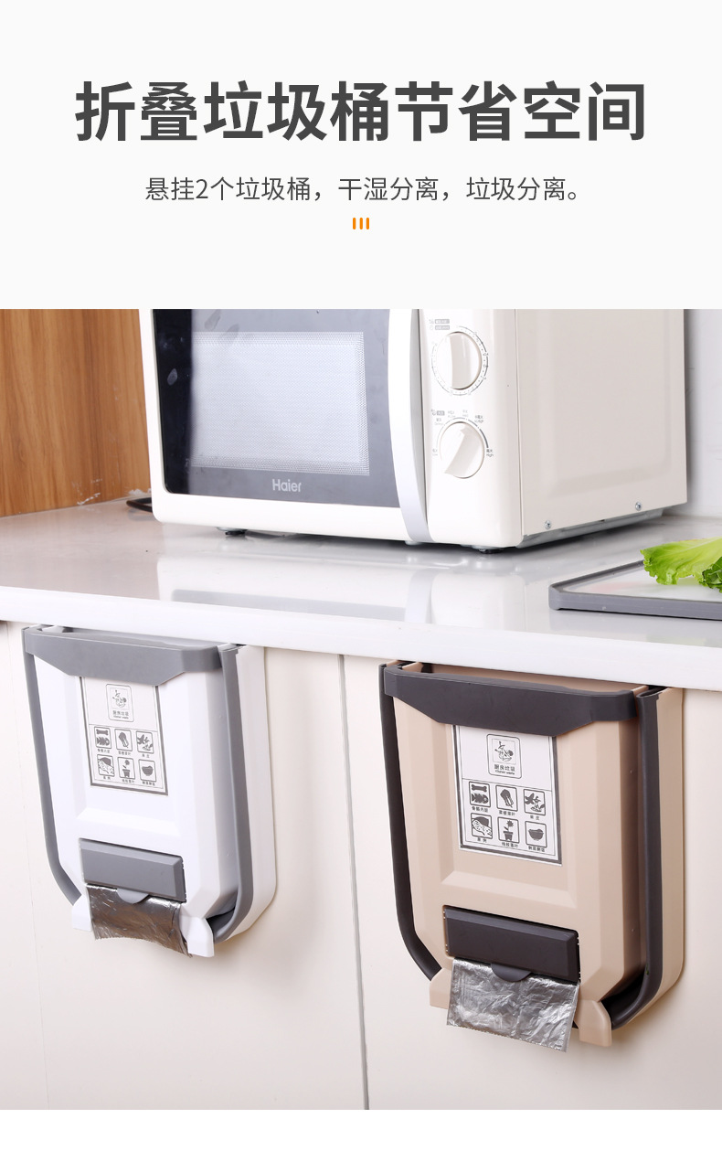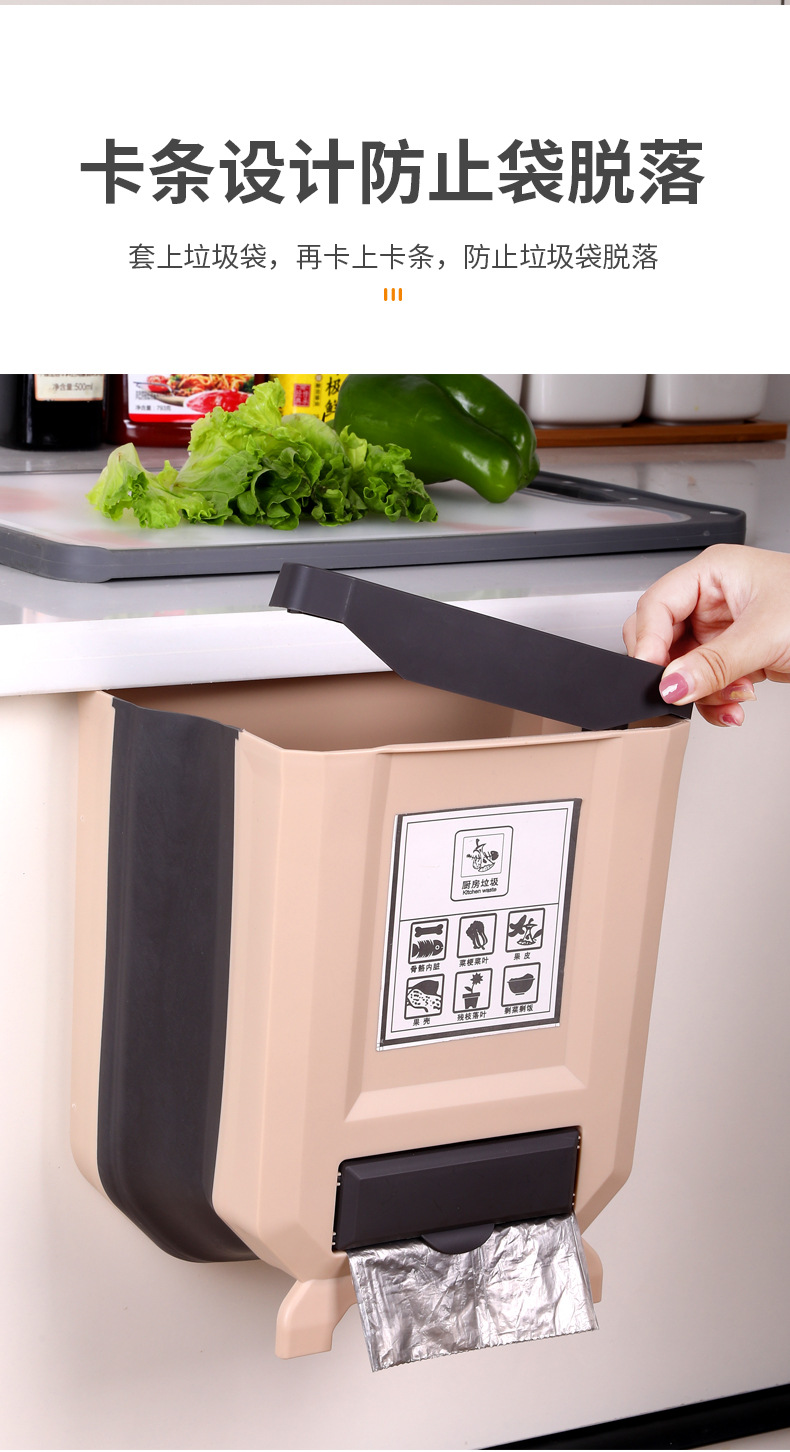 Cocina plegable colgante de pared bote de basura hogar gabinete puerta colgante de almacenamiento de coche cesta de papel clasificación creativa bote de basura