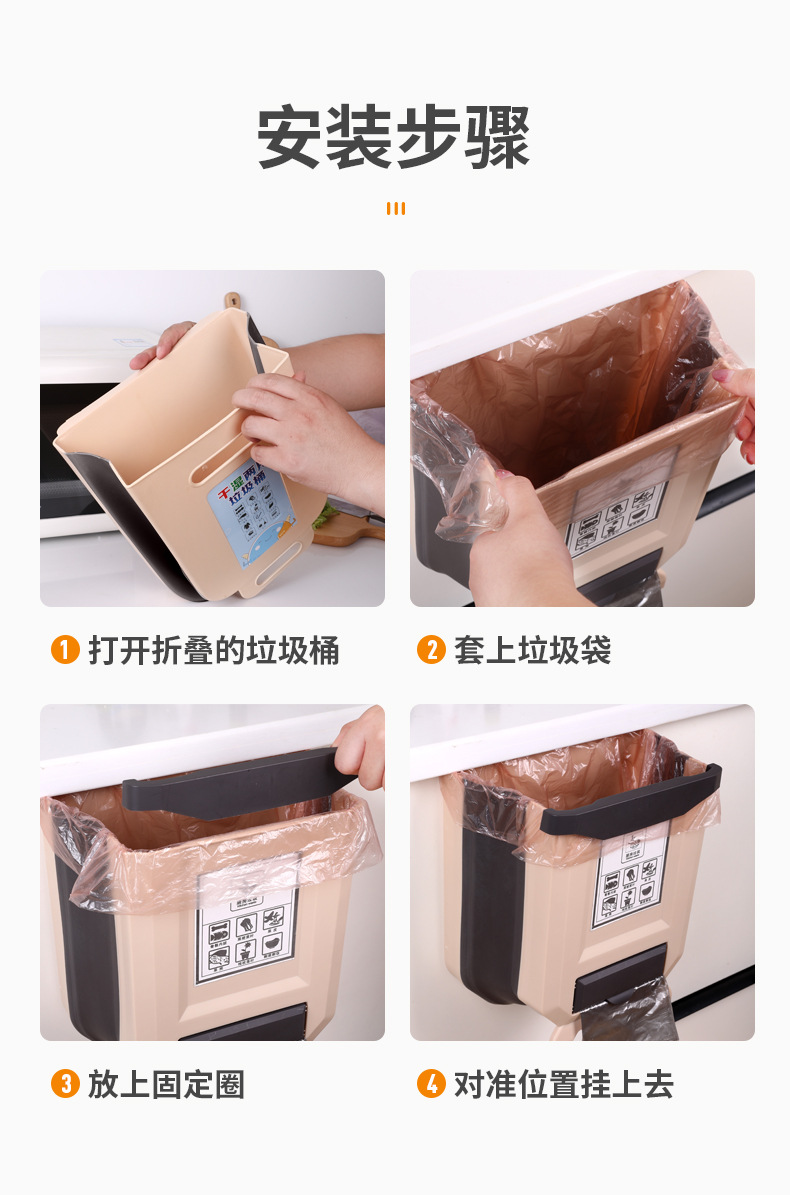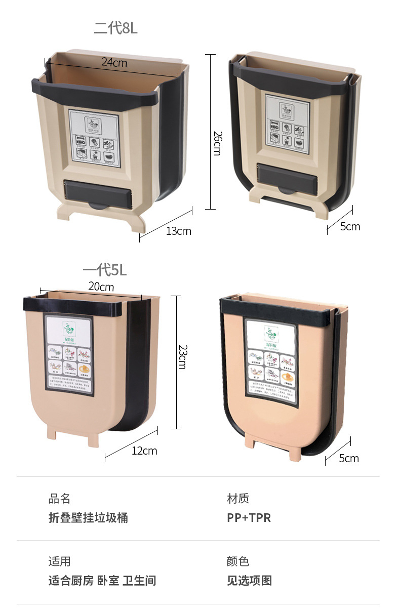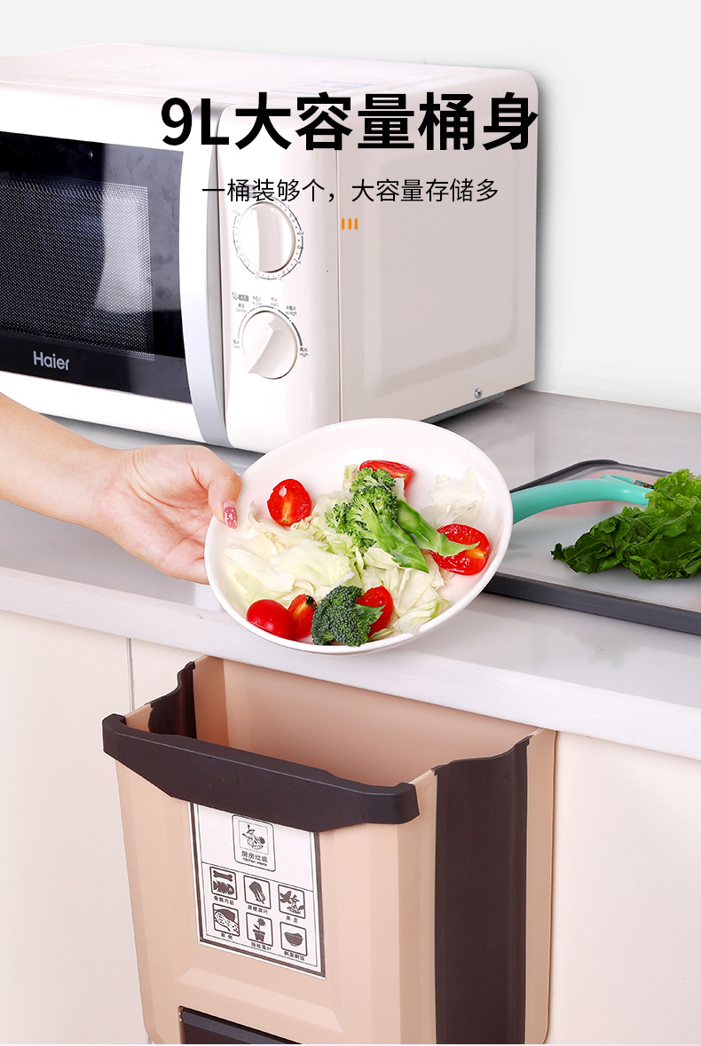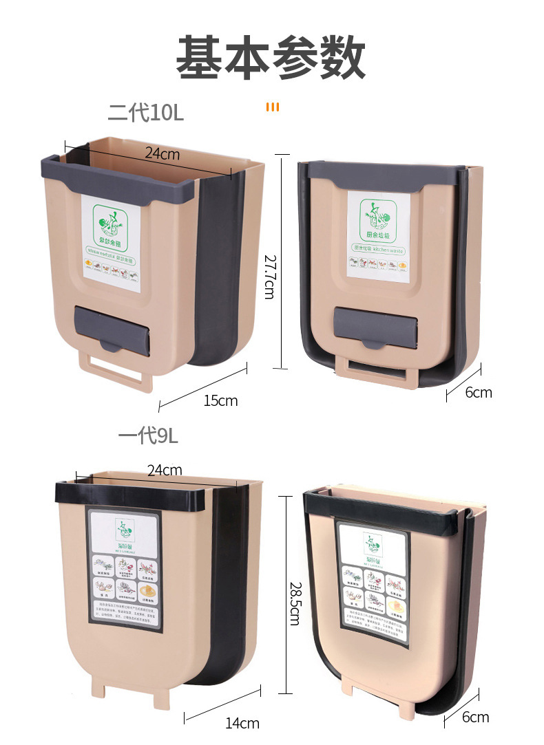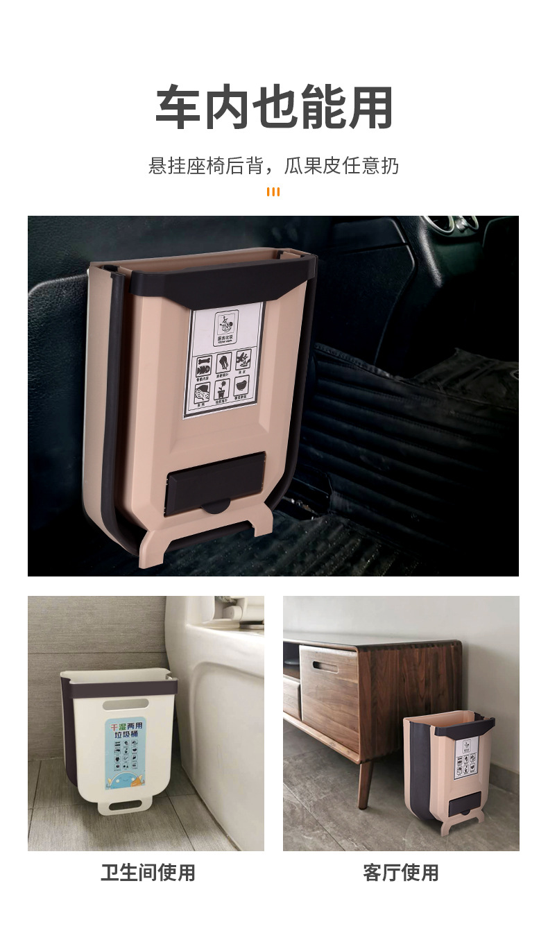 Cocina plegable colgante de pared bote de basura hogar gabinete puerta colgante de almacenamiento de coche cesta de papel clasificación creativa bote de basura