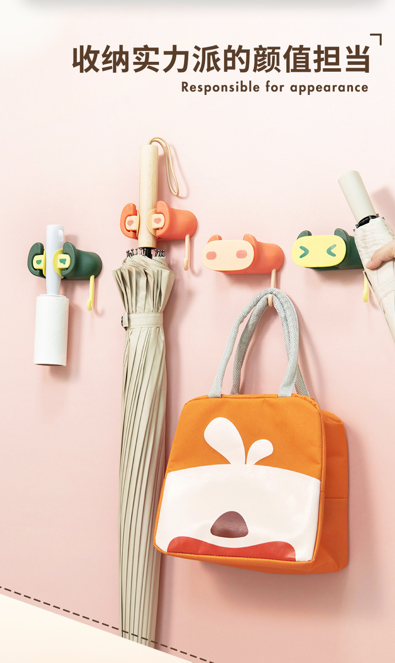 Dibujos animados lindo fregona rack nariz de cerdo fregona clip fregona artefacto fuerte punch-free fregona gancho de dibujos animados