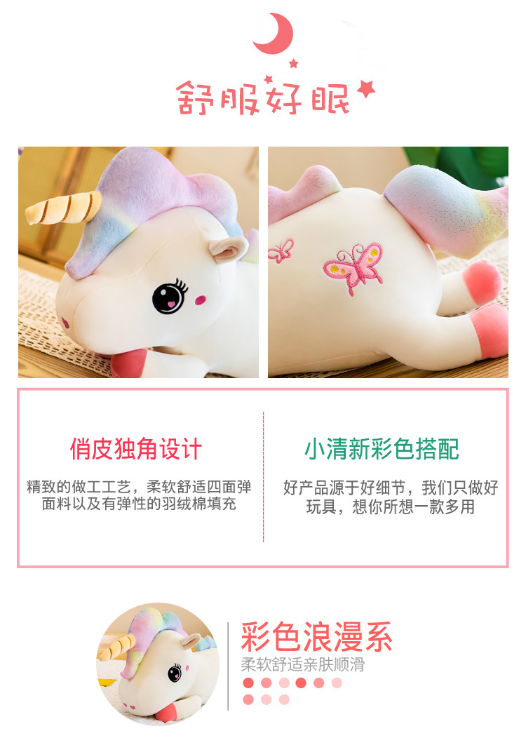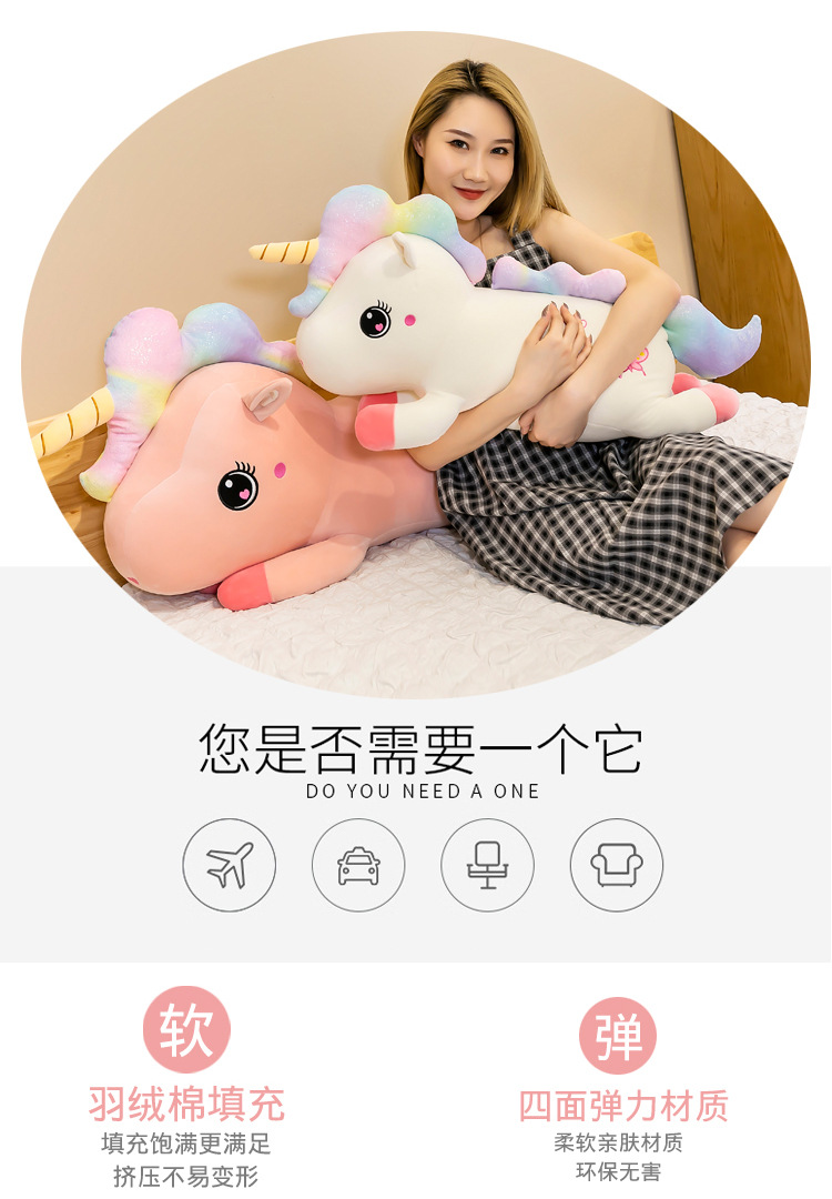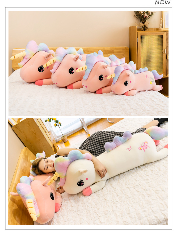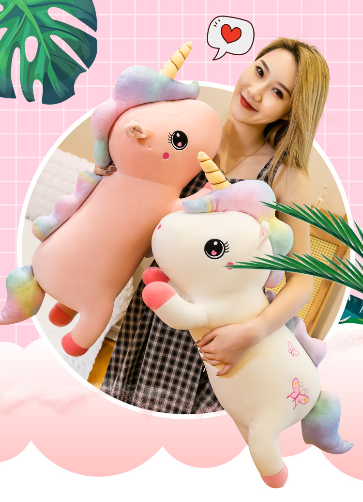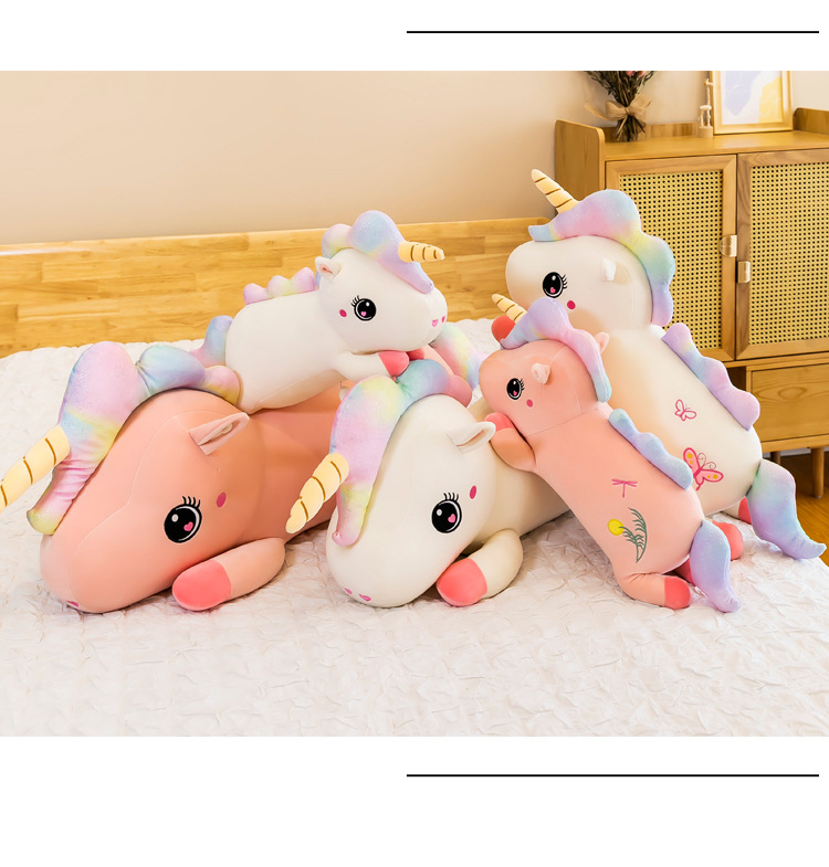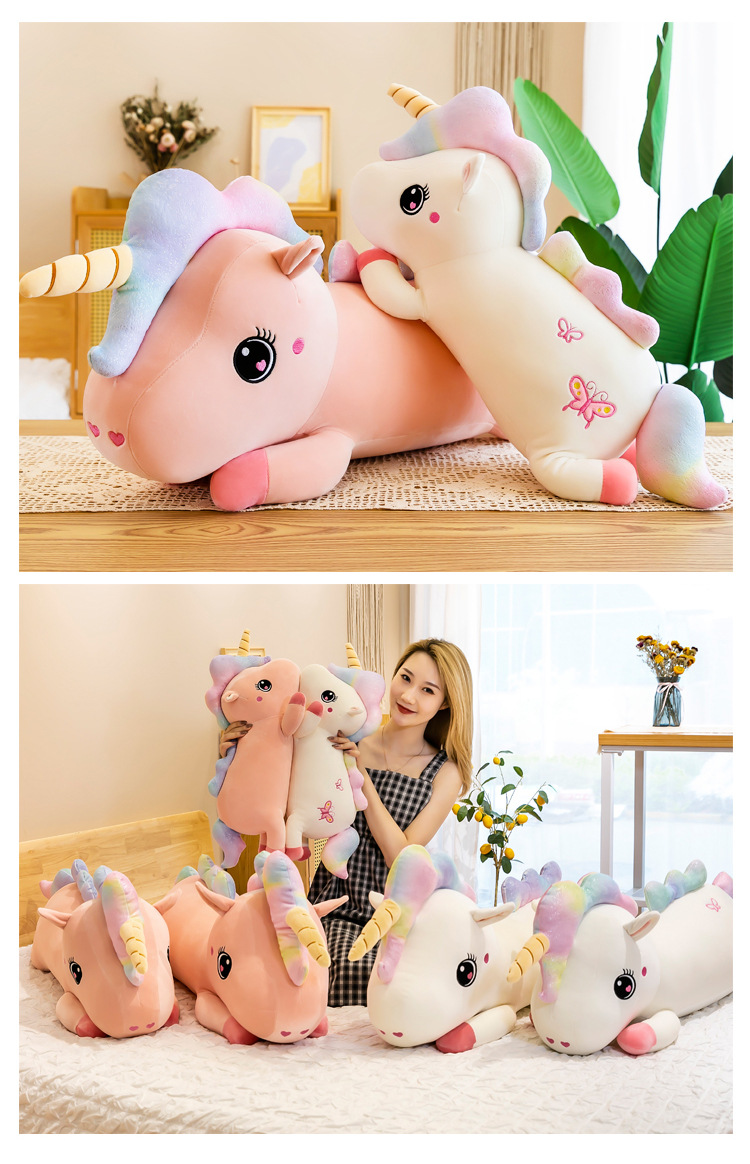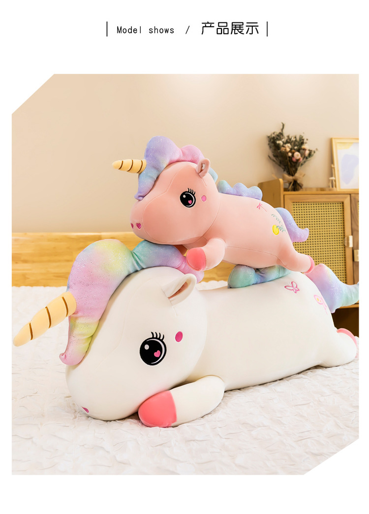 Muñeca de unicornio juguete de peluche de dibujos animados para niñas almohada grande regalo para niños para acompañar el logotipo de procesamiento de muñecas