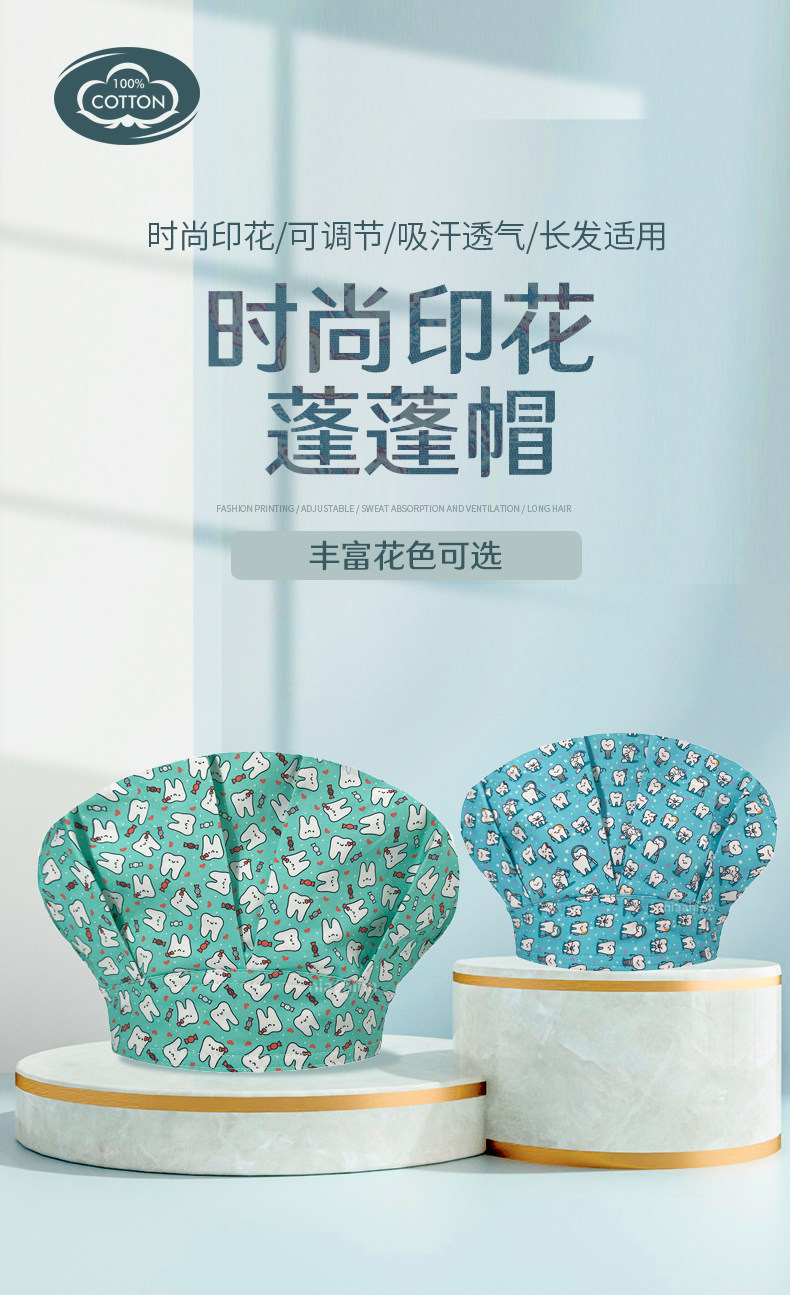 Un gran número de en stock de gama alta de algodón impreso tapa de cirugía oral dental hembra doctor enfermera Pelo Largo cerrado dedo del pie gorra mullida