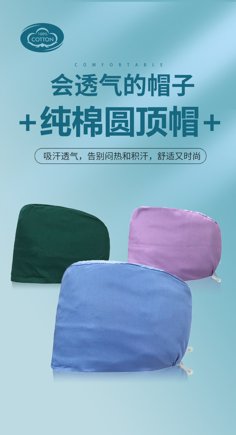Color sólido casquillo de la enfermera bordado impreso puro algodón casquillo de la enfermera médica verde oscuro Estomatólogo cirugía TAPA DE TRABAJO