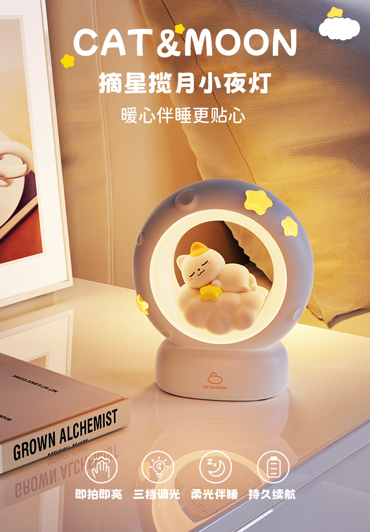 Lámpara de ambiente creativa, regalo para cumpleaños de chicas, con diseño de estrella y luna - Mayorista