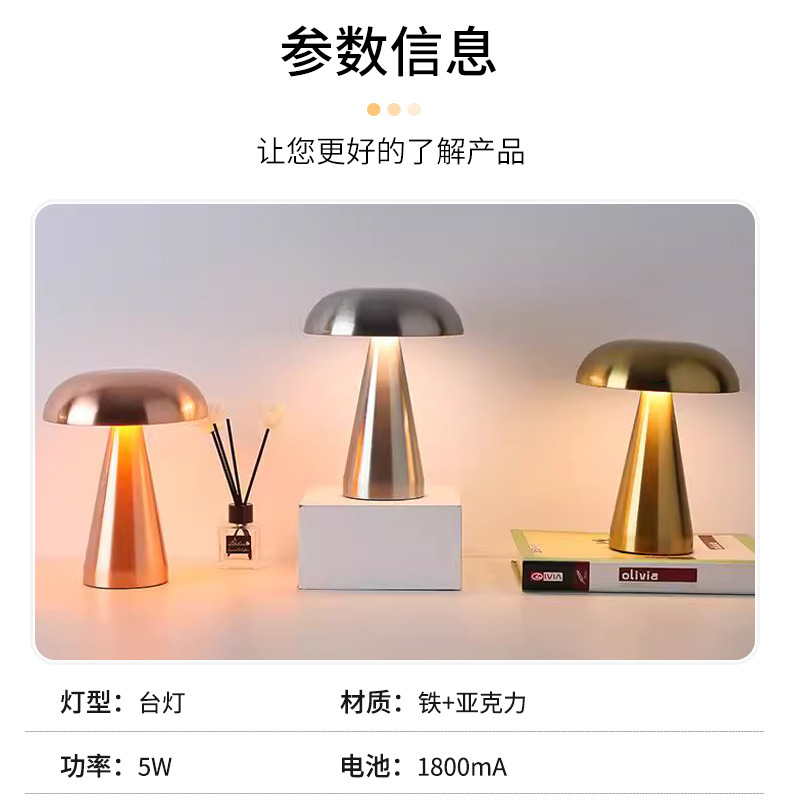 Coco transfronterizo lámpara de hongo bar lujo ligero hotel café mesa de comedor al aire libre dormitorio cabecera lámpara de mesa de metal creativa