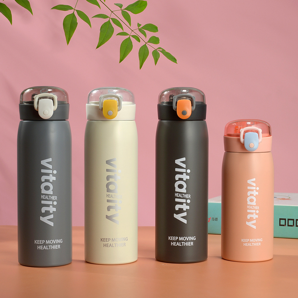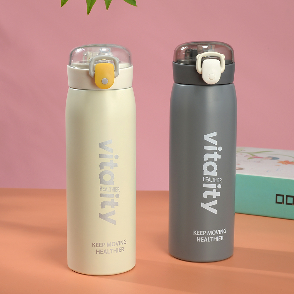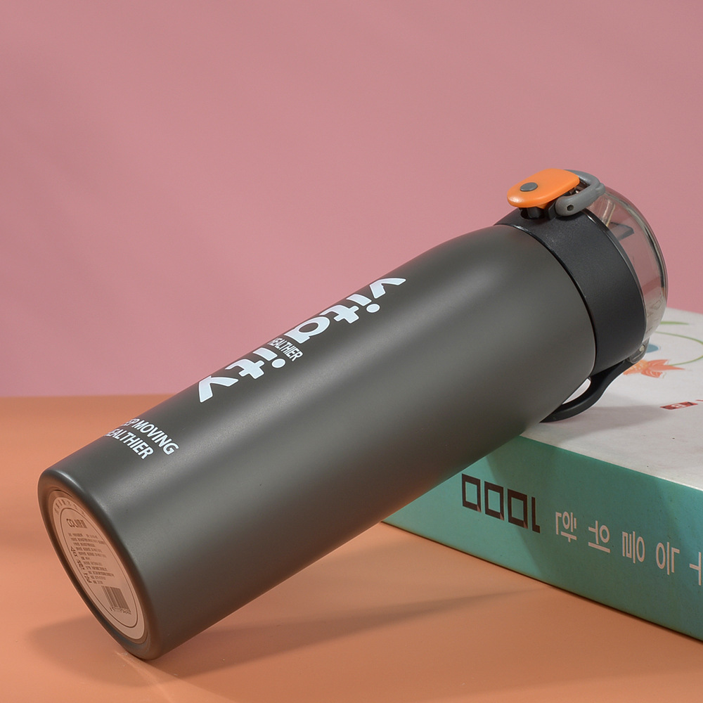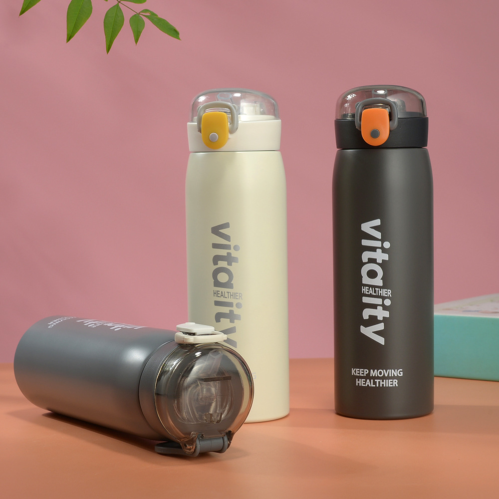 Fuquan Creative Taza de agua de ocio simple de gran capacidad Taza termo con tapa elástica para hombres y mujeres Taza de regalo de acero inoxidable 304