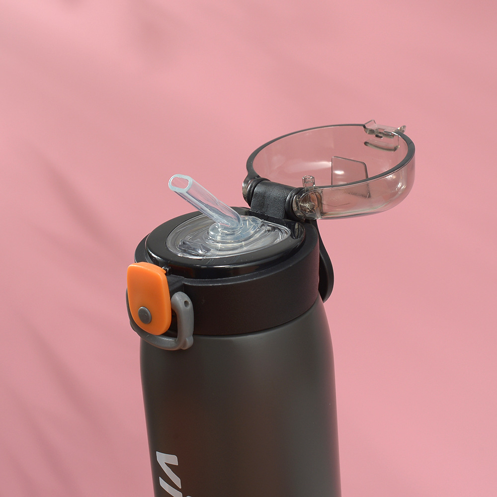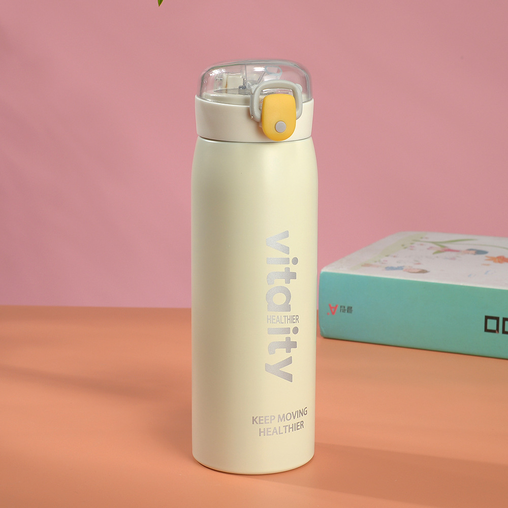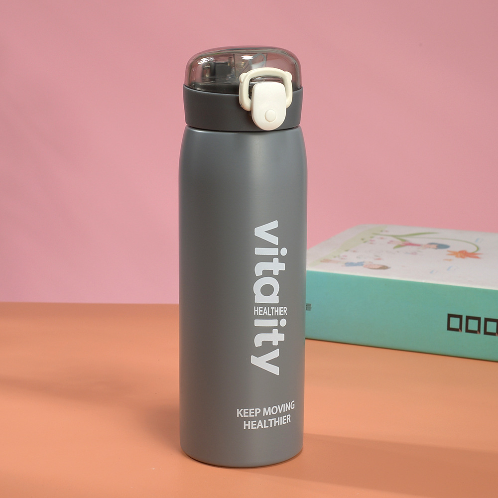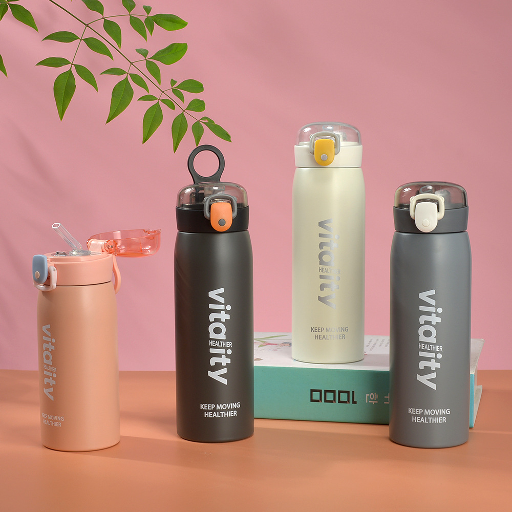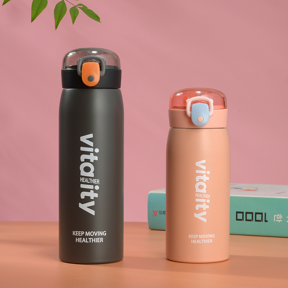Fuquan Creative Taza de agua de ocio simple de gran capacidad Taza termo con tapa elástica para hombres y mujeres Taza de regalo de acero inoxidable 304