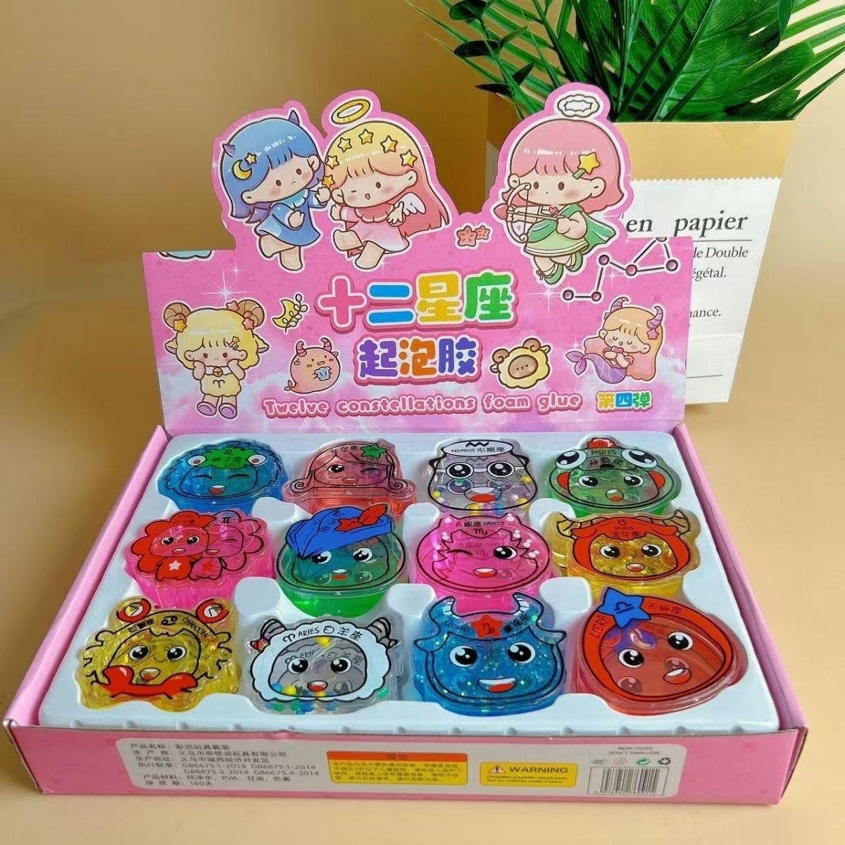 Doce constelaciones de goma espumante 24 en alta permeabilidad M pegamento flash añadido pegamento espumante cristal barro amor al por mayor slime