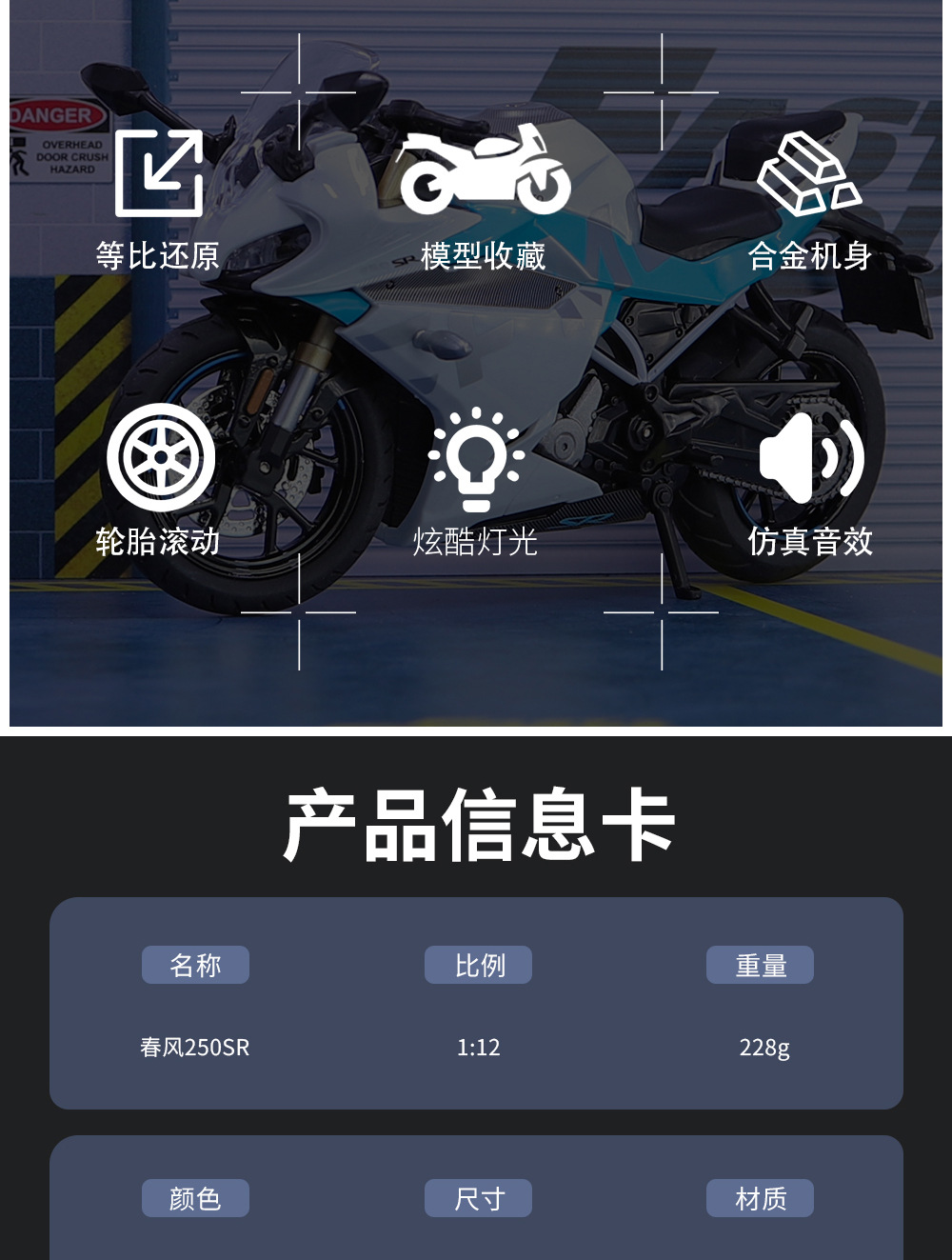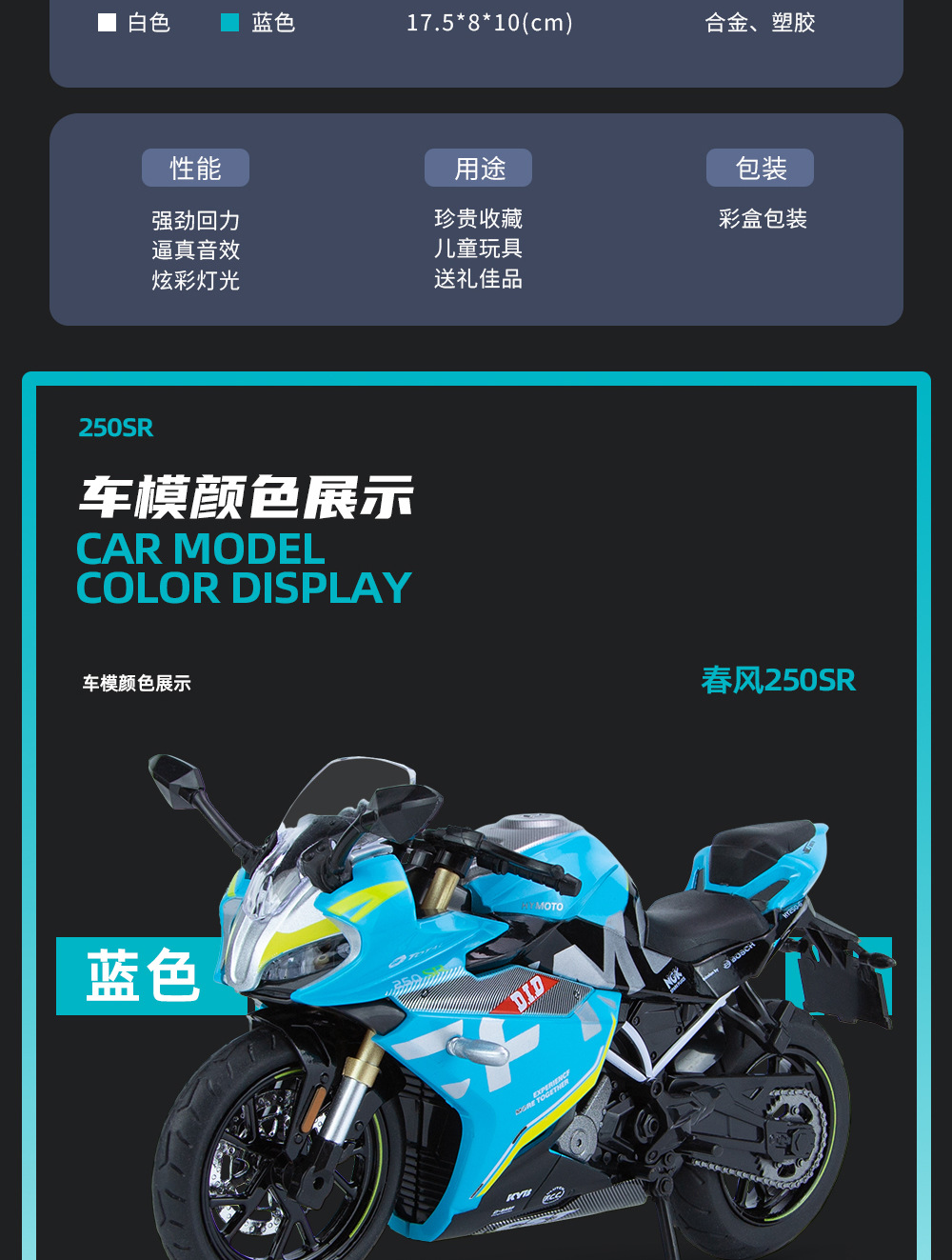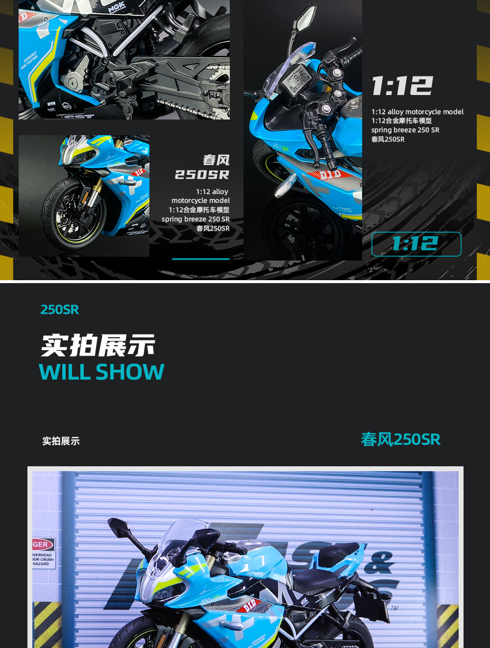 Caja a granel Hua Yi1: 12 primavera 250SR simulación modelo de motocicleta de aleación de juguetes para niños adornos de colección