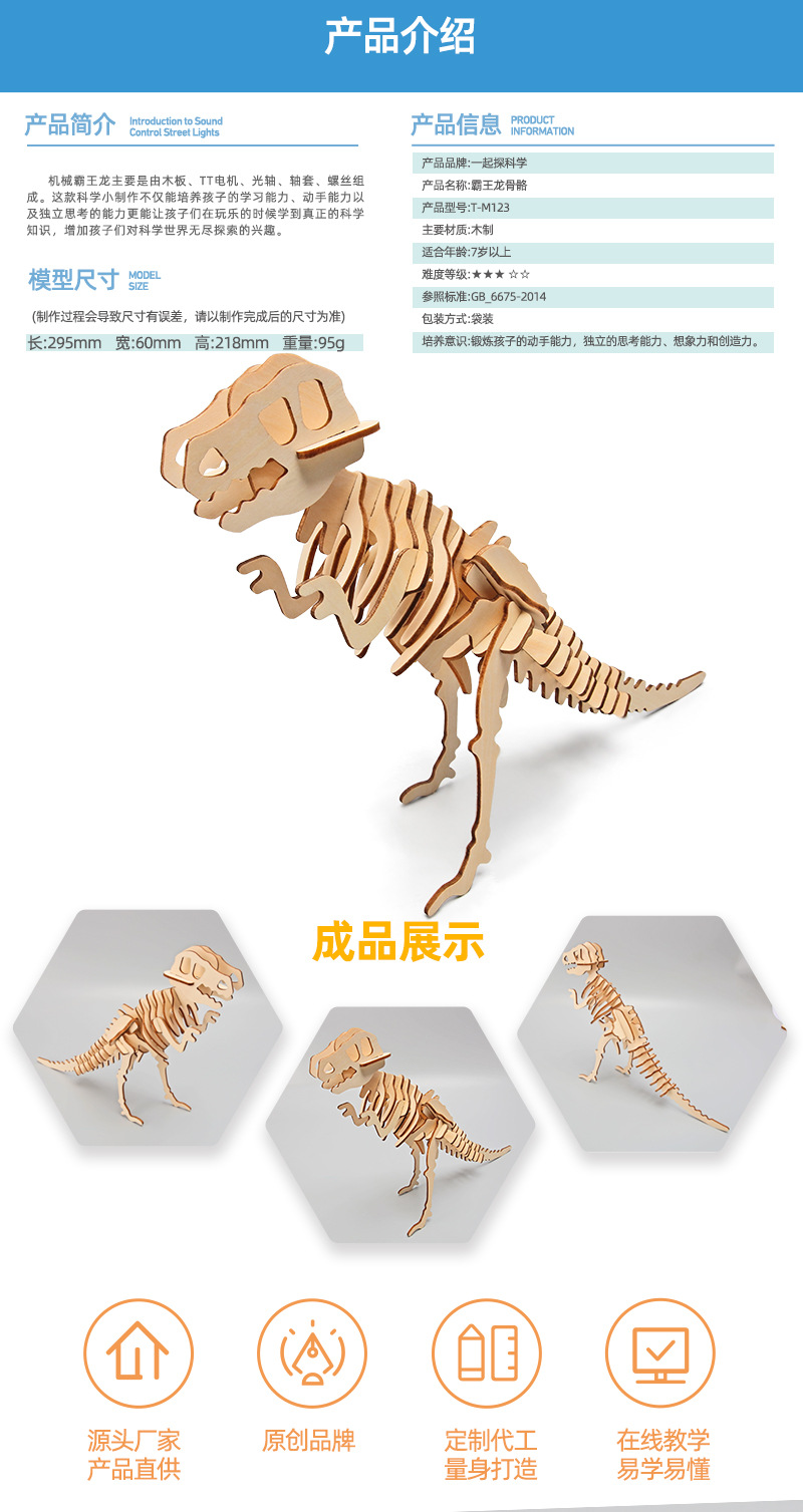 Productos de madera rompecabezas tridimensional dinosaurio Tyrannosaurus corte por láser experimento divertido para niños material de juguete al por mayor