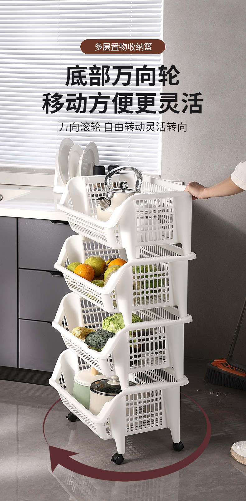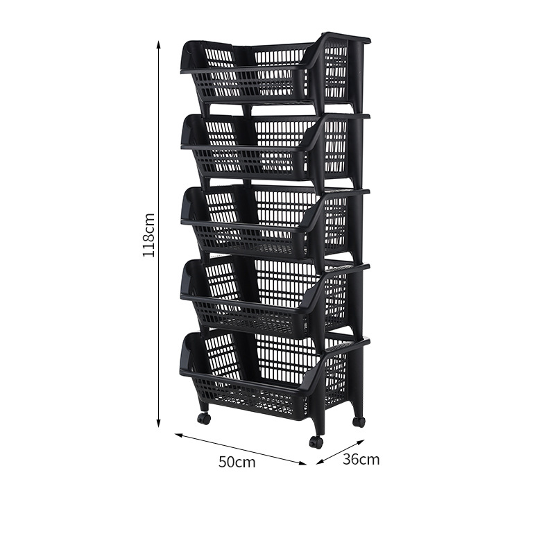 Estante de almacenamiento de cocina oblicuo de múltiples capas piso canasta de almacenamiento de frutas y verduras carro móvil para el hogar canasta de almacenamiento apilable
