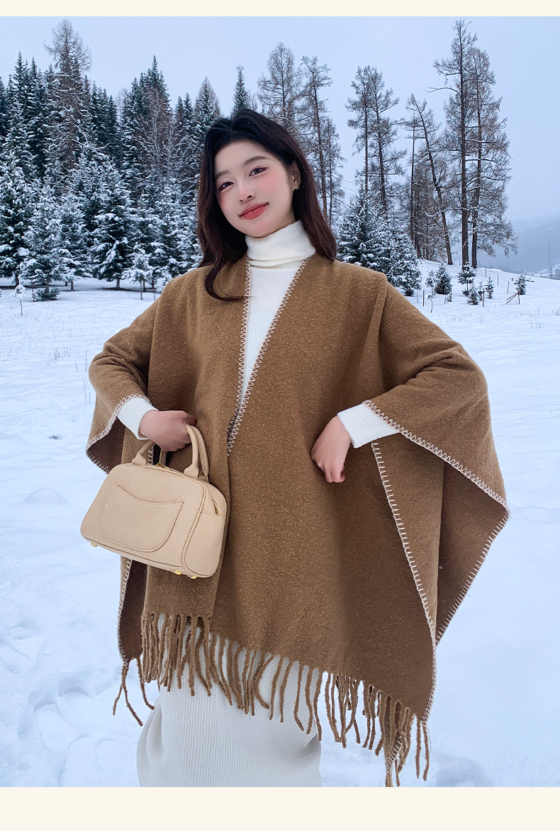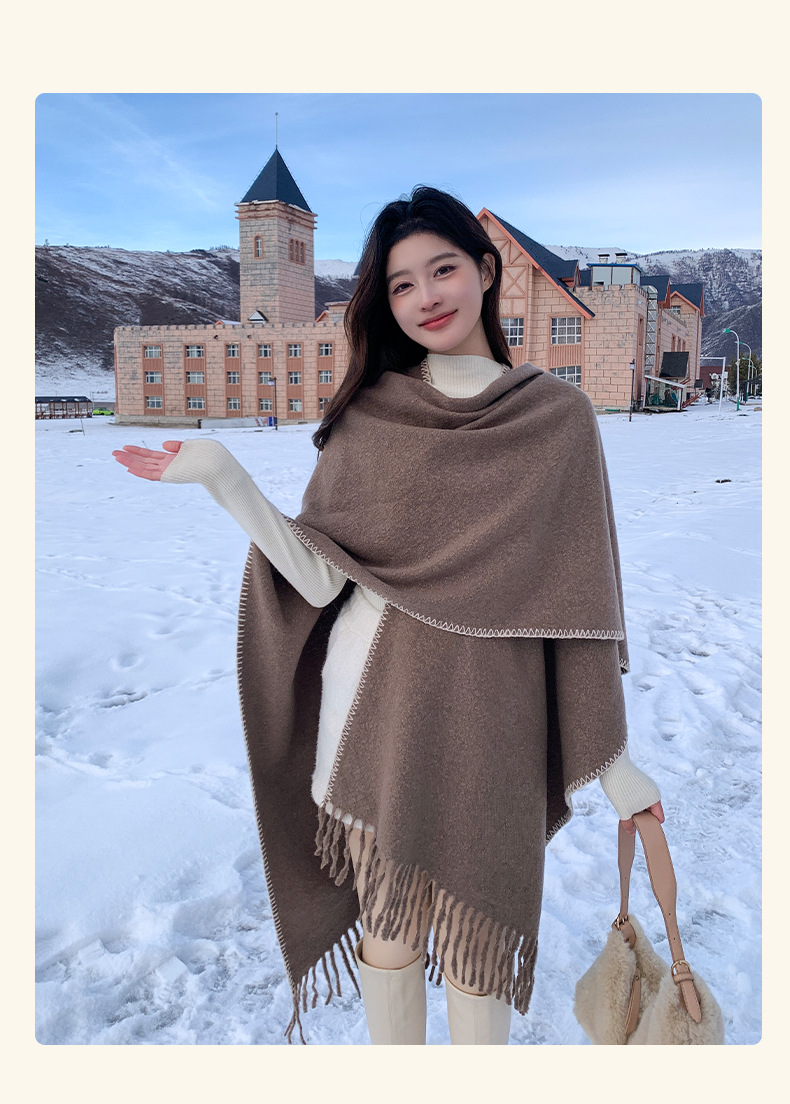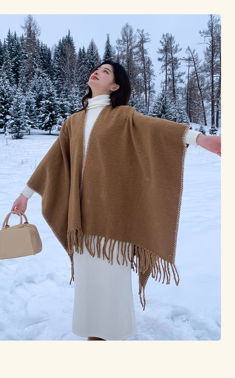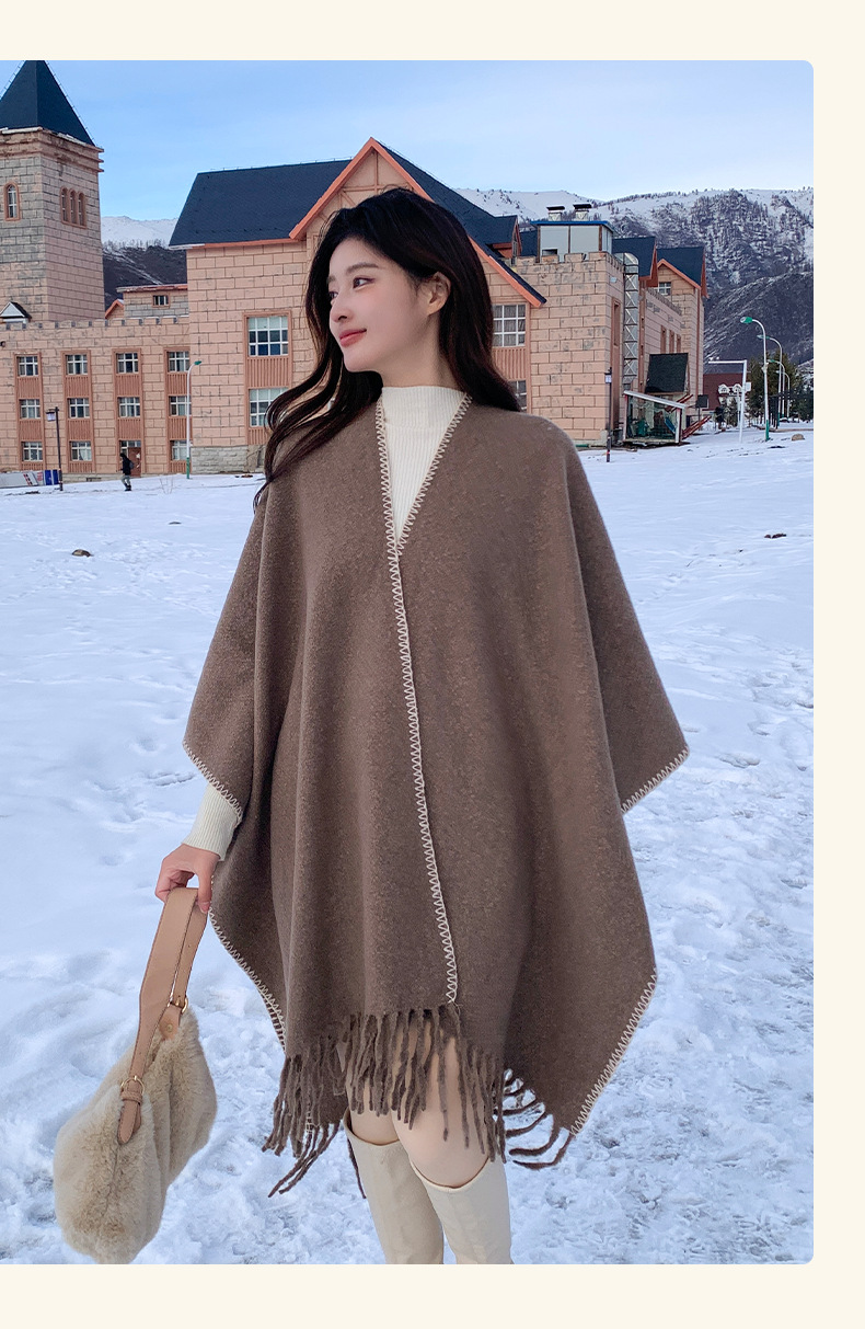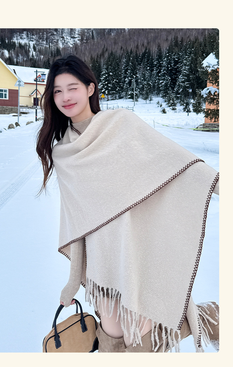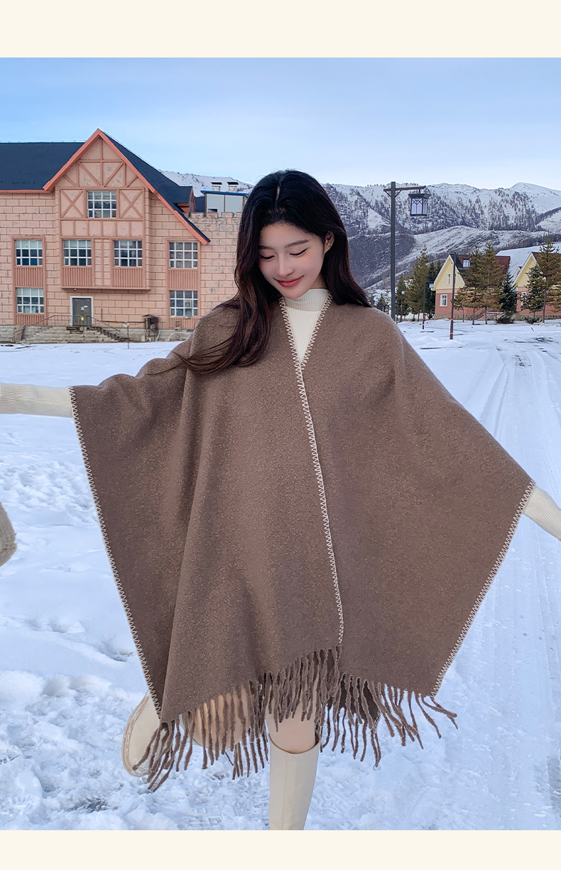 Capa para mujer de otoño/invierno, color sólido, bufanda cálida integrada, capa gruesa de viaje