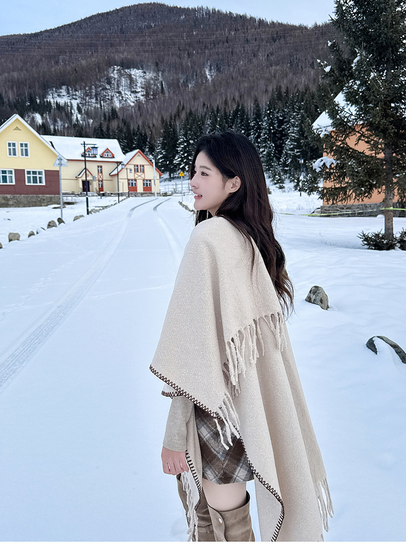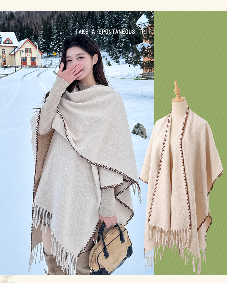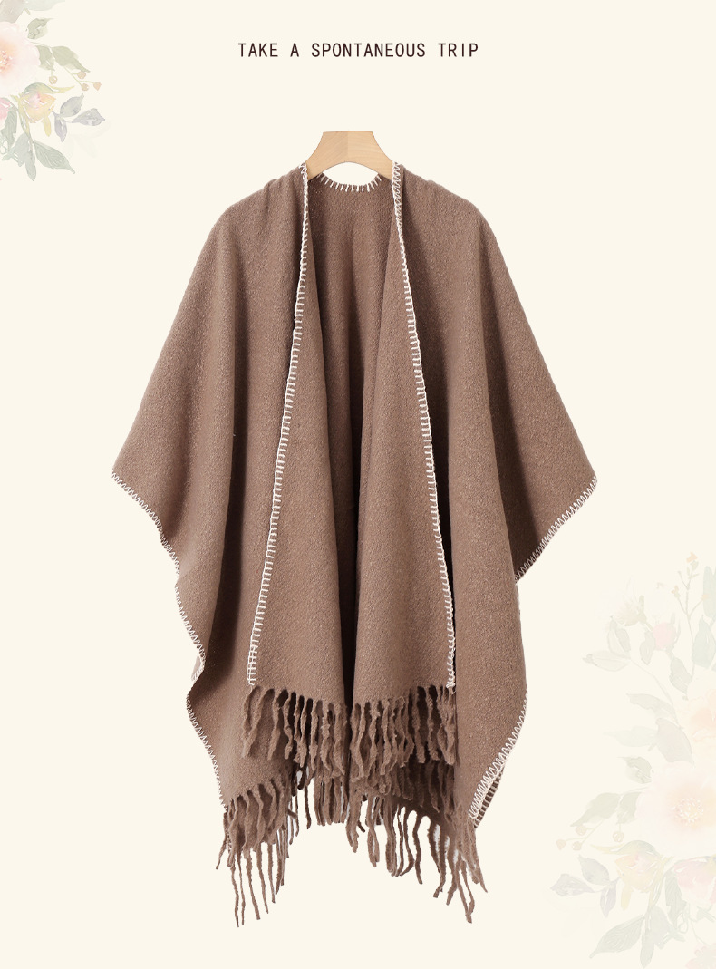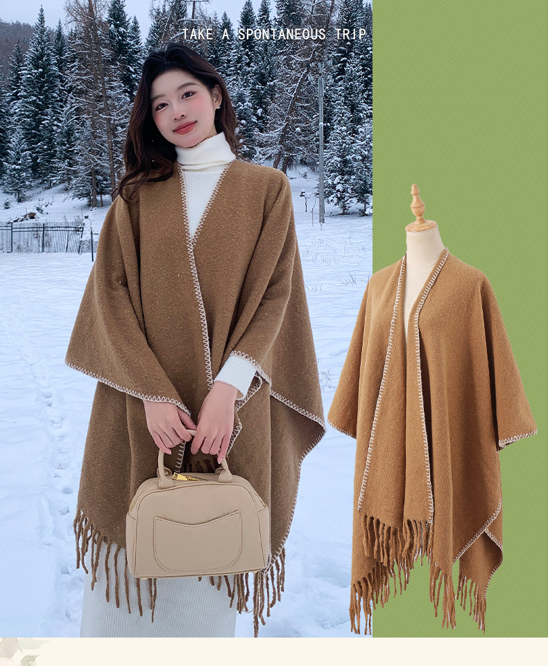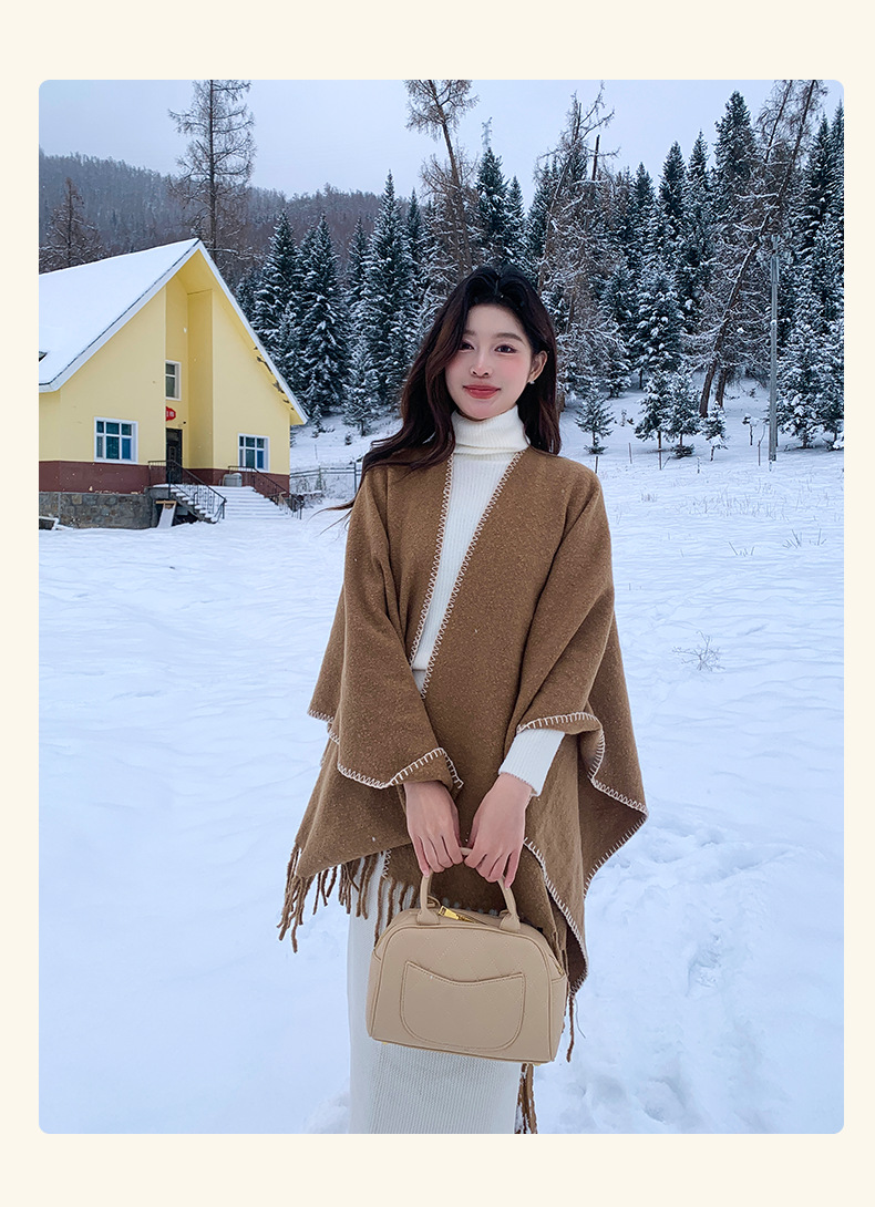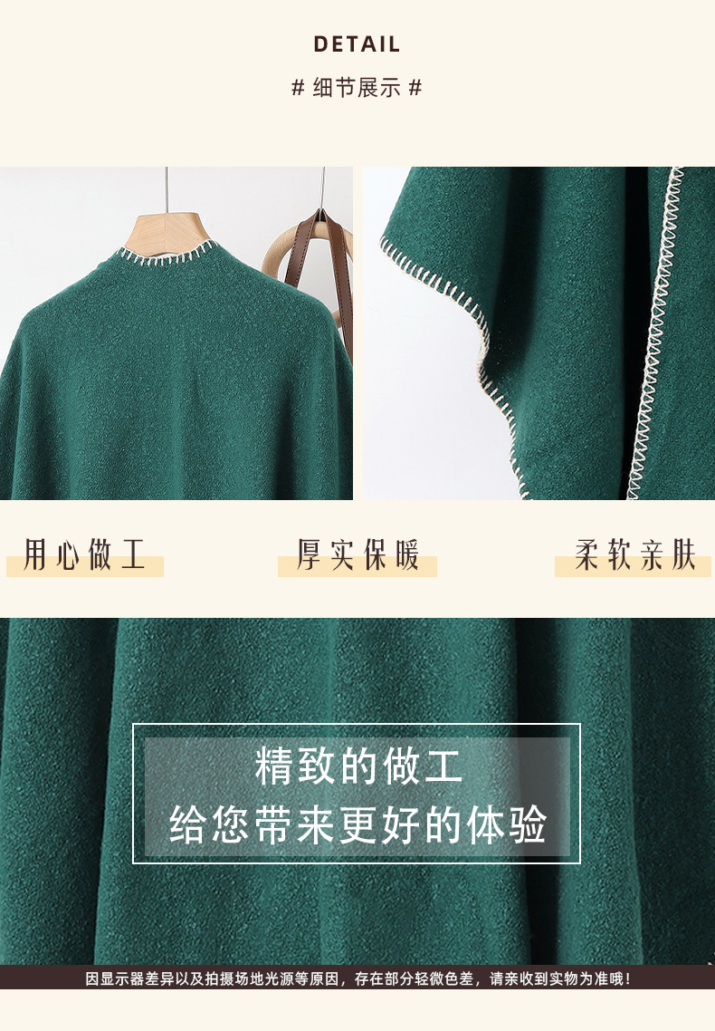 Capa para mujer de otoño/invierno, color sólido, bufanda cálida integrada, capa gruesa de viaje
