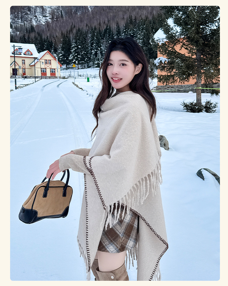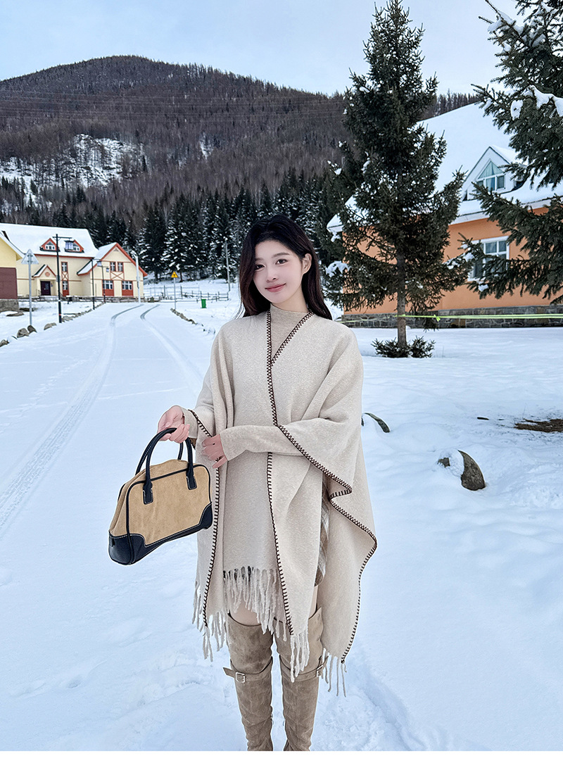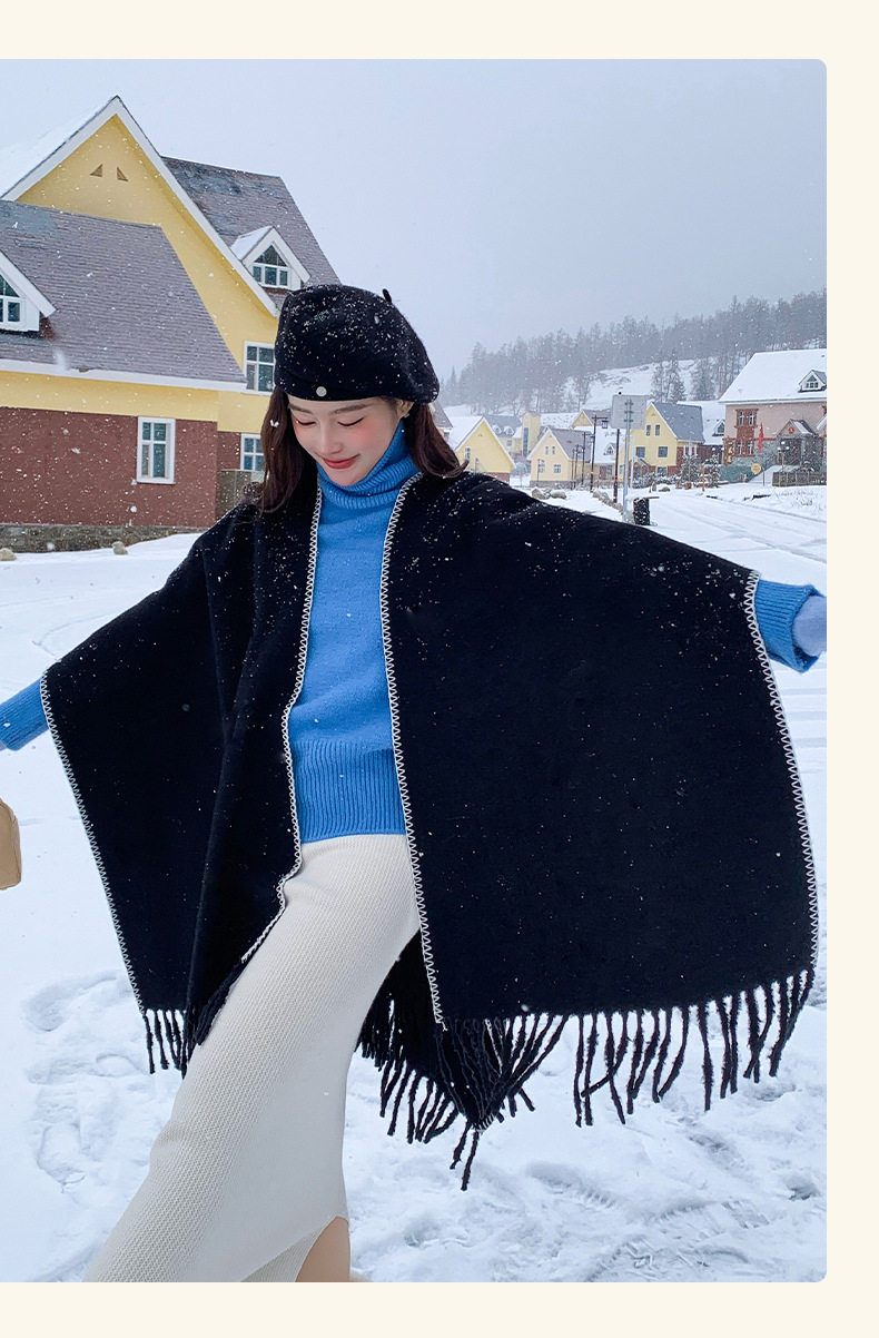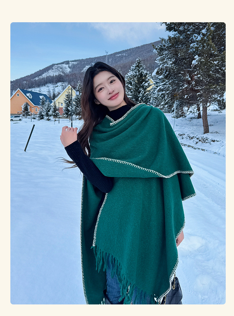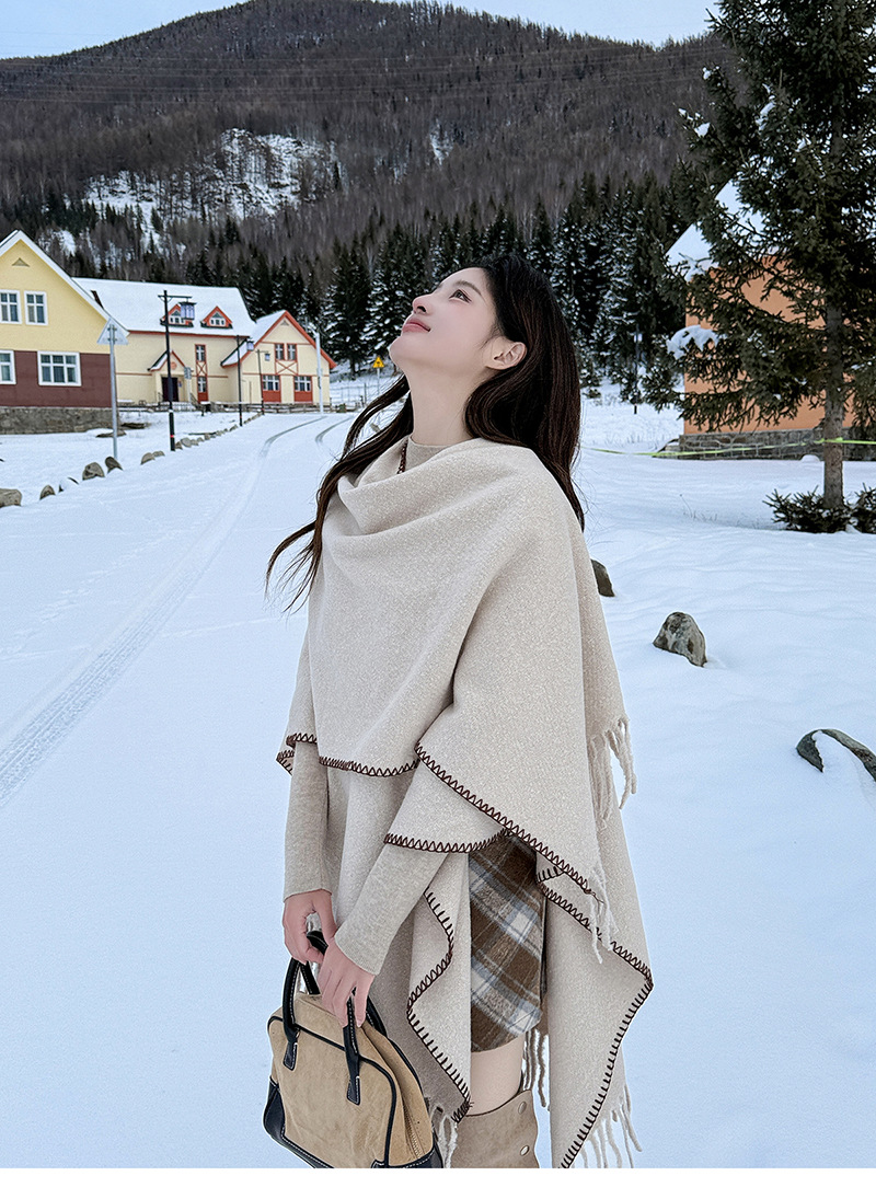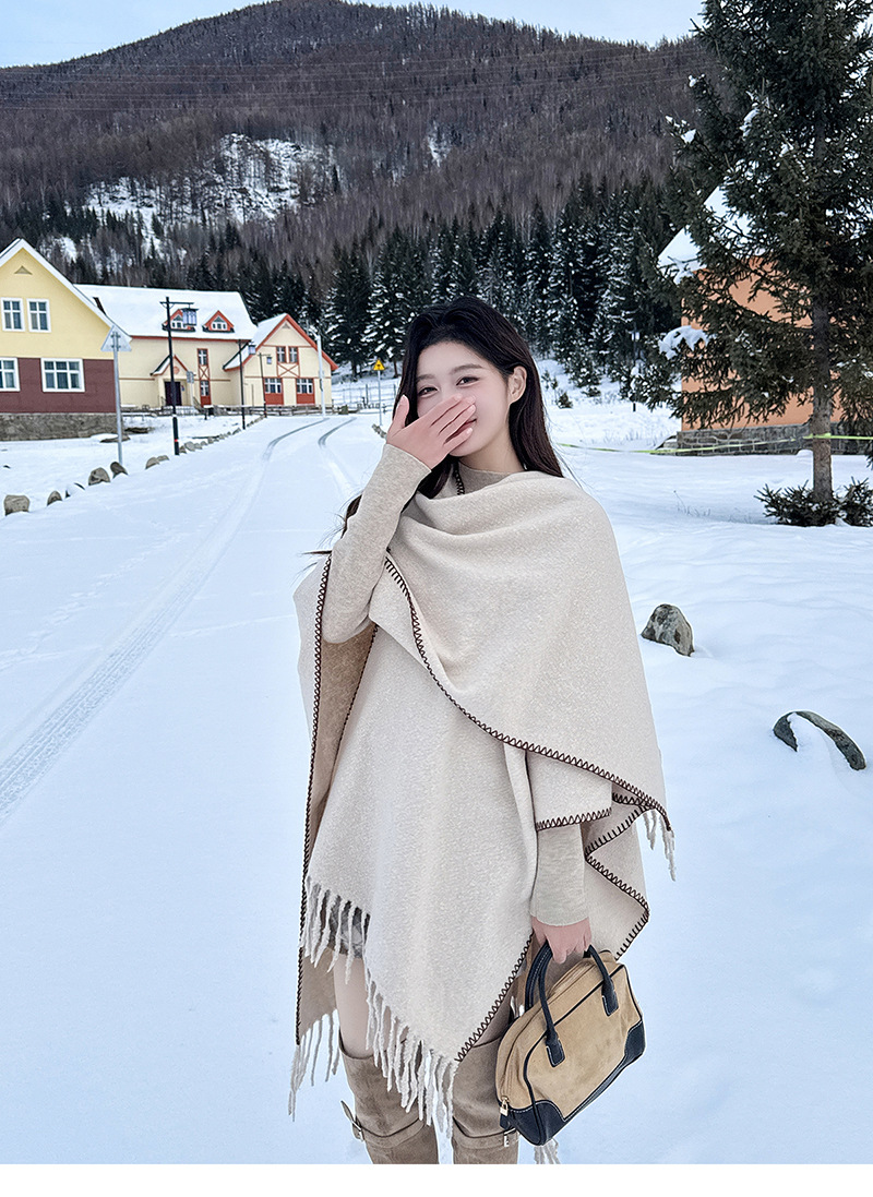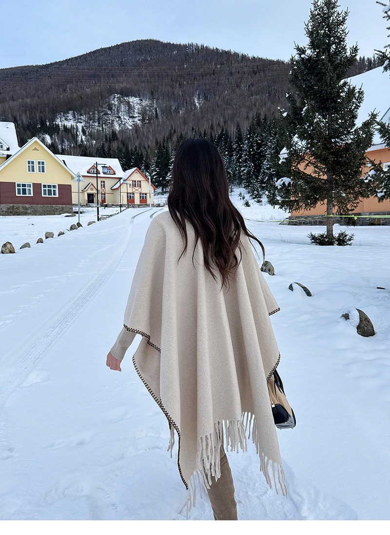 Capa para mujer de otoño/invierno, color sólido, bufanda cálida integrada, capa gruesa de viaje