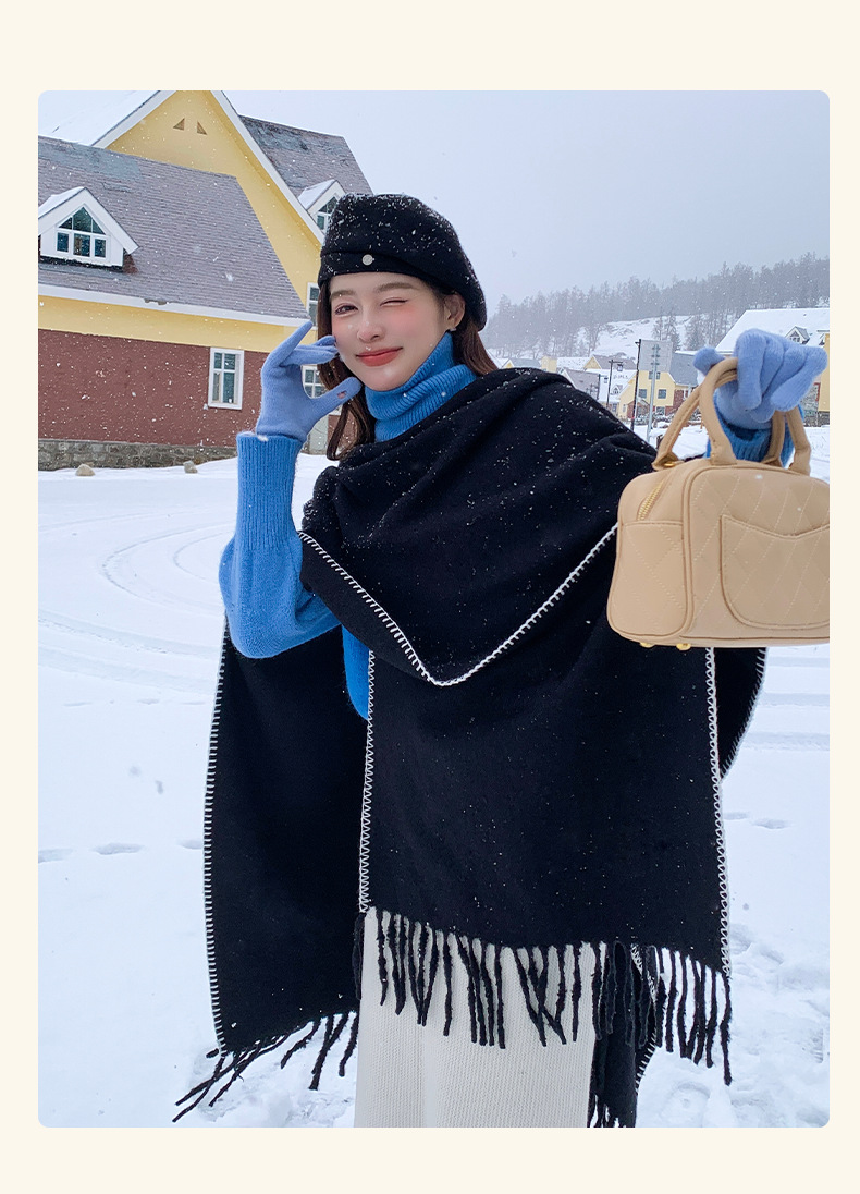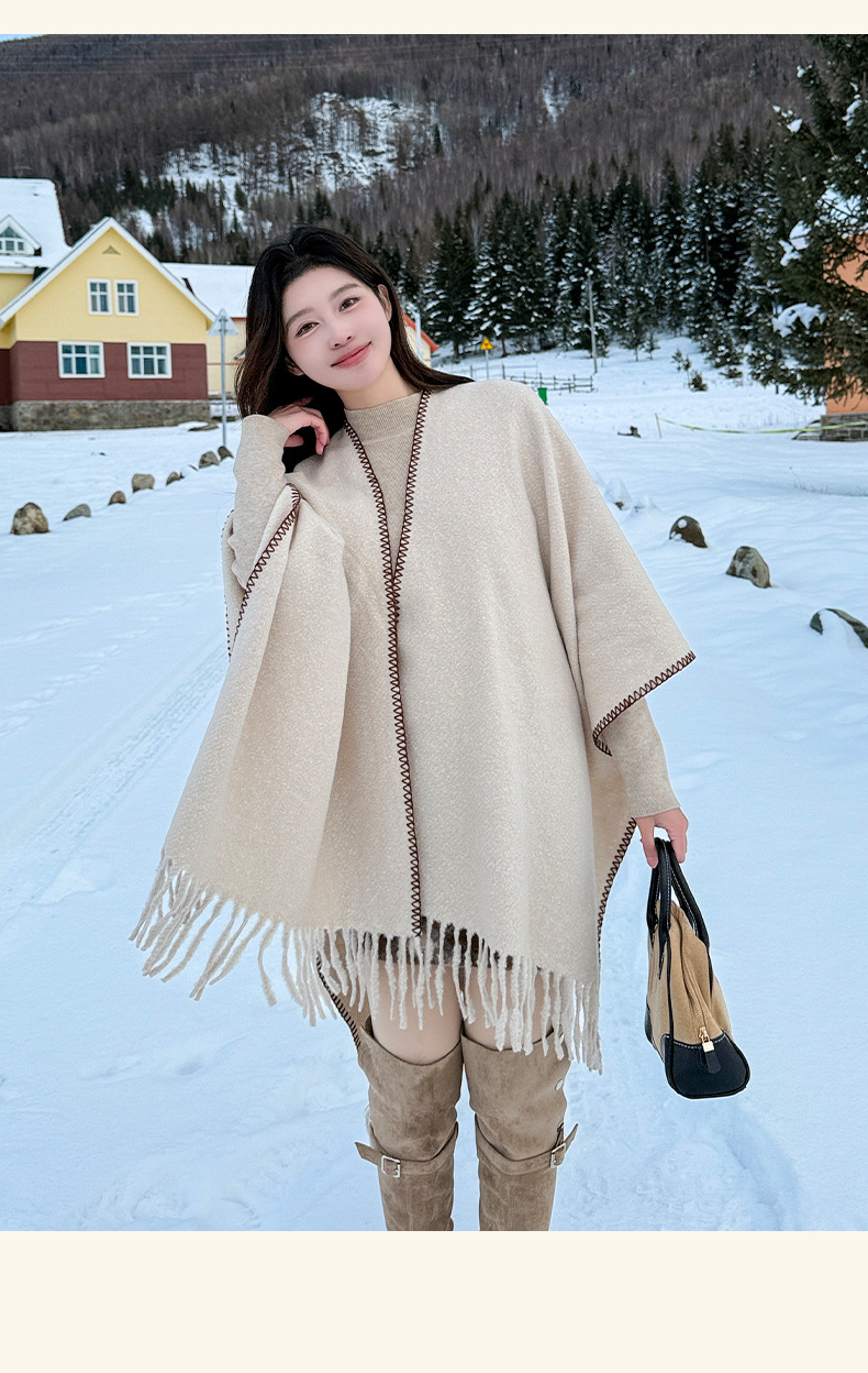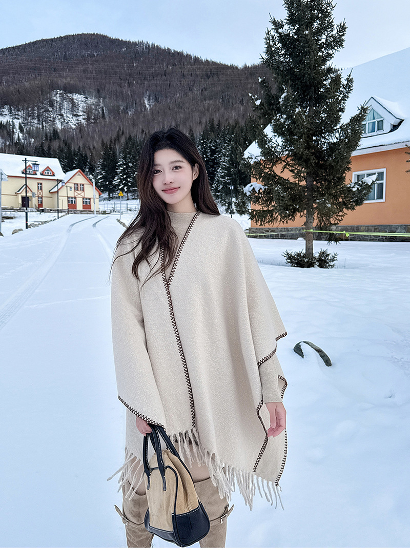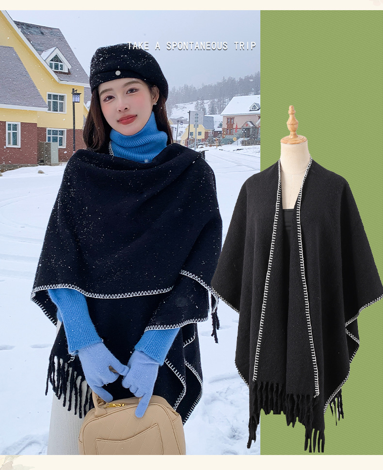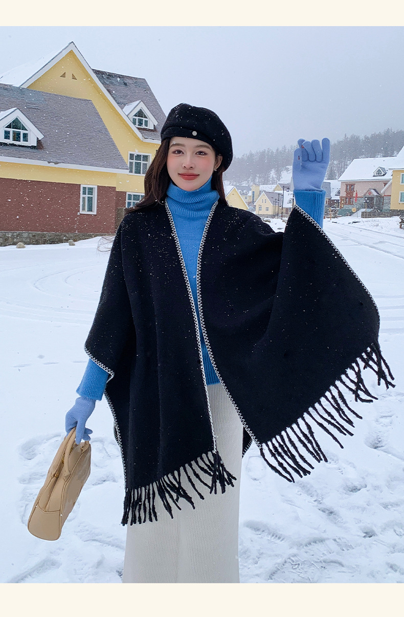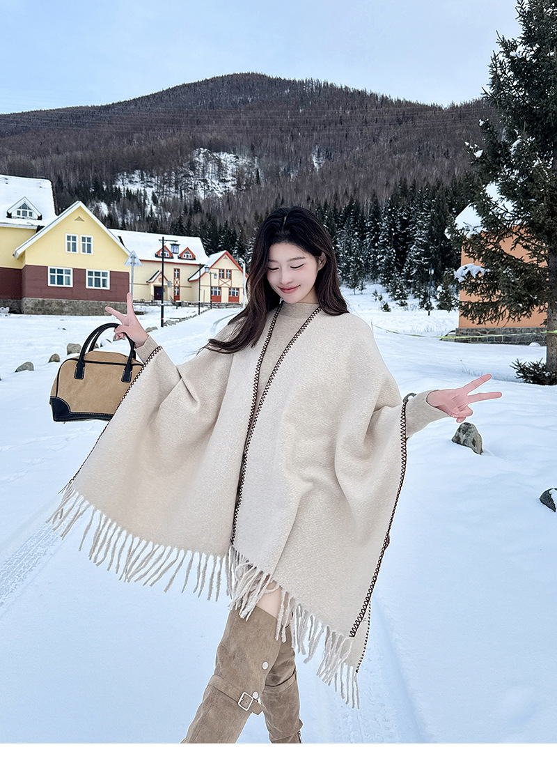 Capa para mujer de otoño/invierno, color sólido, bufanda cálida integrada, capa gruesa de viaje